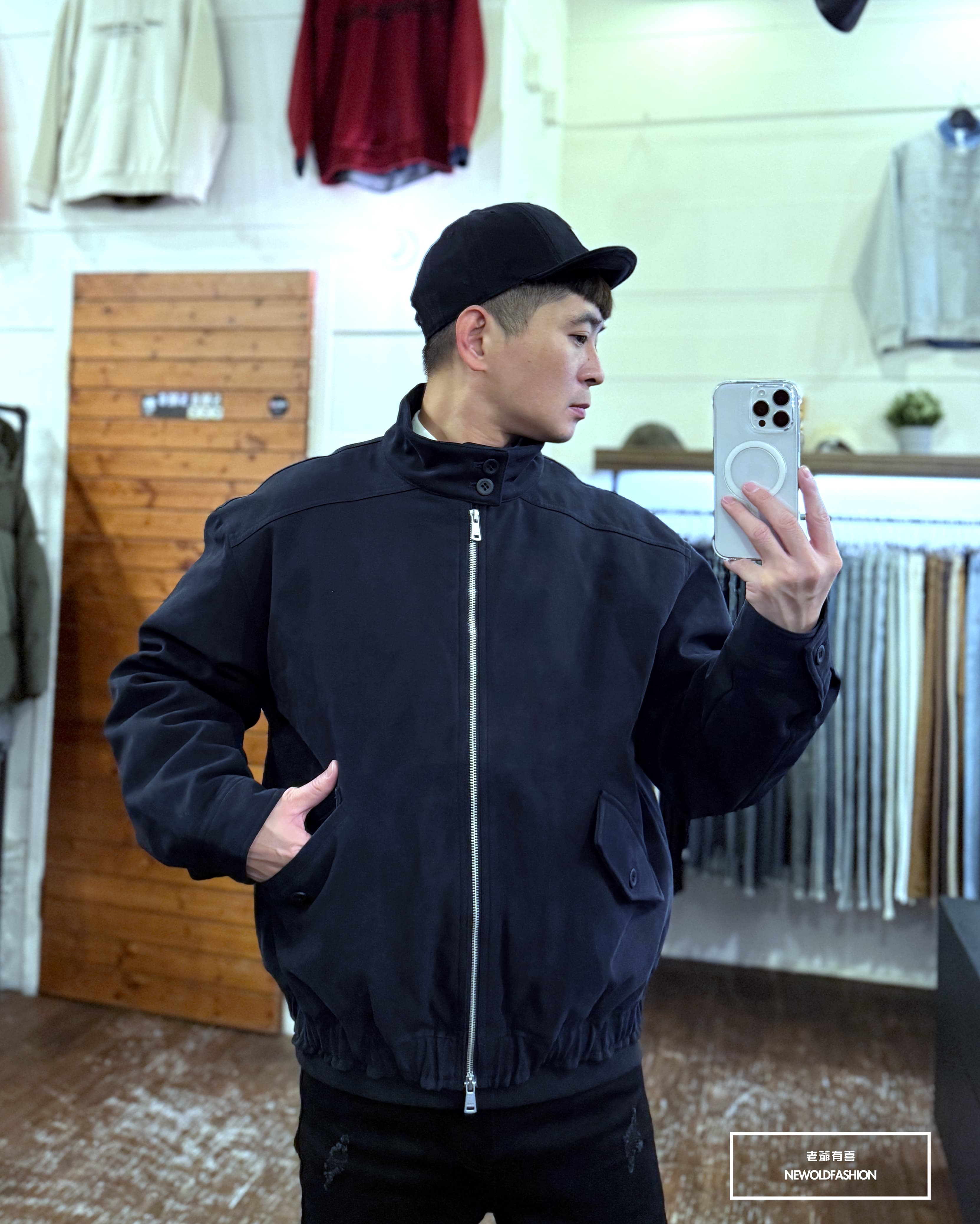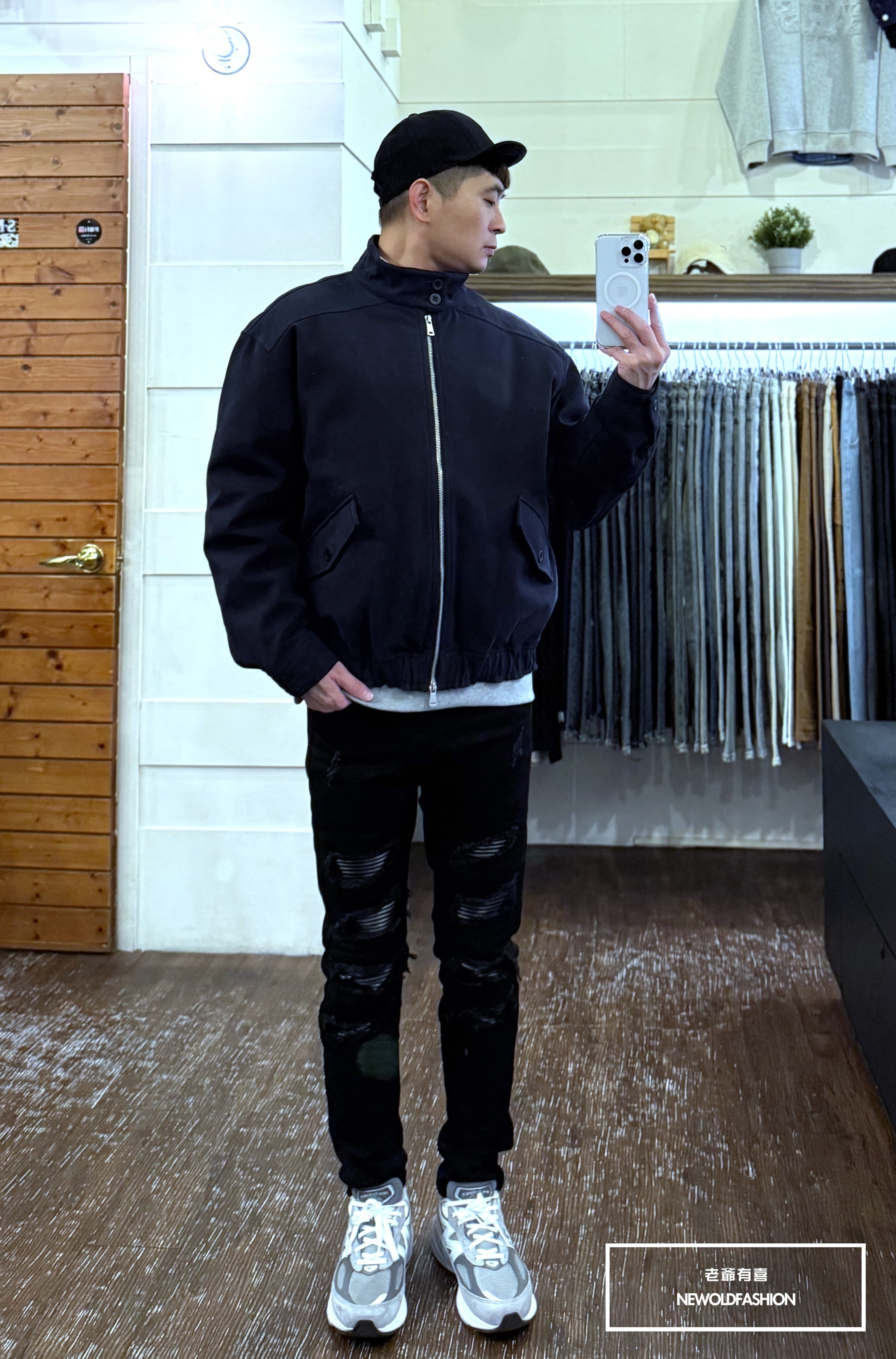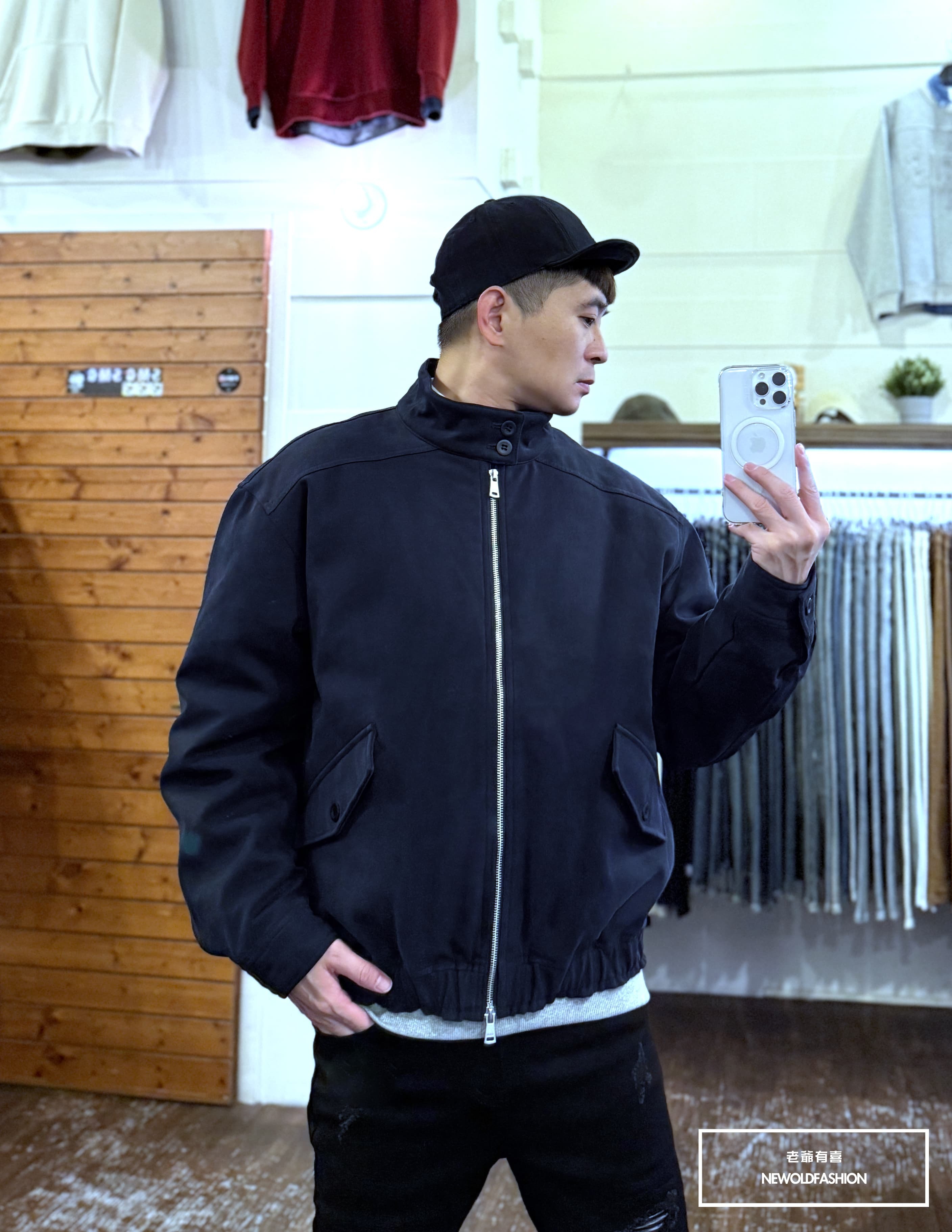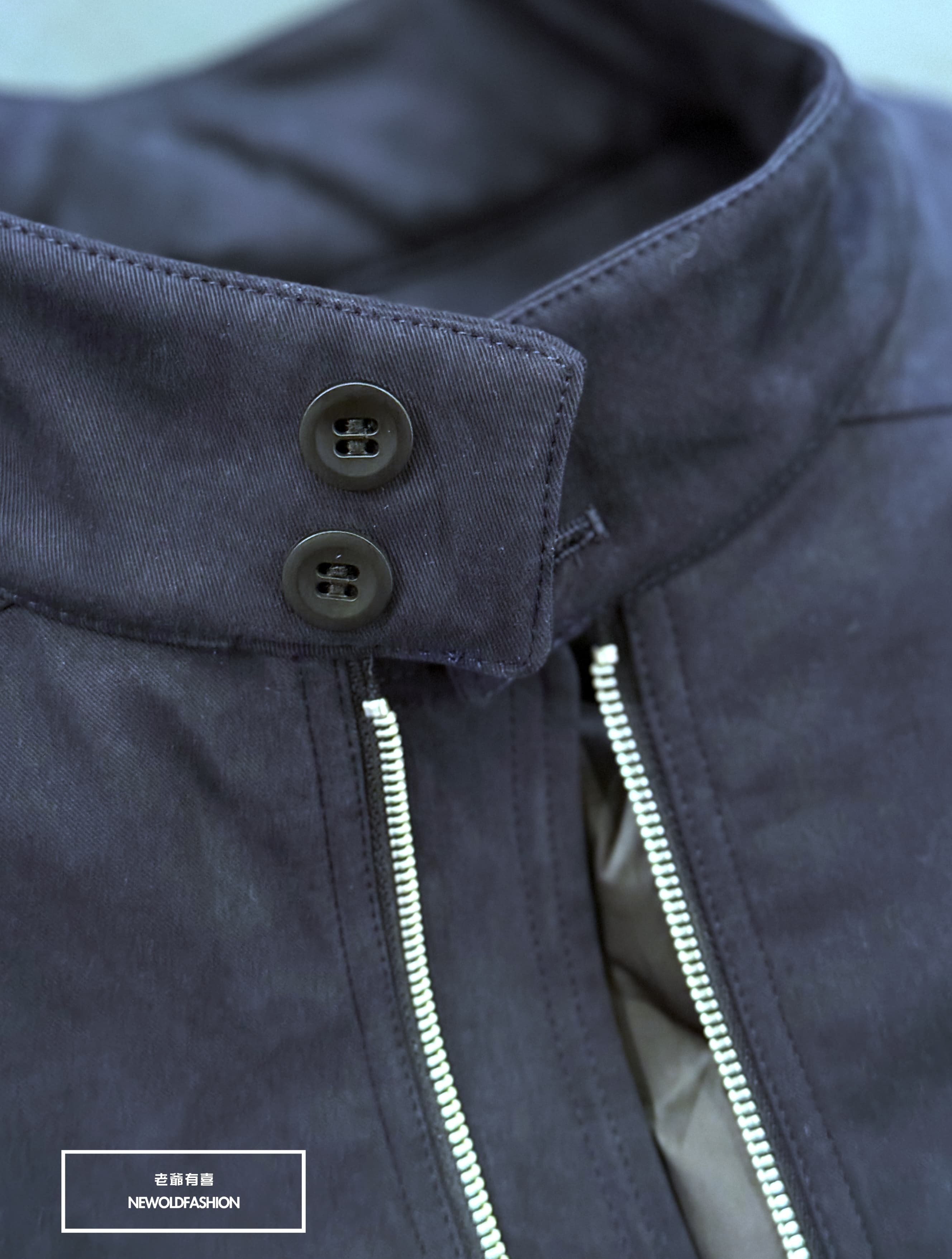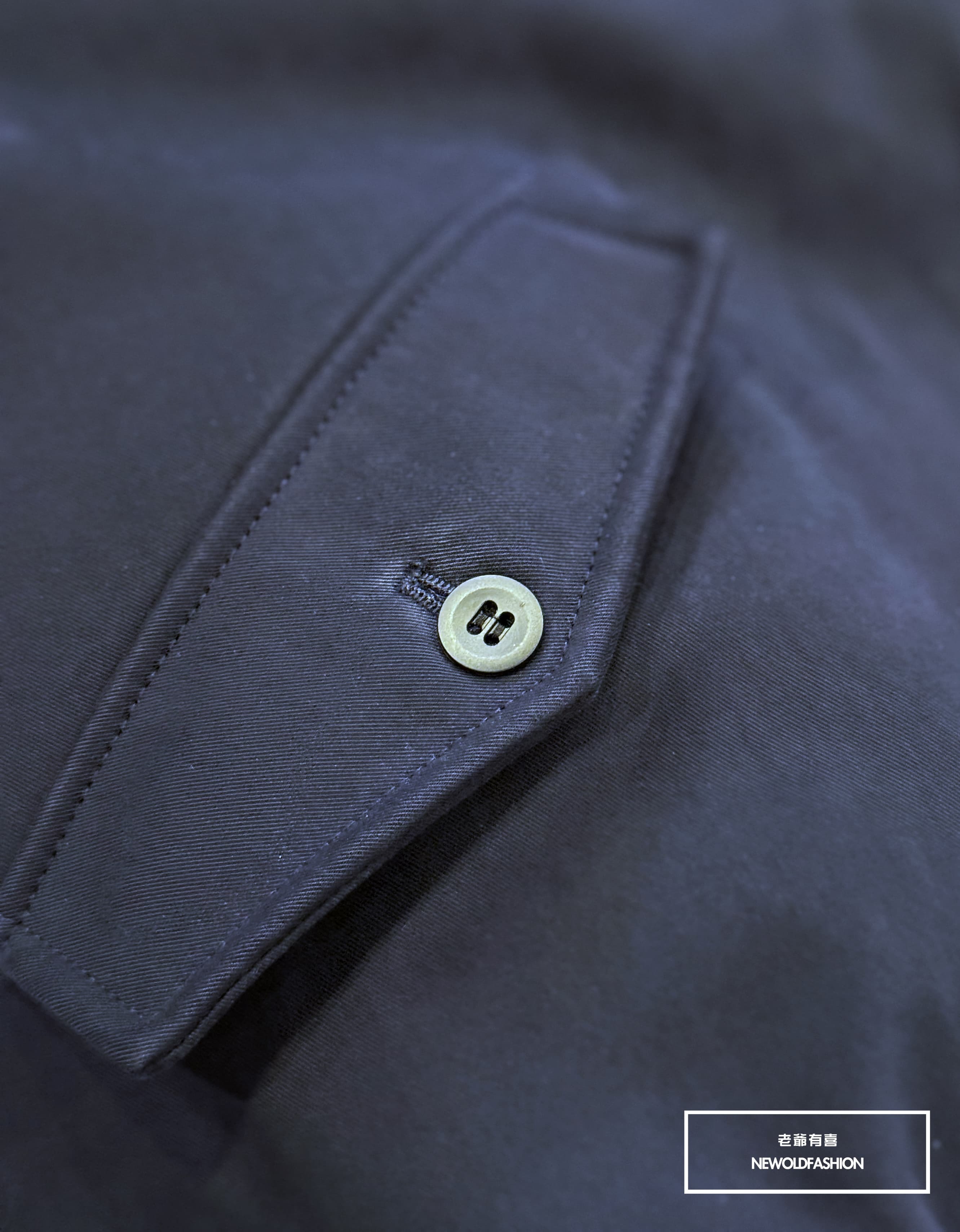 立領雙釦口袋、手袖打摺鈕扣造型設計