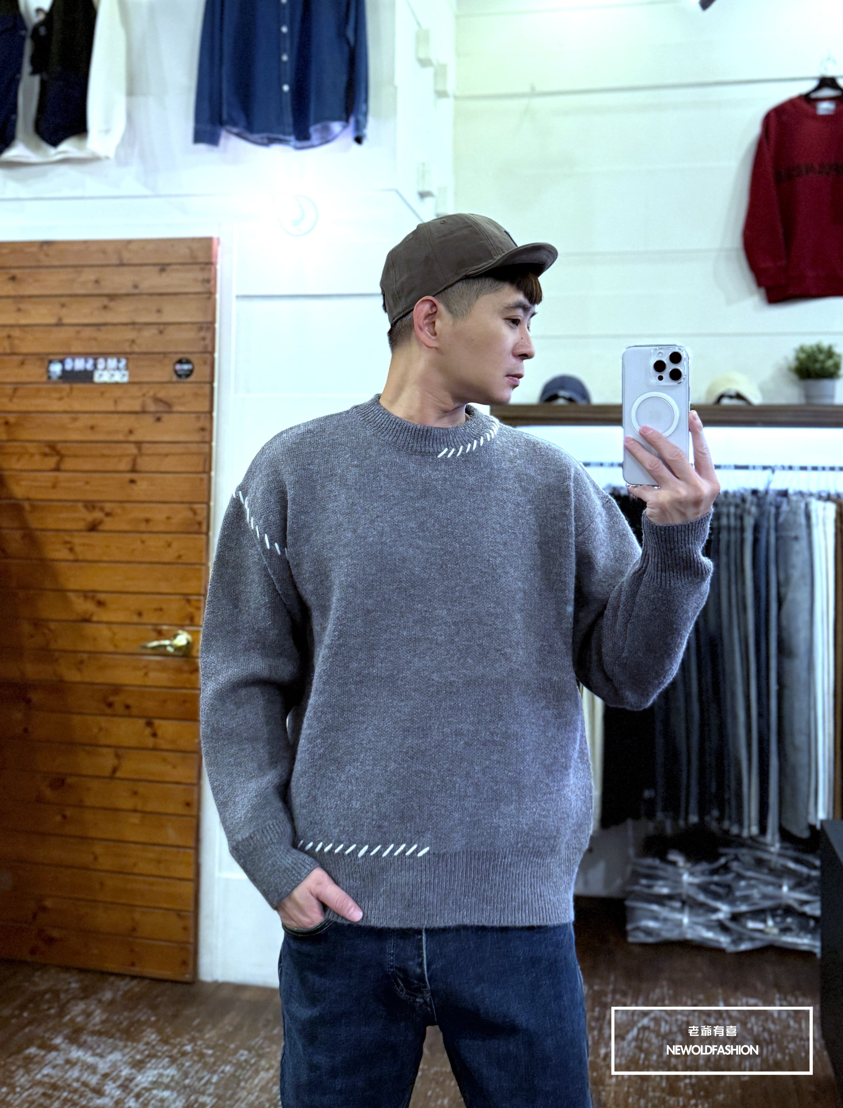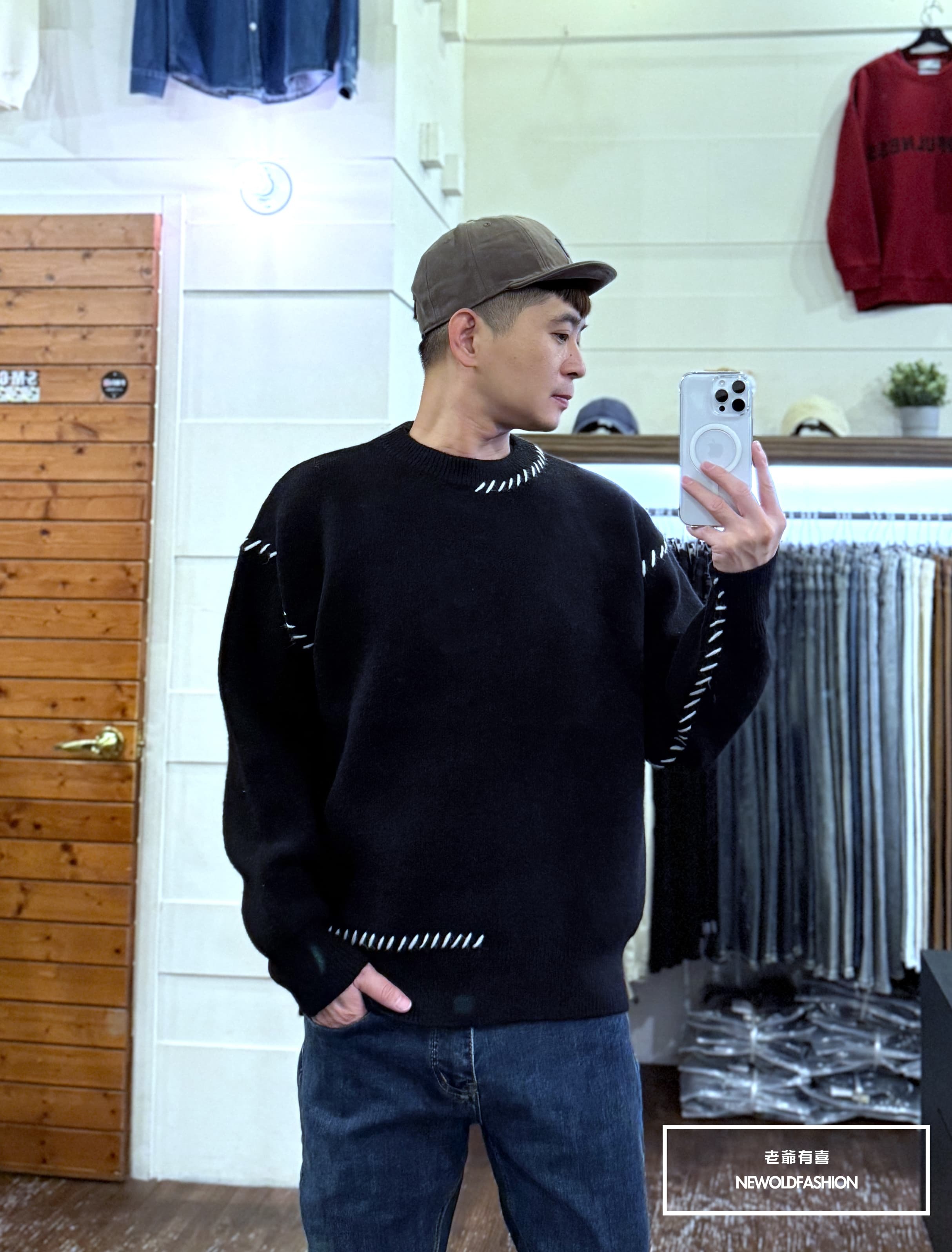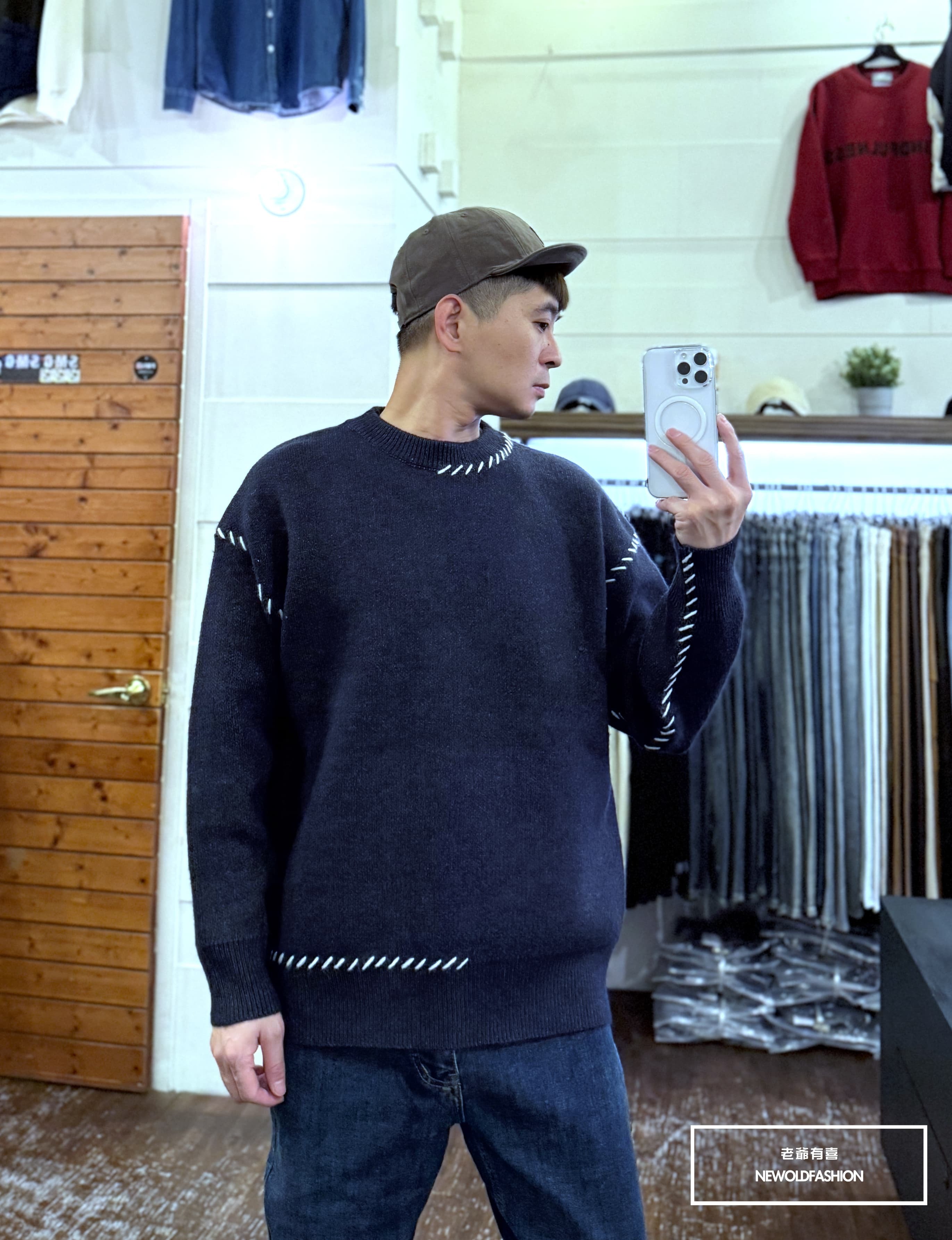 『新款上市』重磅不規則縫線針織毛衣(NOF25109800)-深藍