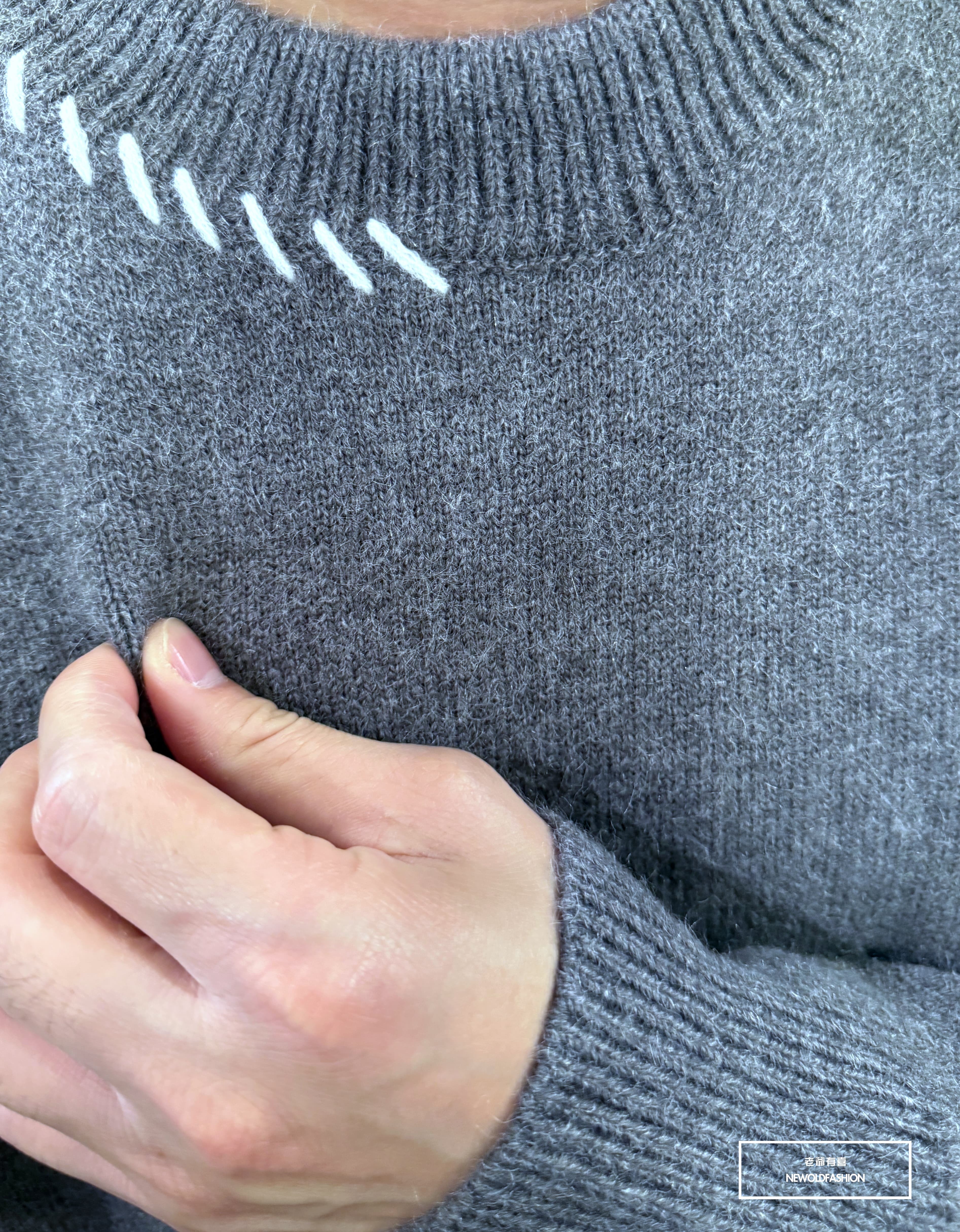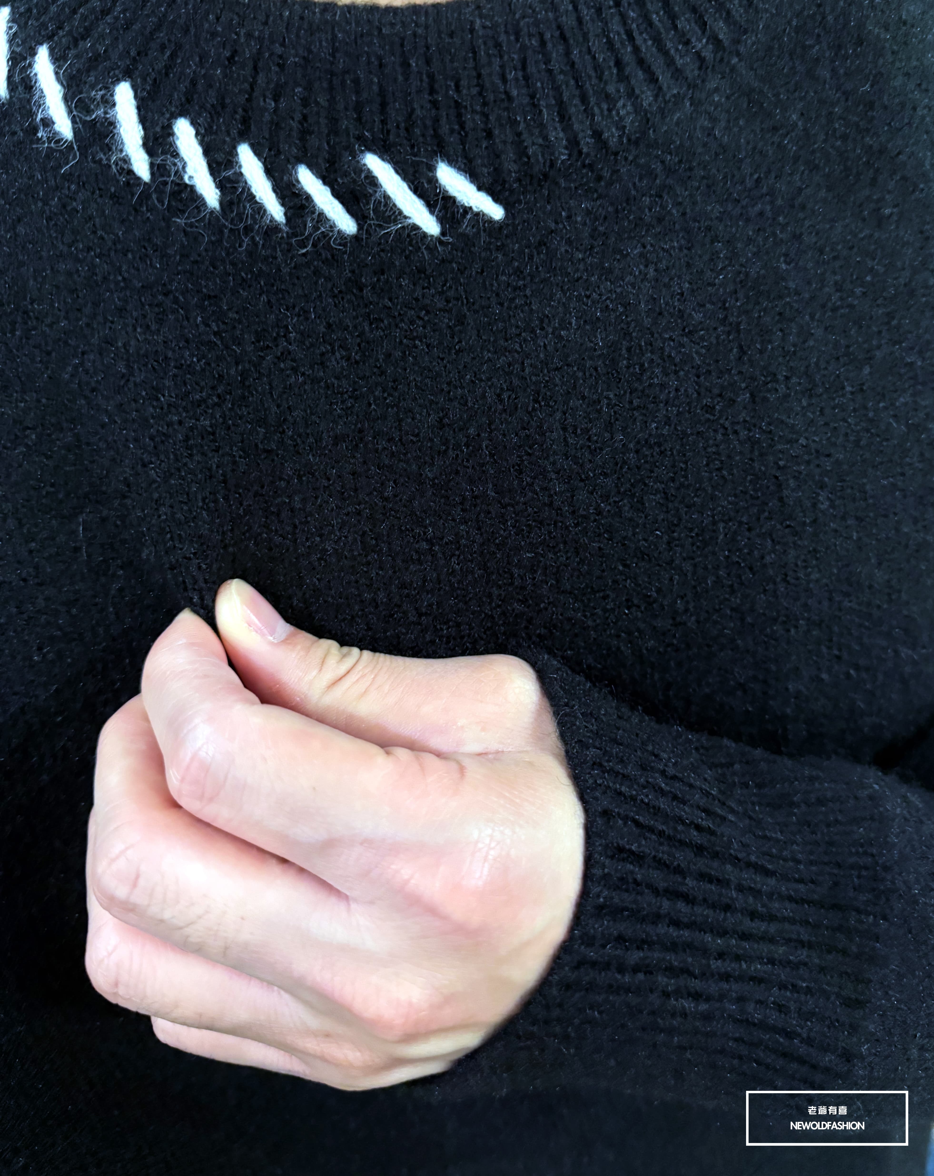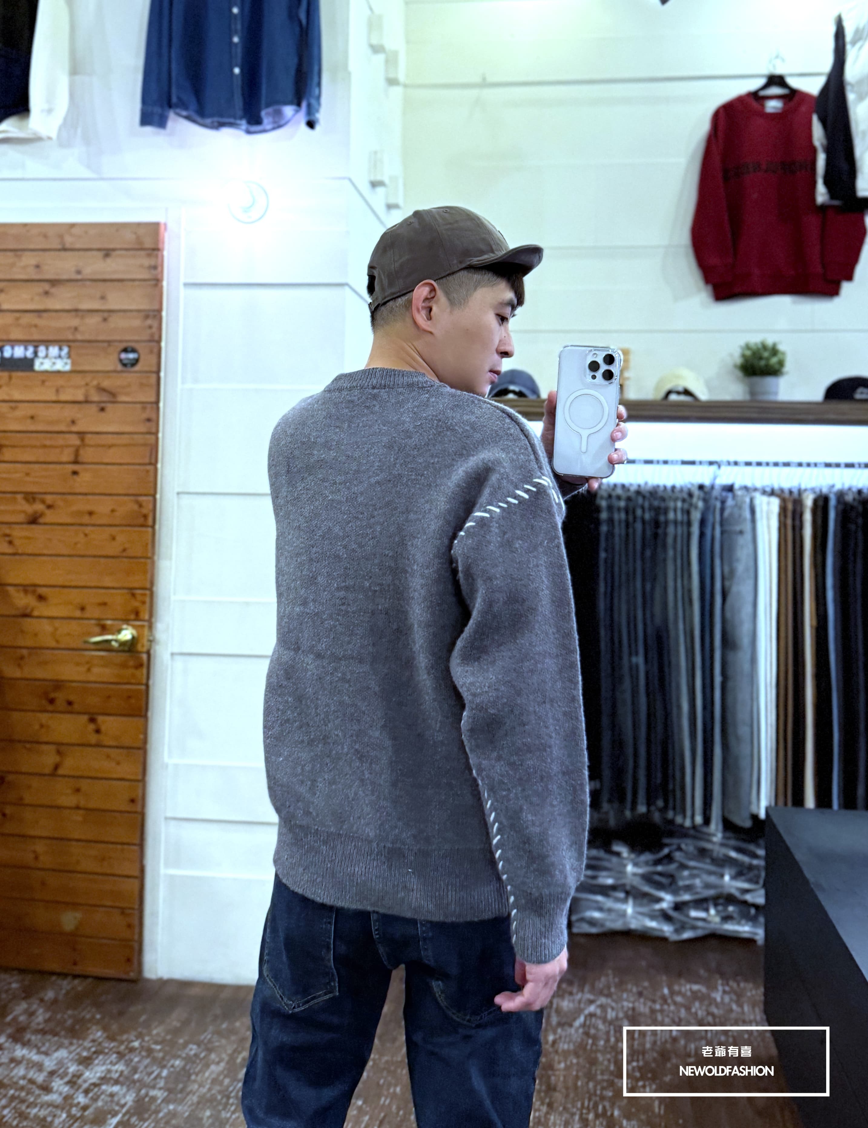 『新款上市』重磅不規則縫線針織毛衣(NOF25109800)-深藍