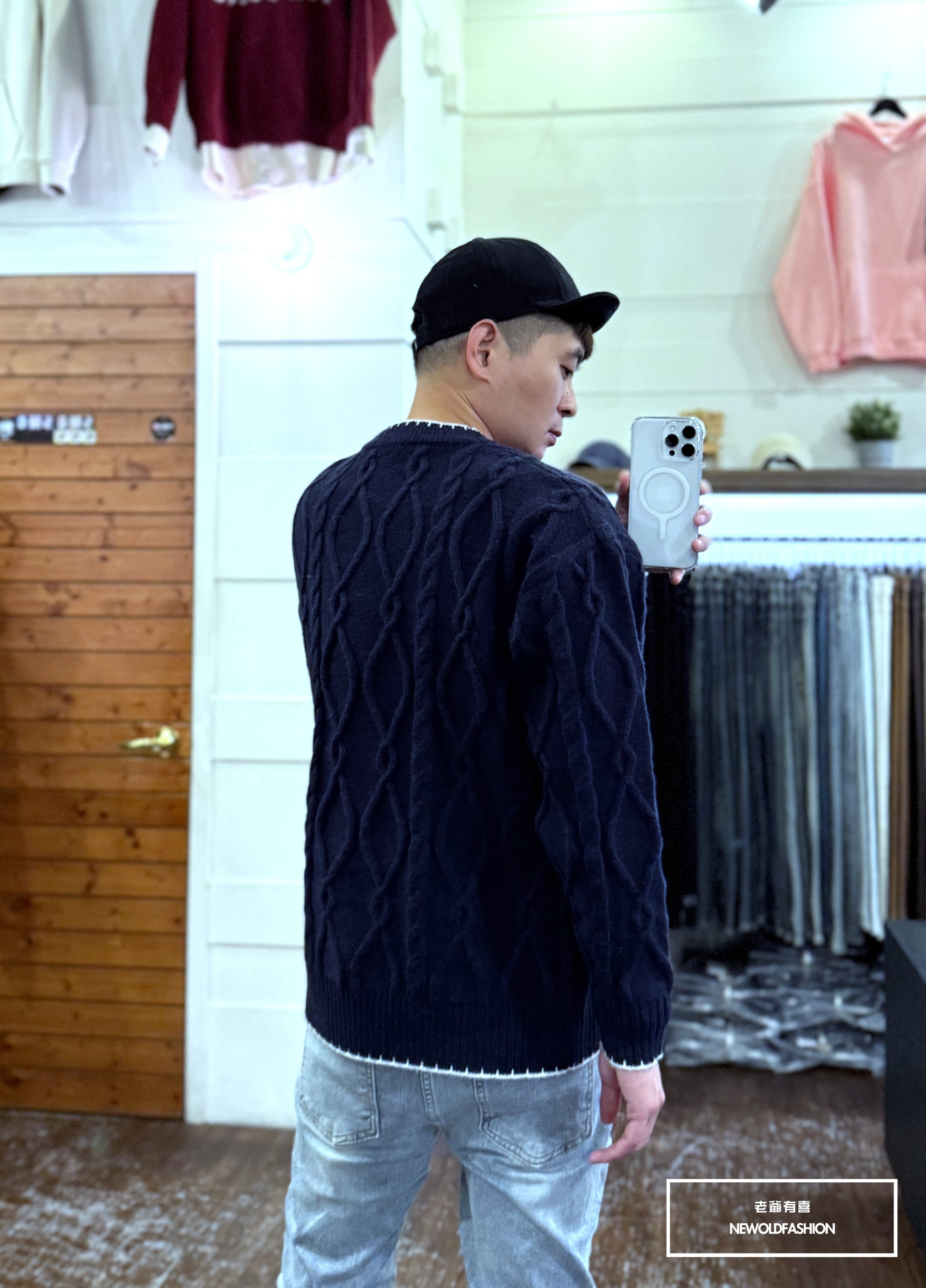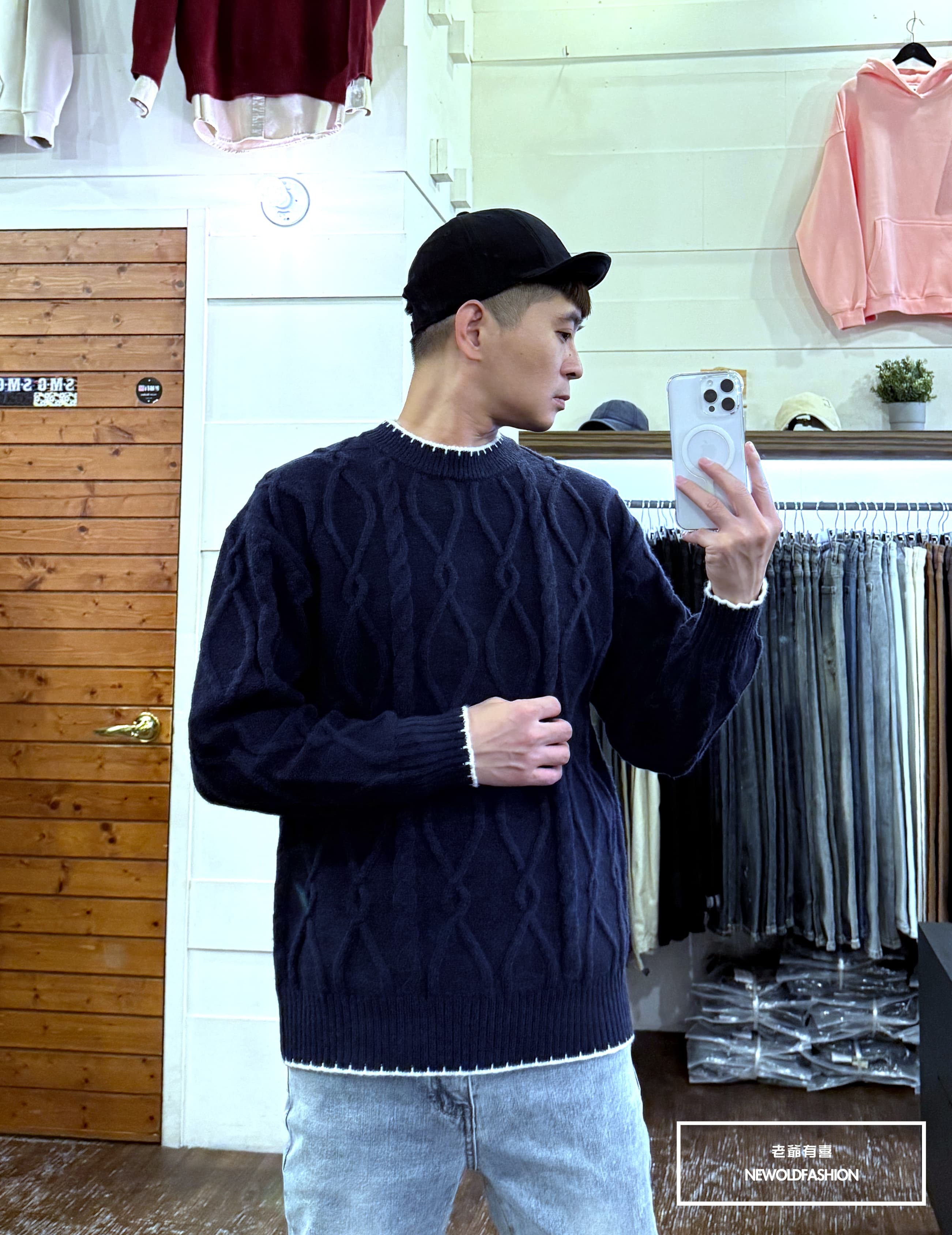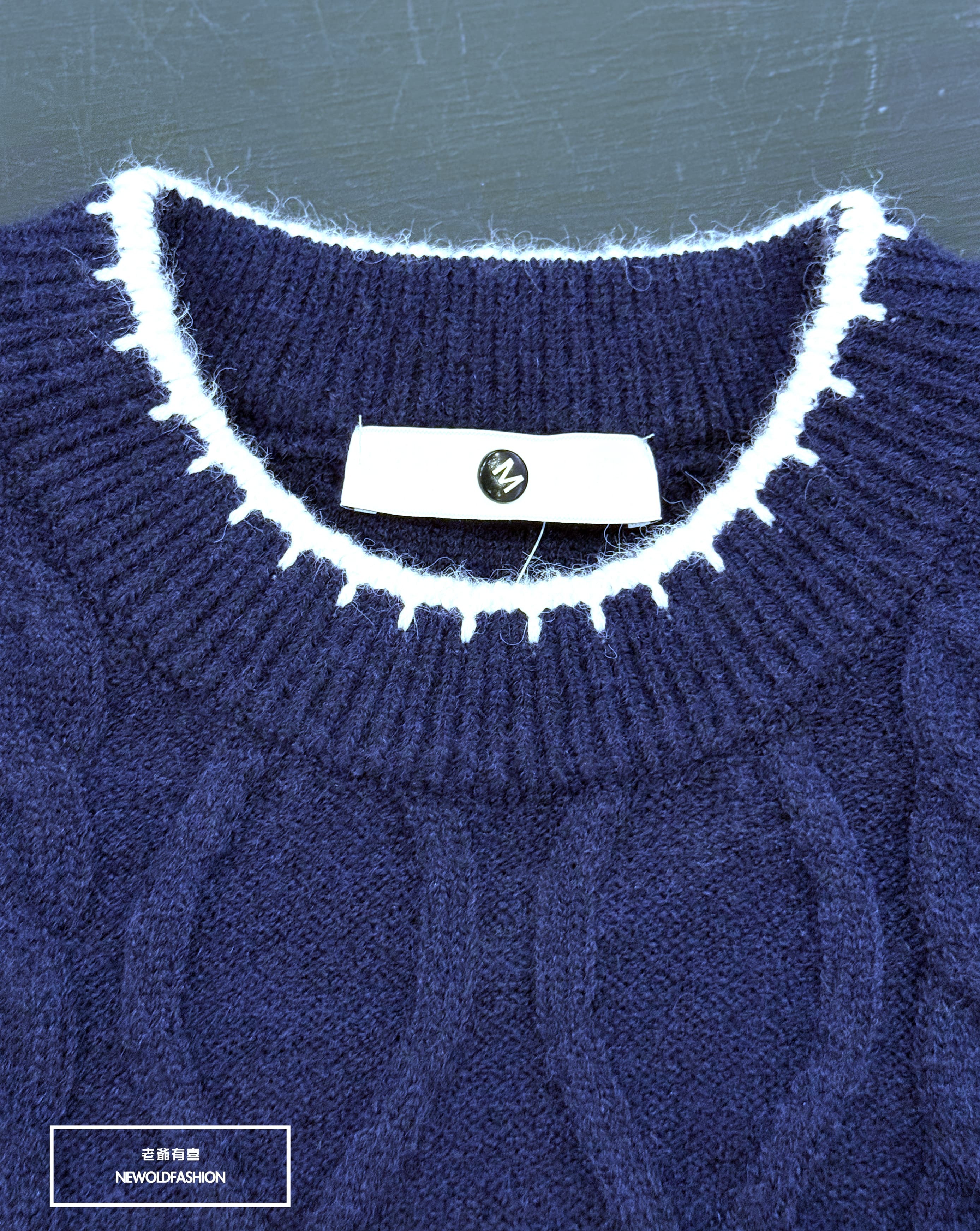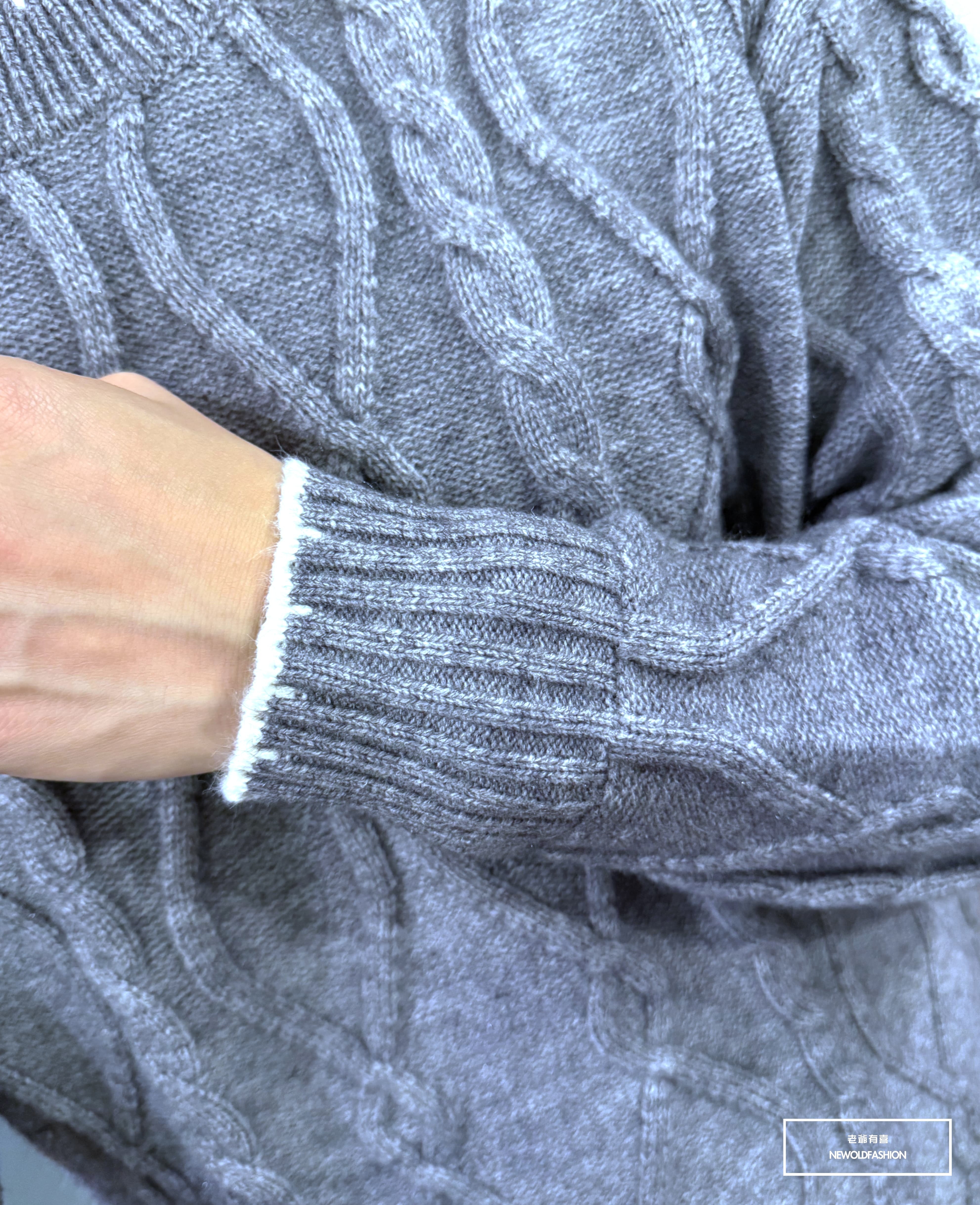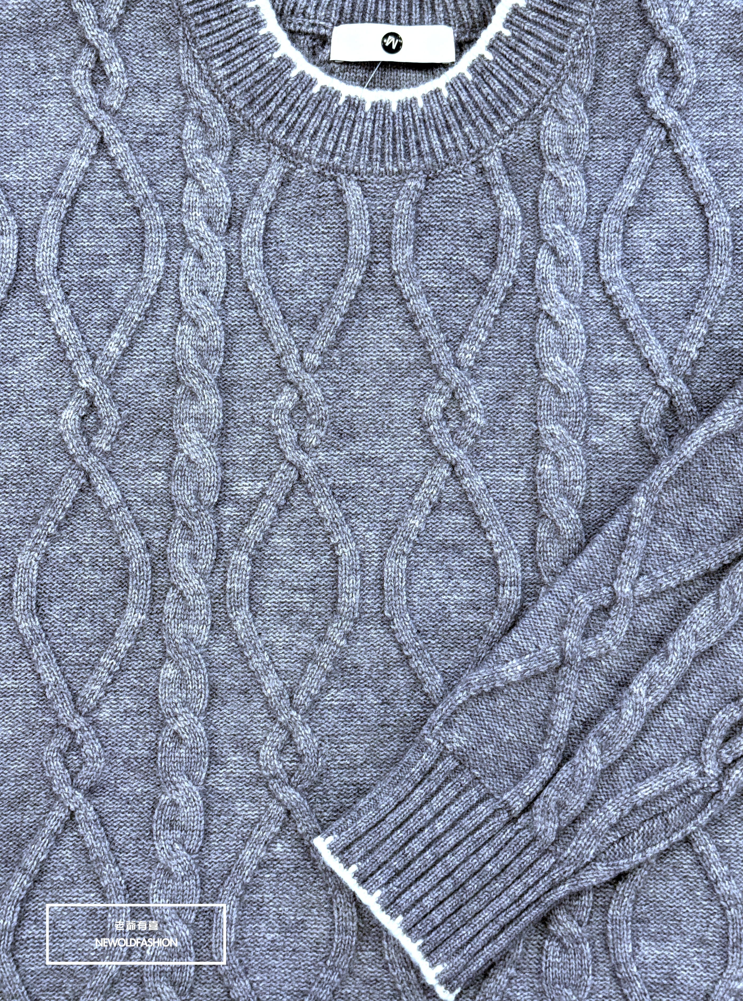 『新款上市』重磅撞色滾邊麻花針織毛衣(NOF25109807)-淺灰