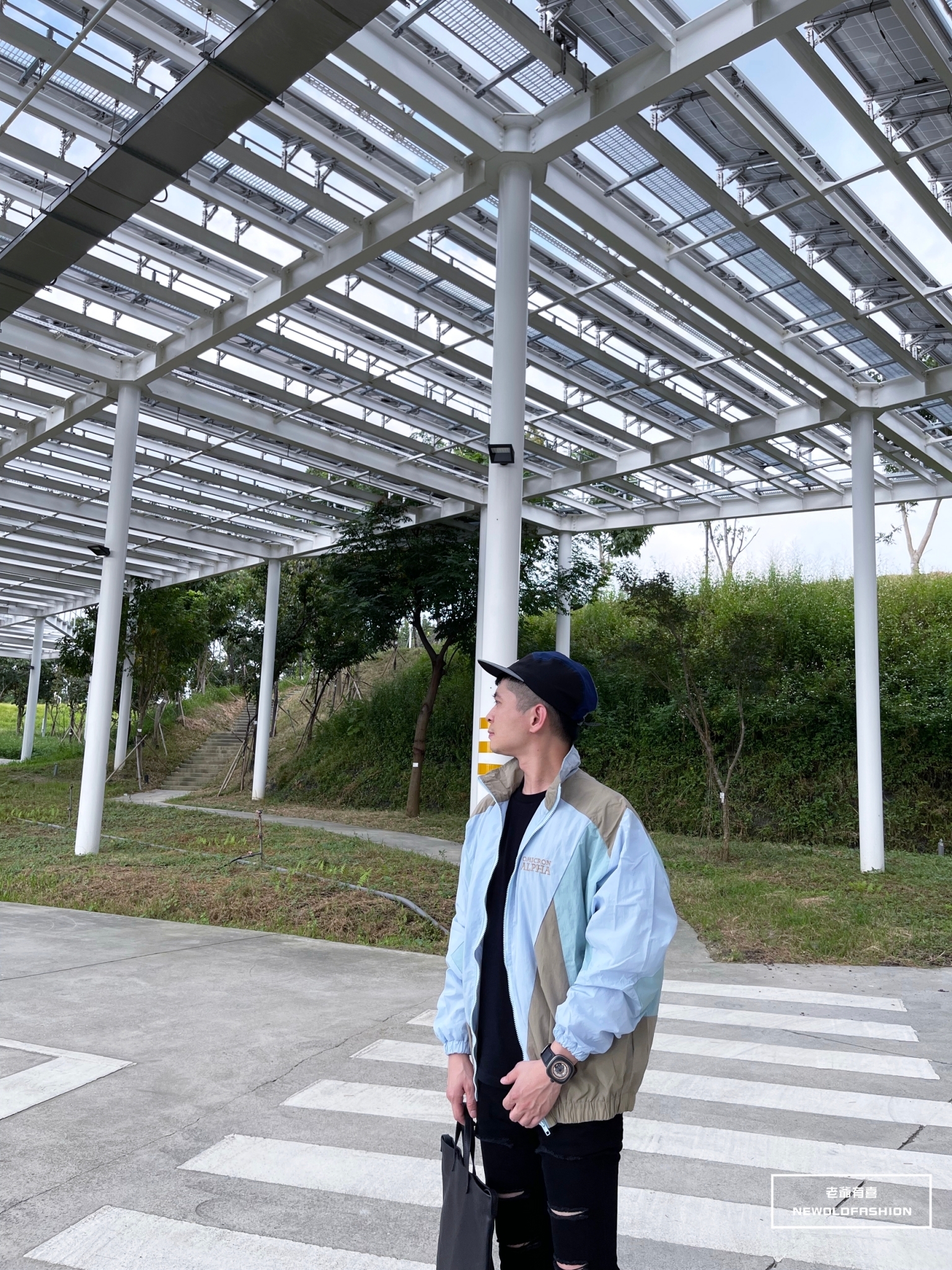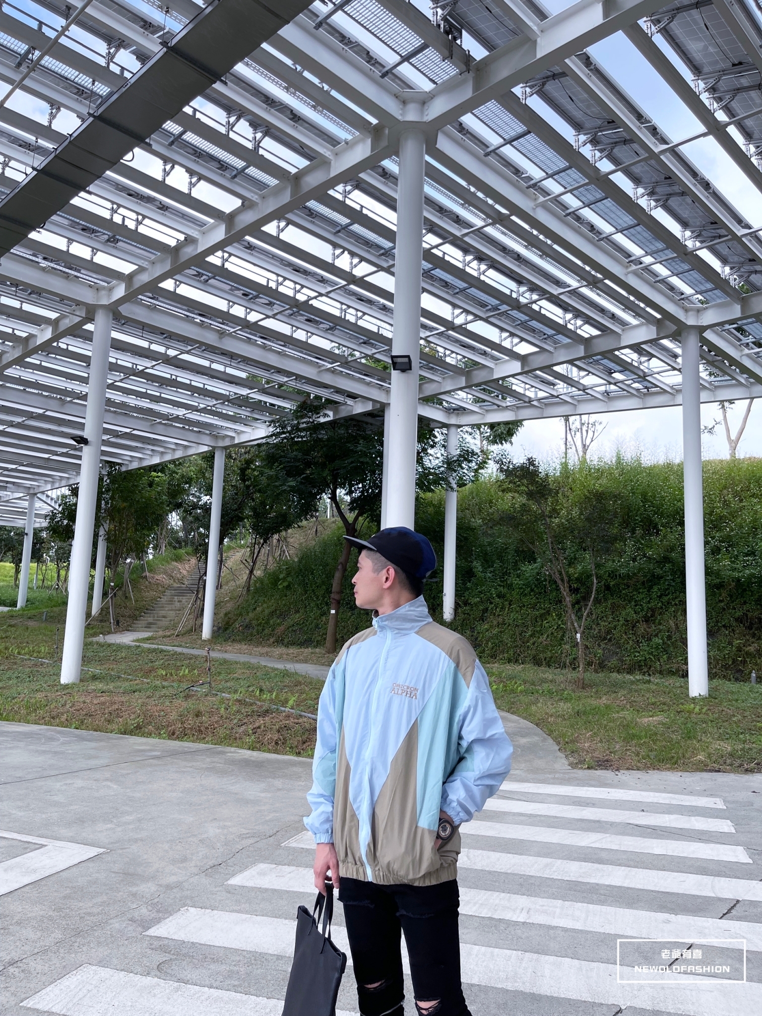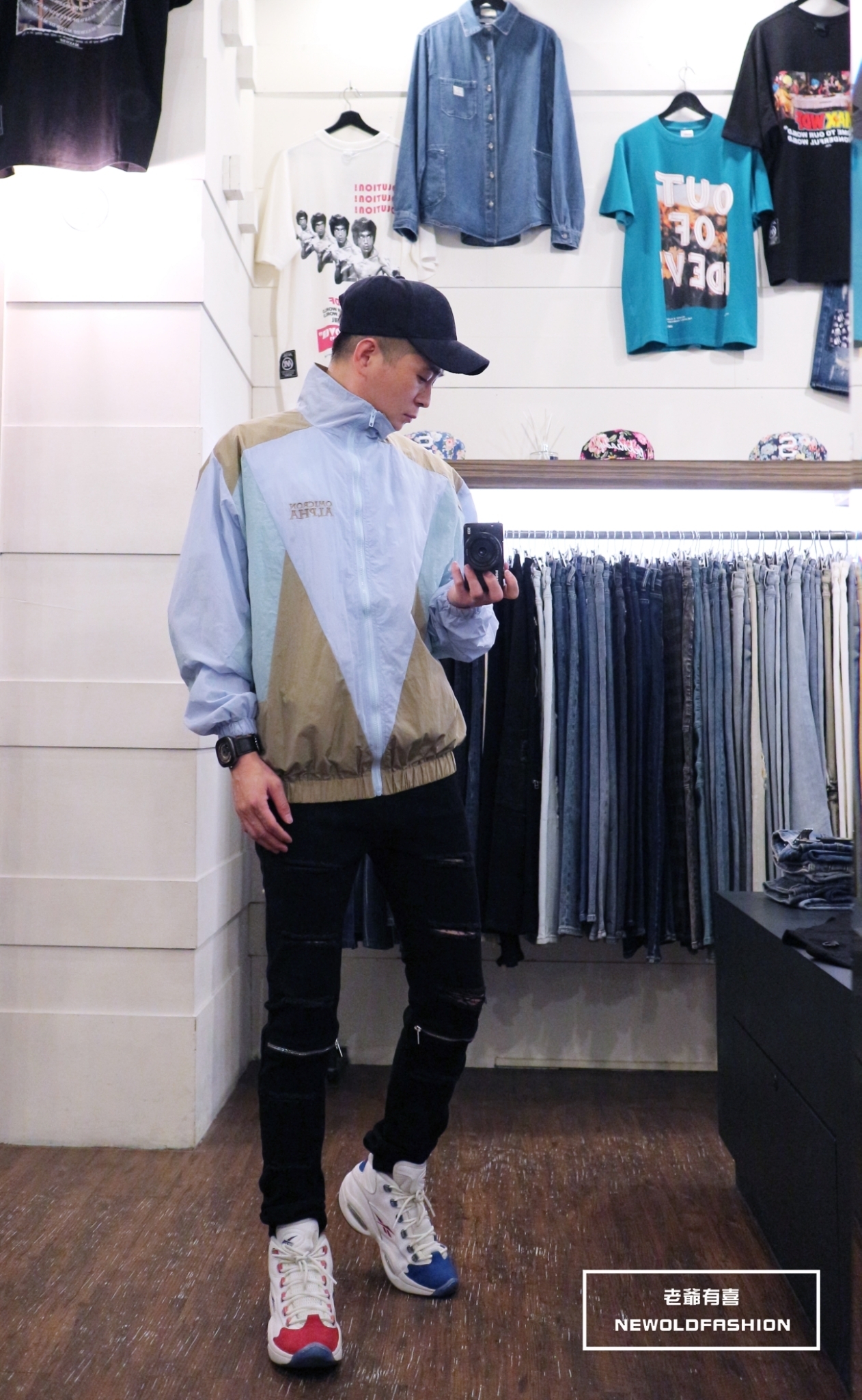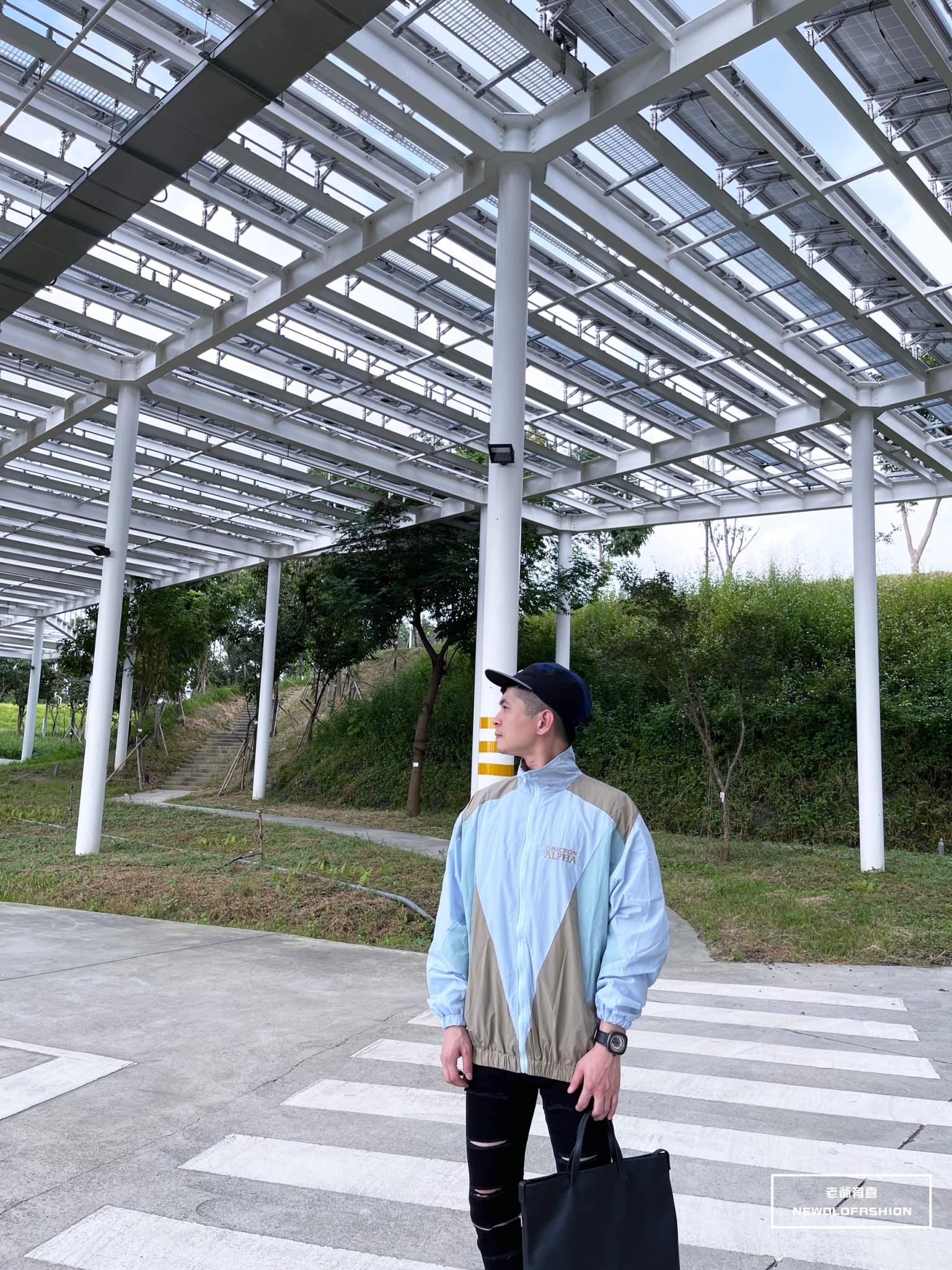 胸口英字刺繡、多色拼接造型!