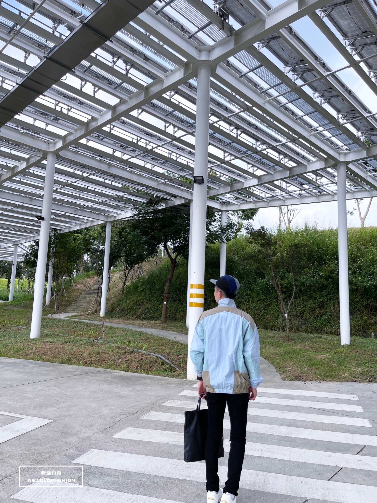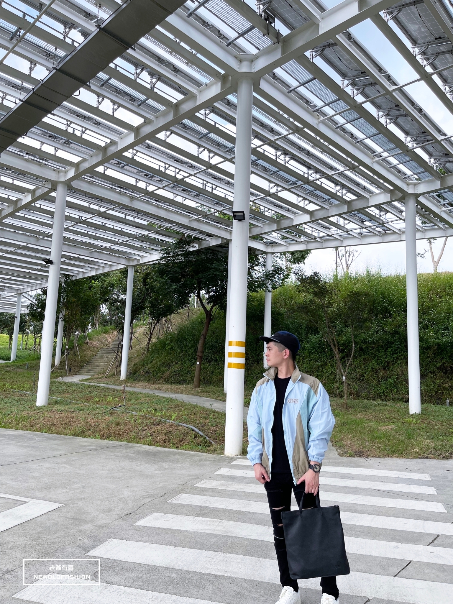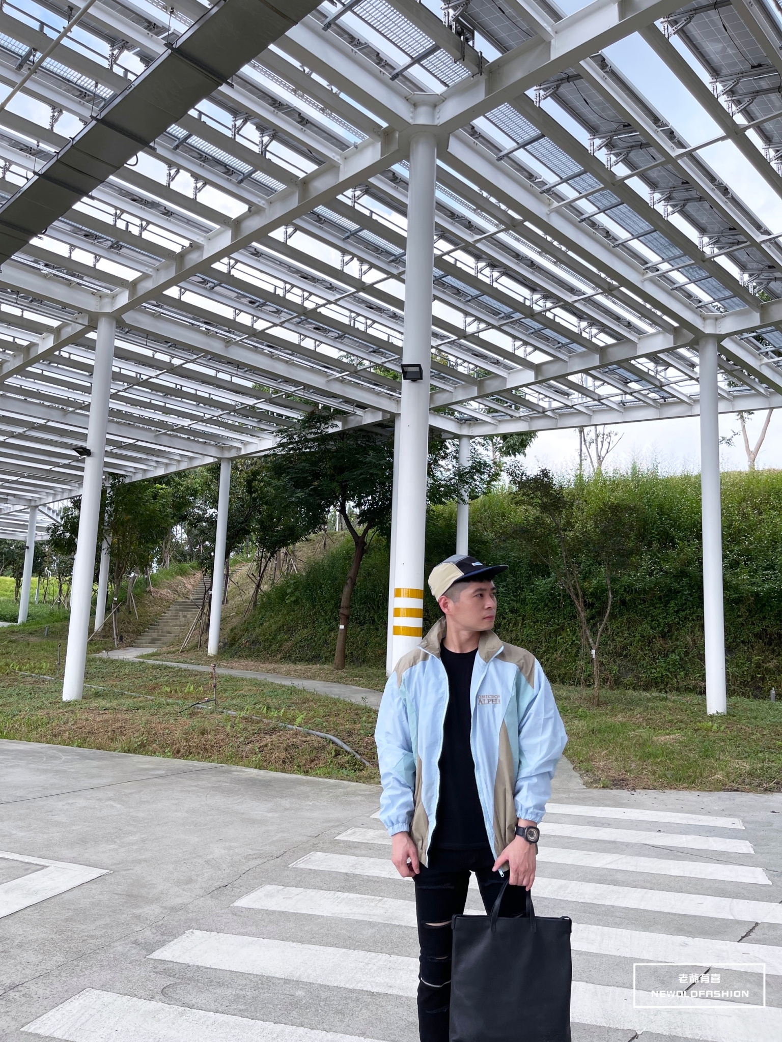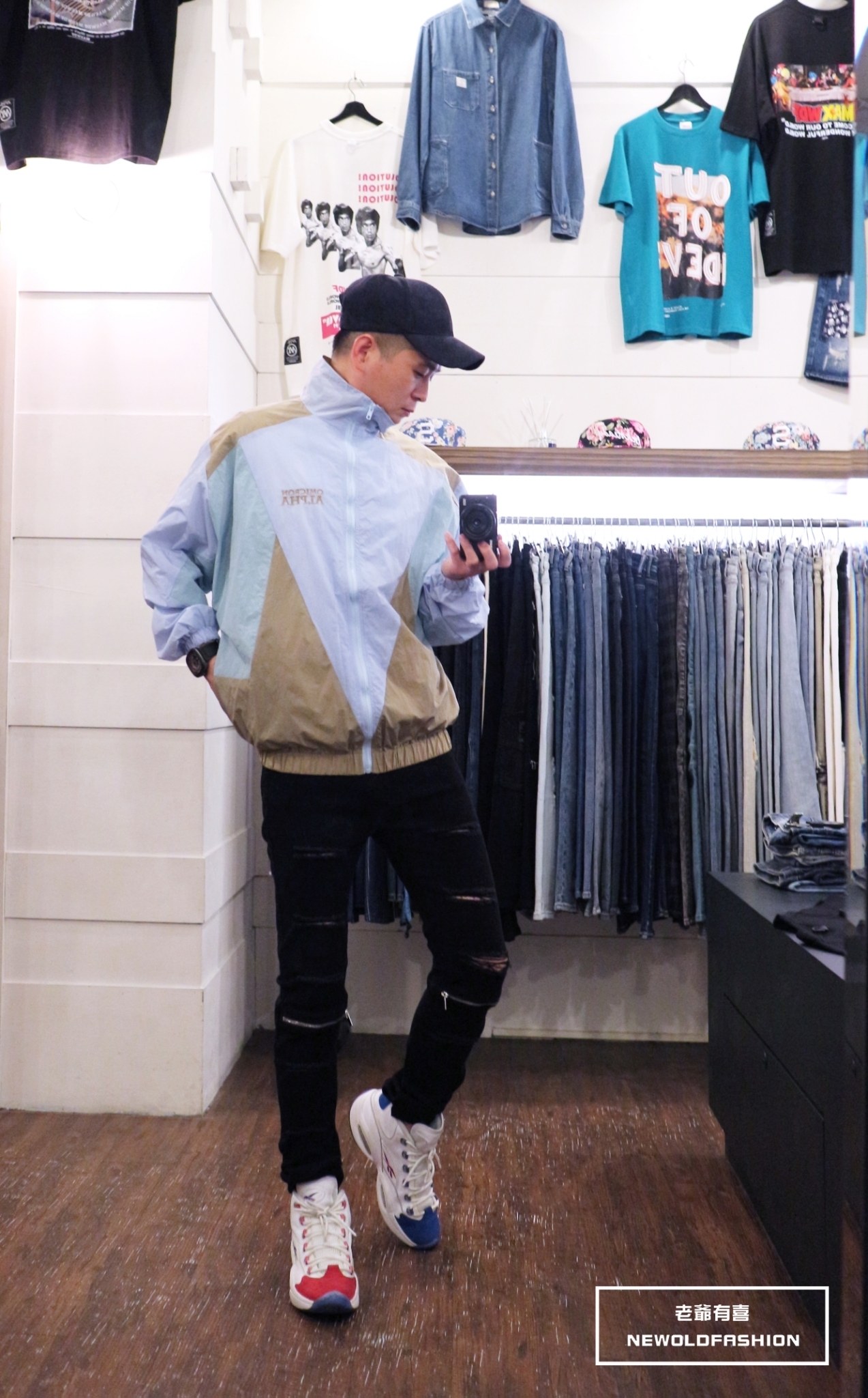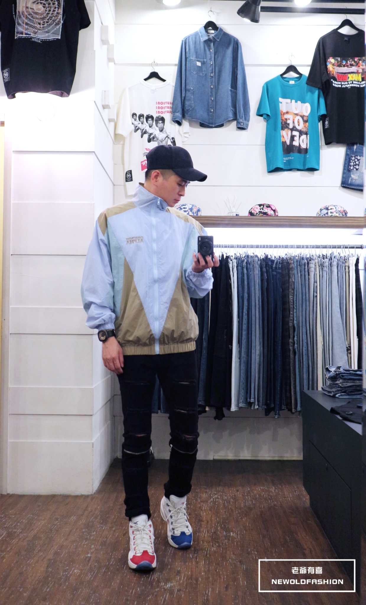 胸口英字刺繡、多色拼接造型!
