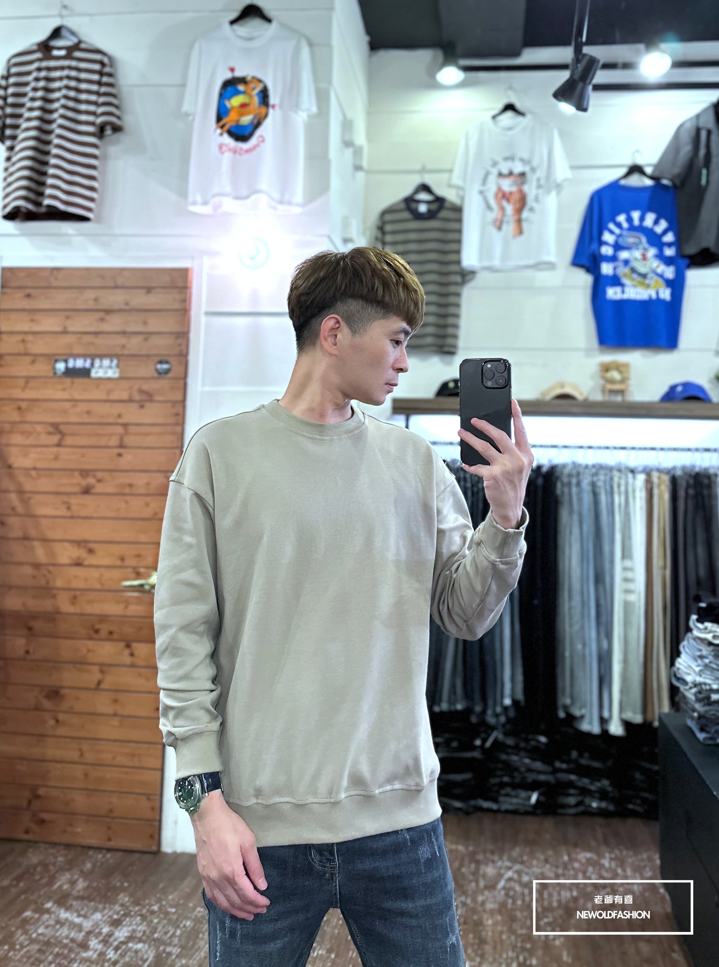 『新品上市』重磅簡約素色圓領大學T-卡其(NOF2309B5510)