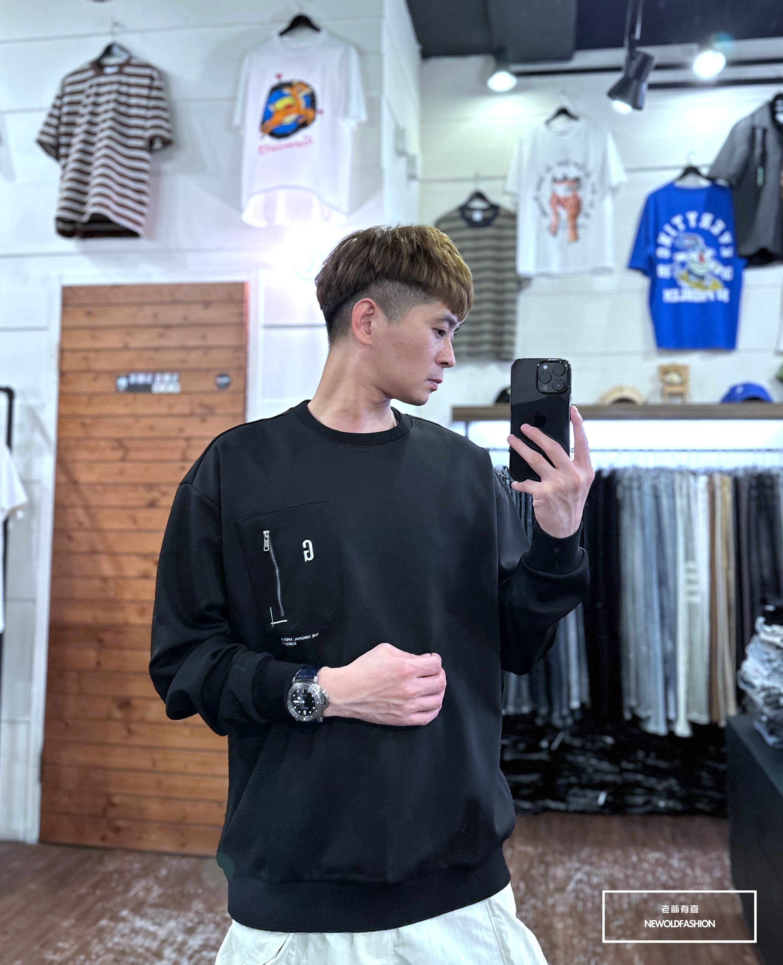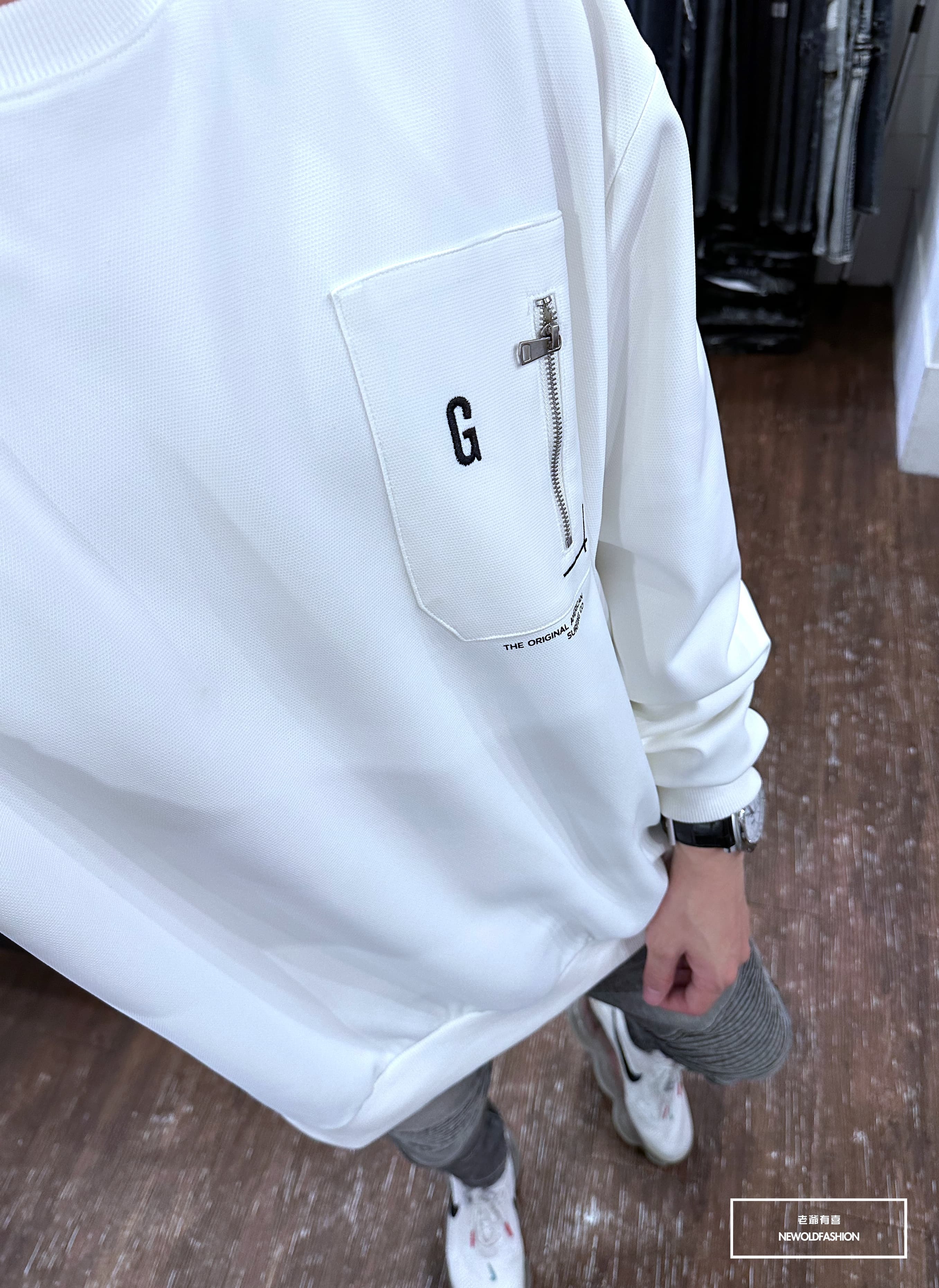 『新品上市』重磅G刺繡拉鍊口袋大學T-黑(NOF2309B5531)
