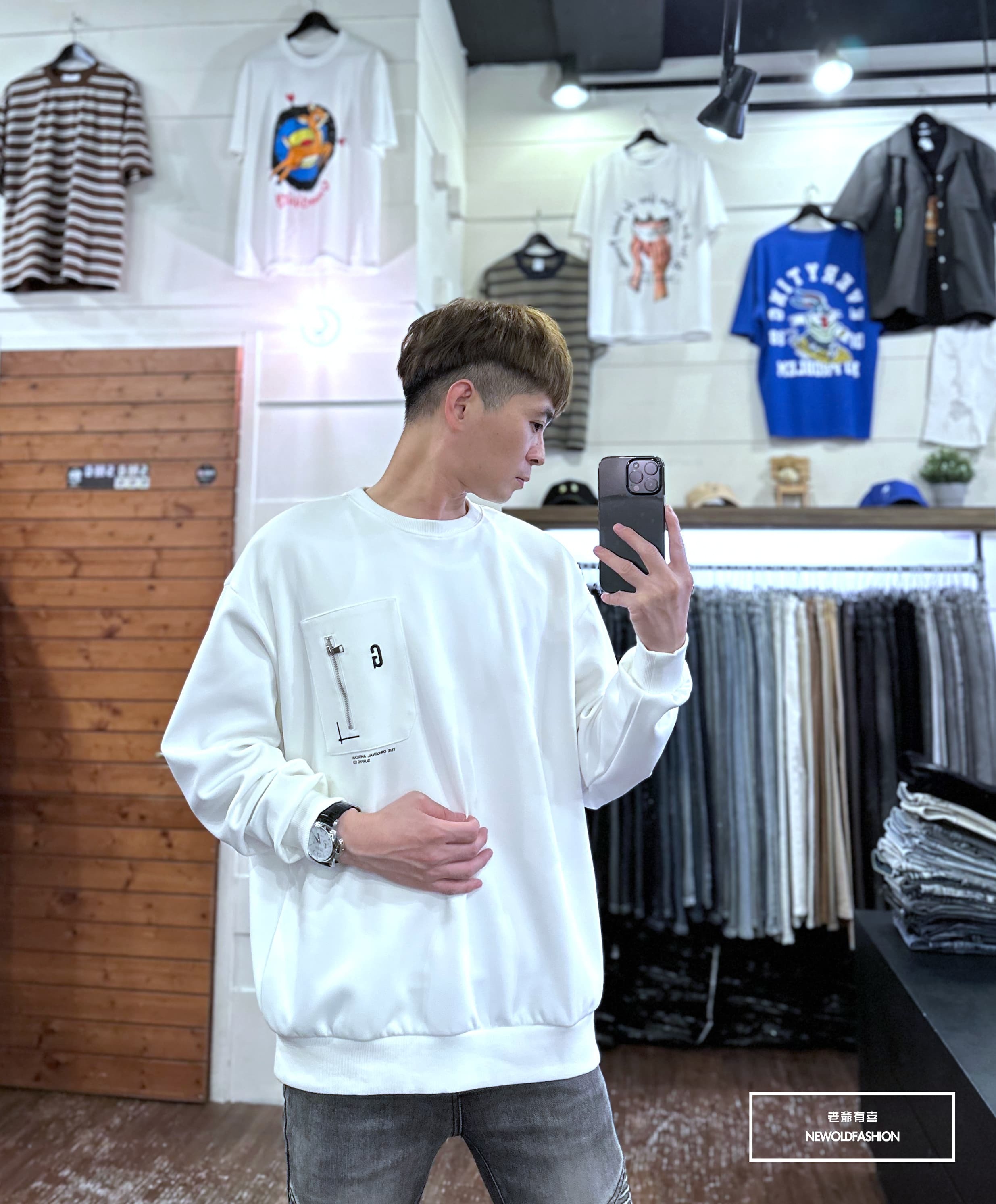 胸口拼接拉鍊口袋造型設計,版型超挺!