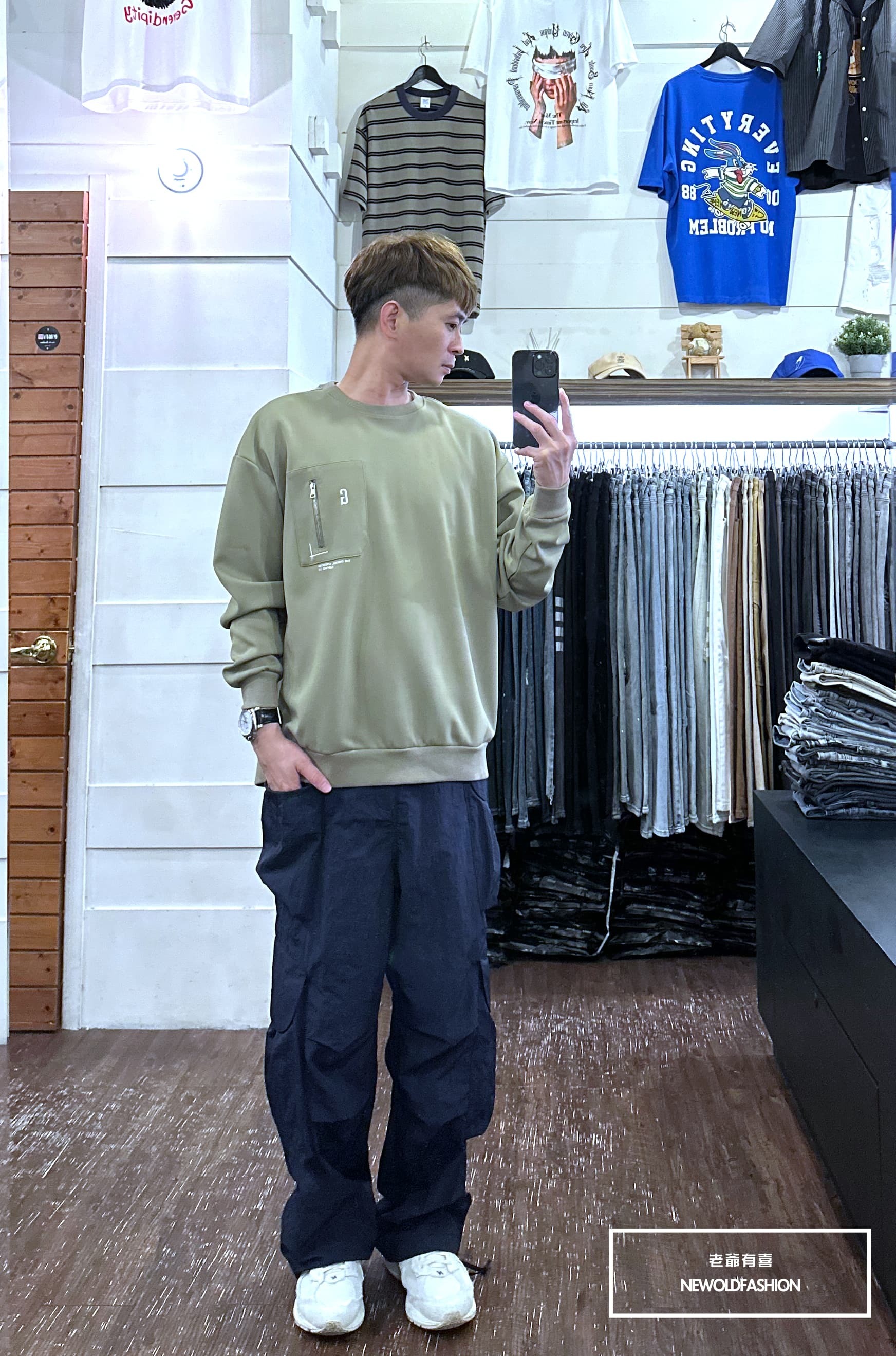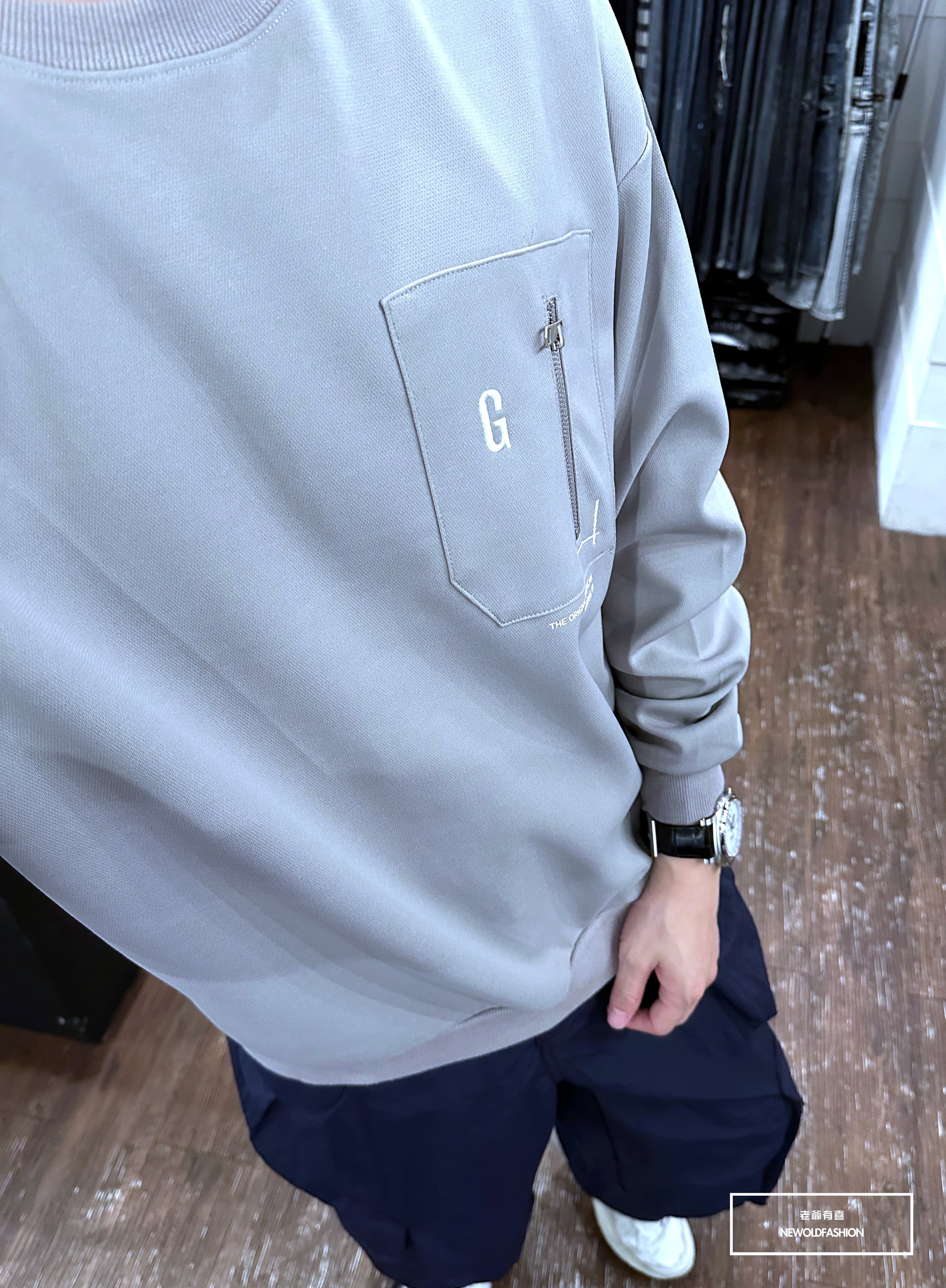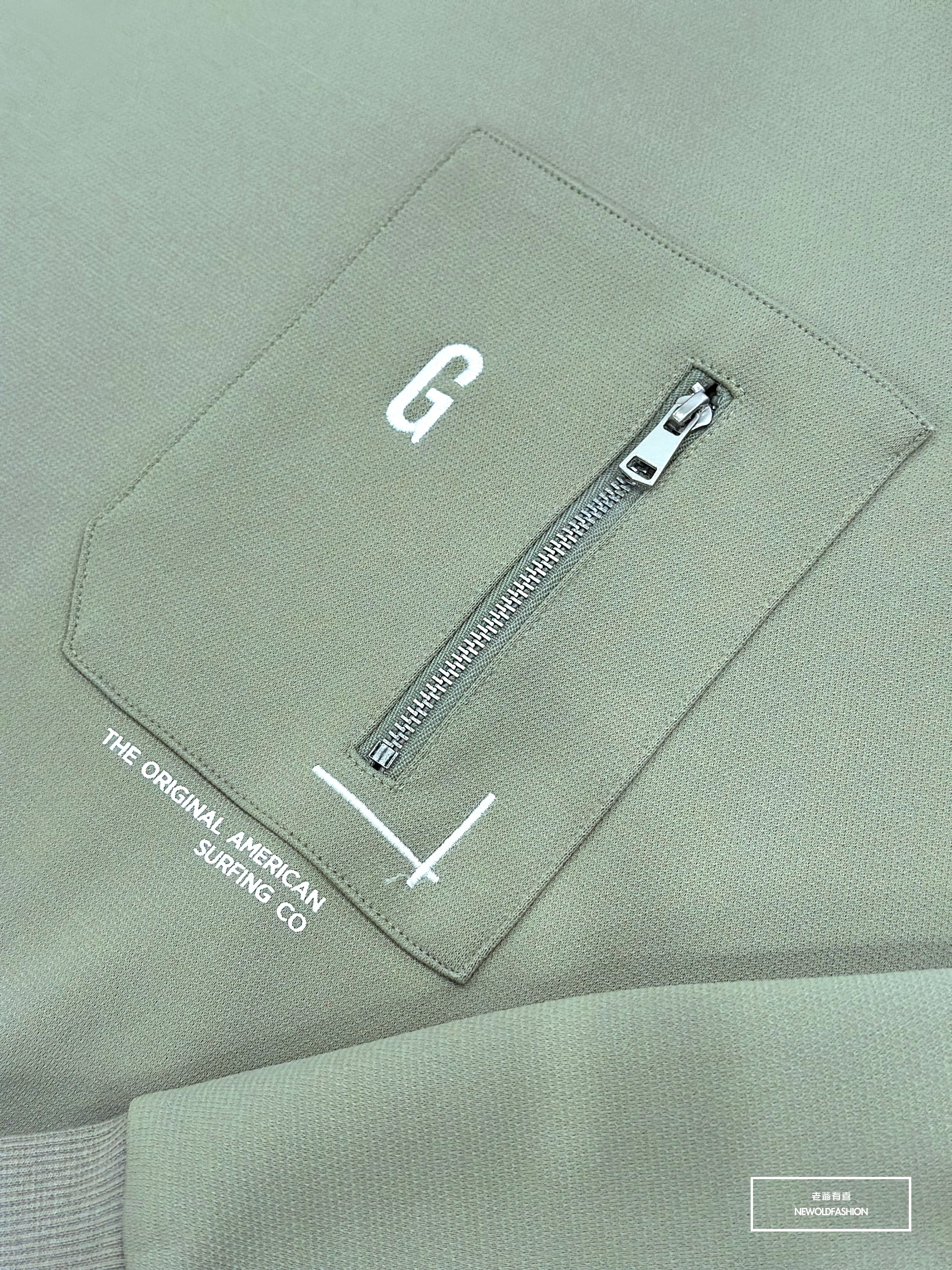 『新品上市』重磅G刺繡拉鍊口袋大學T-綠(NOF2309B5531)