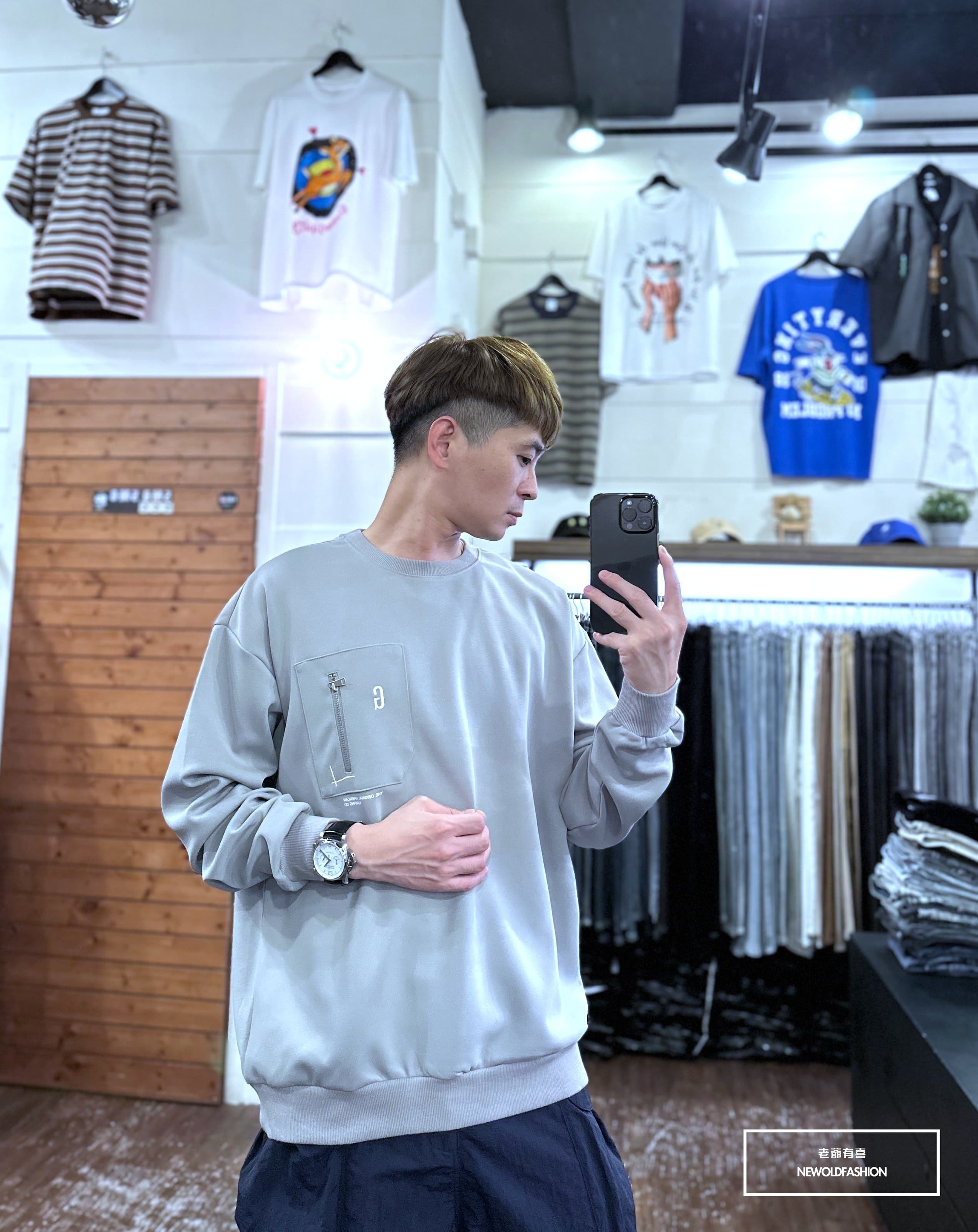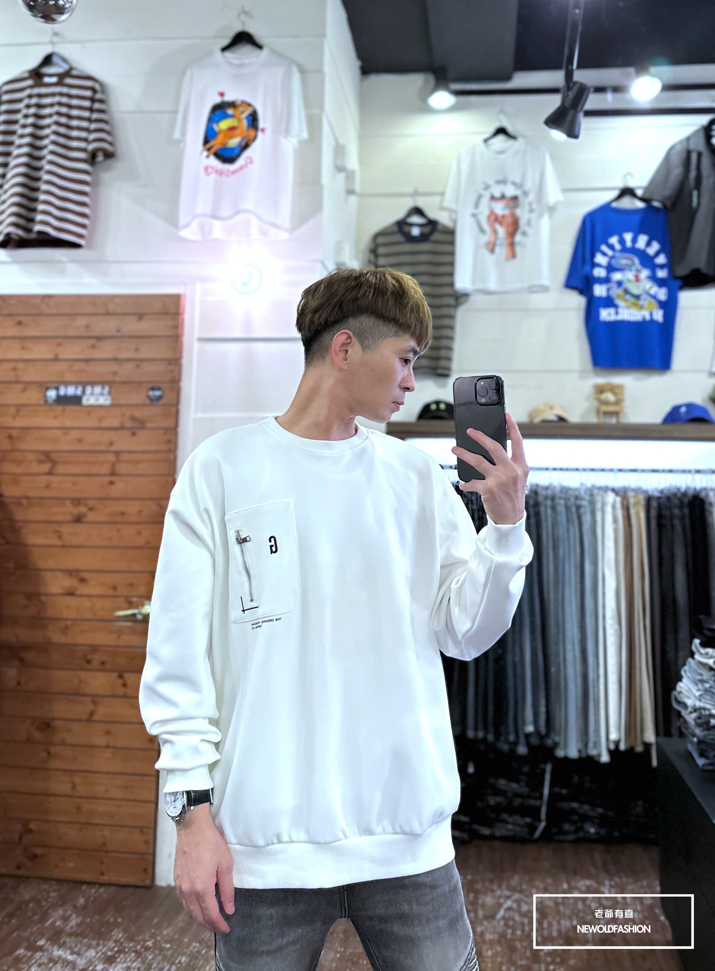胸口拼接拉鍊口袋造型設計,版型超挺!