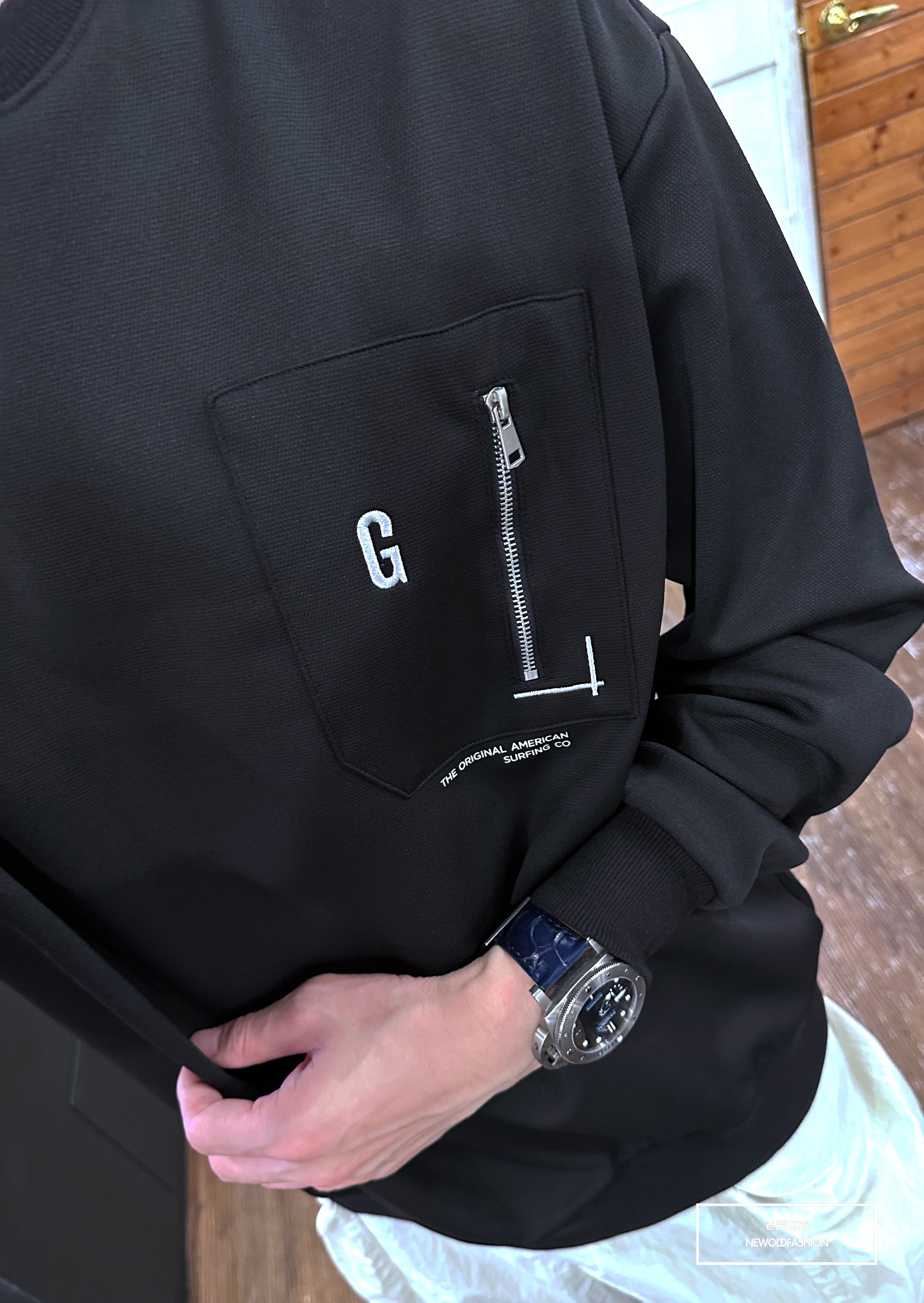 『新品上市』重磅G刺繡拉鍊口袋大學T-白(NOF2309B5531)