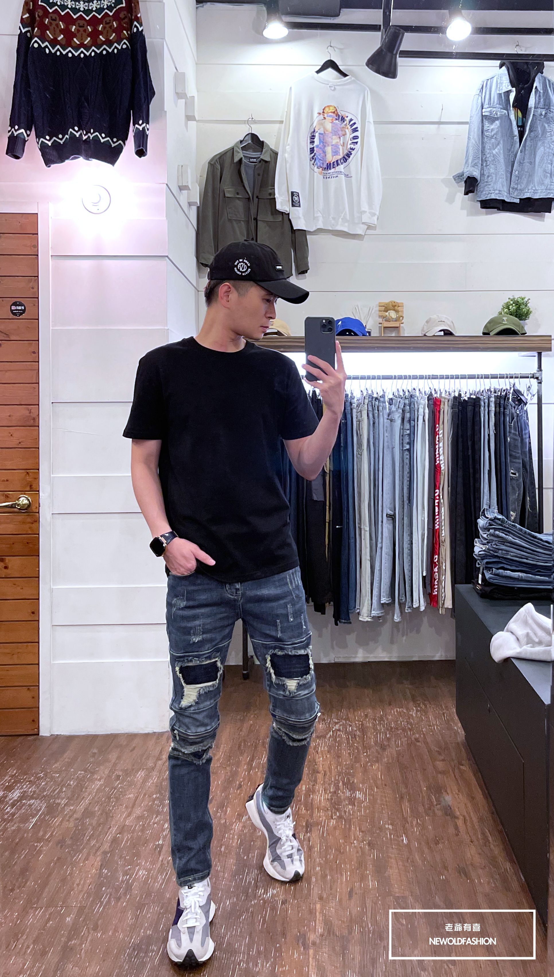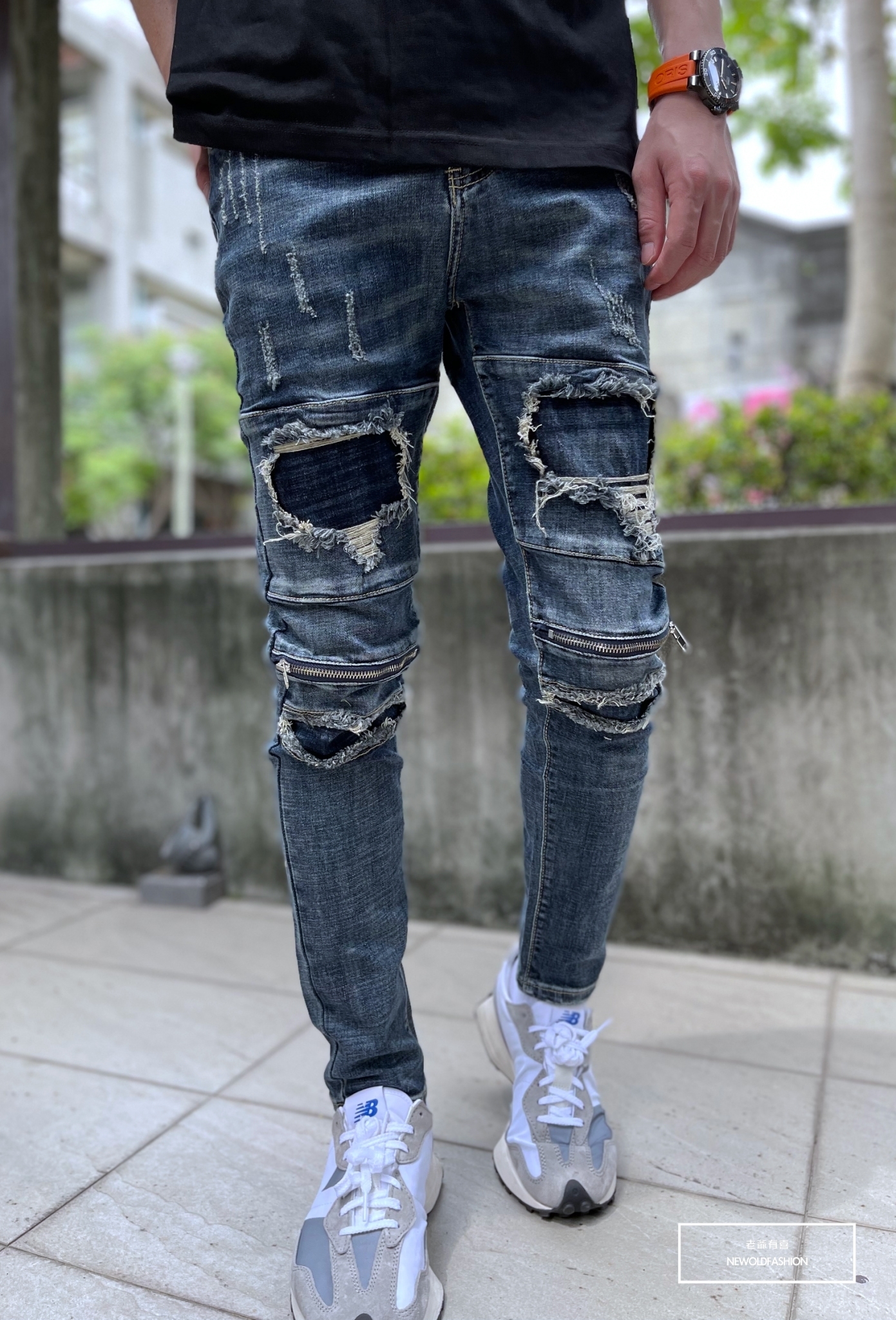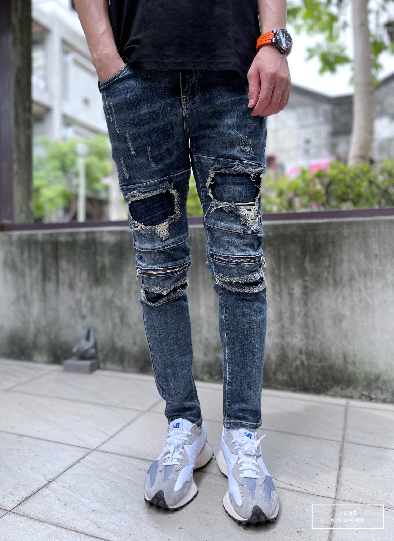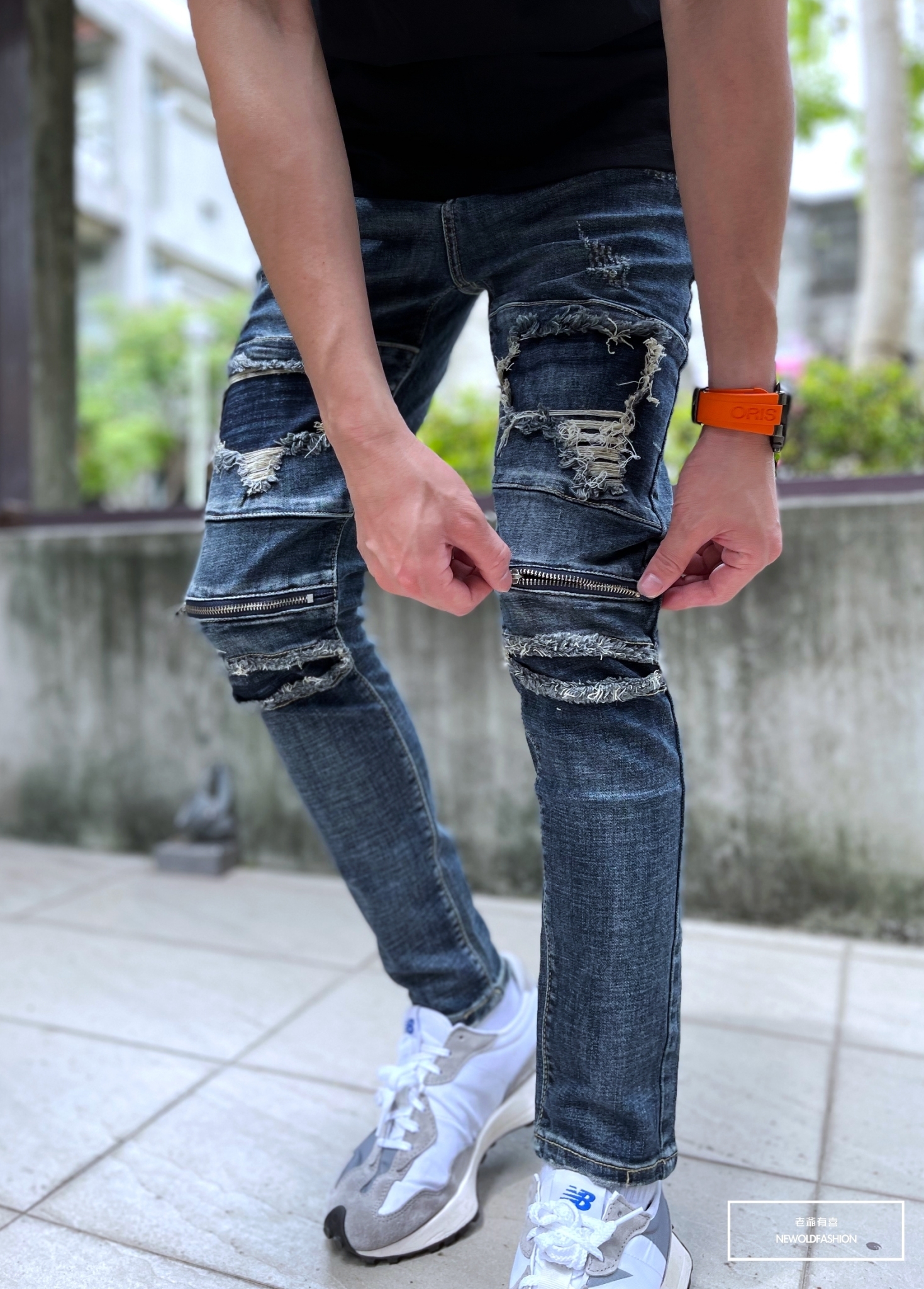 『新品上市』重磅深藍補丁膝拉鍊小直筒(NOF22033330)