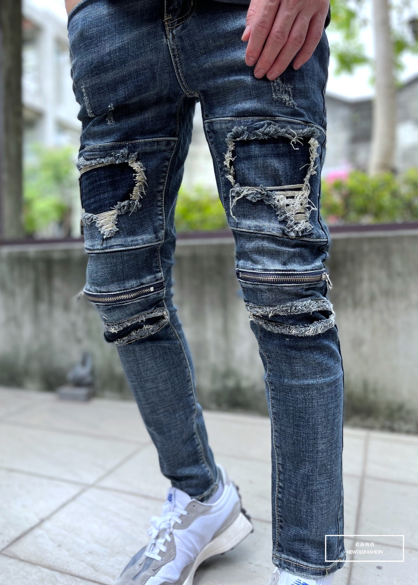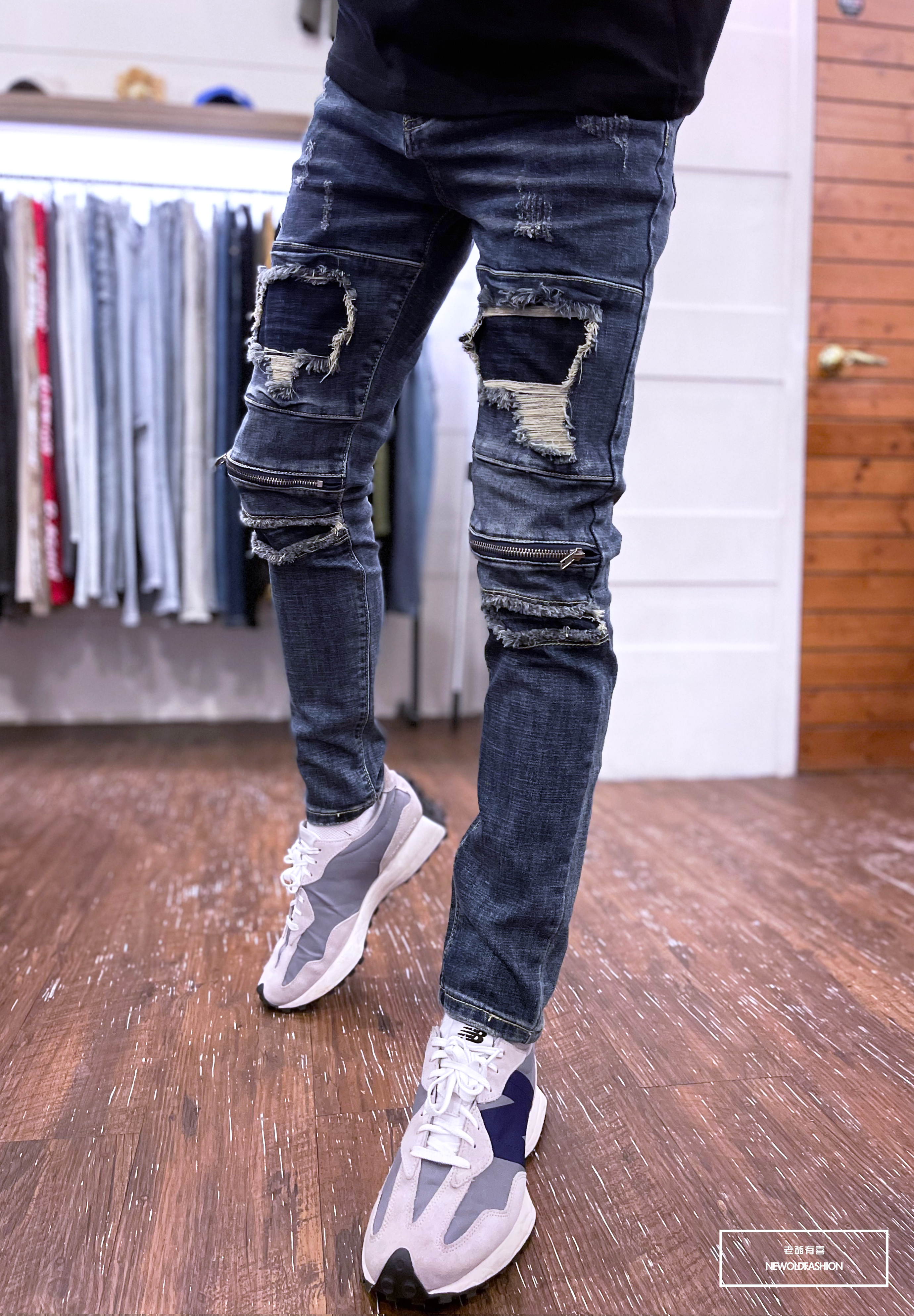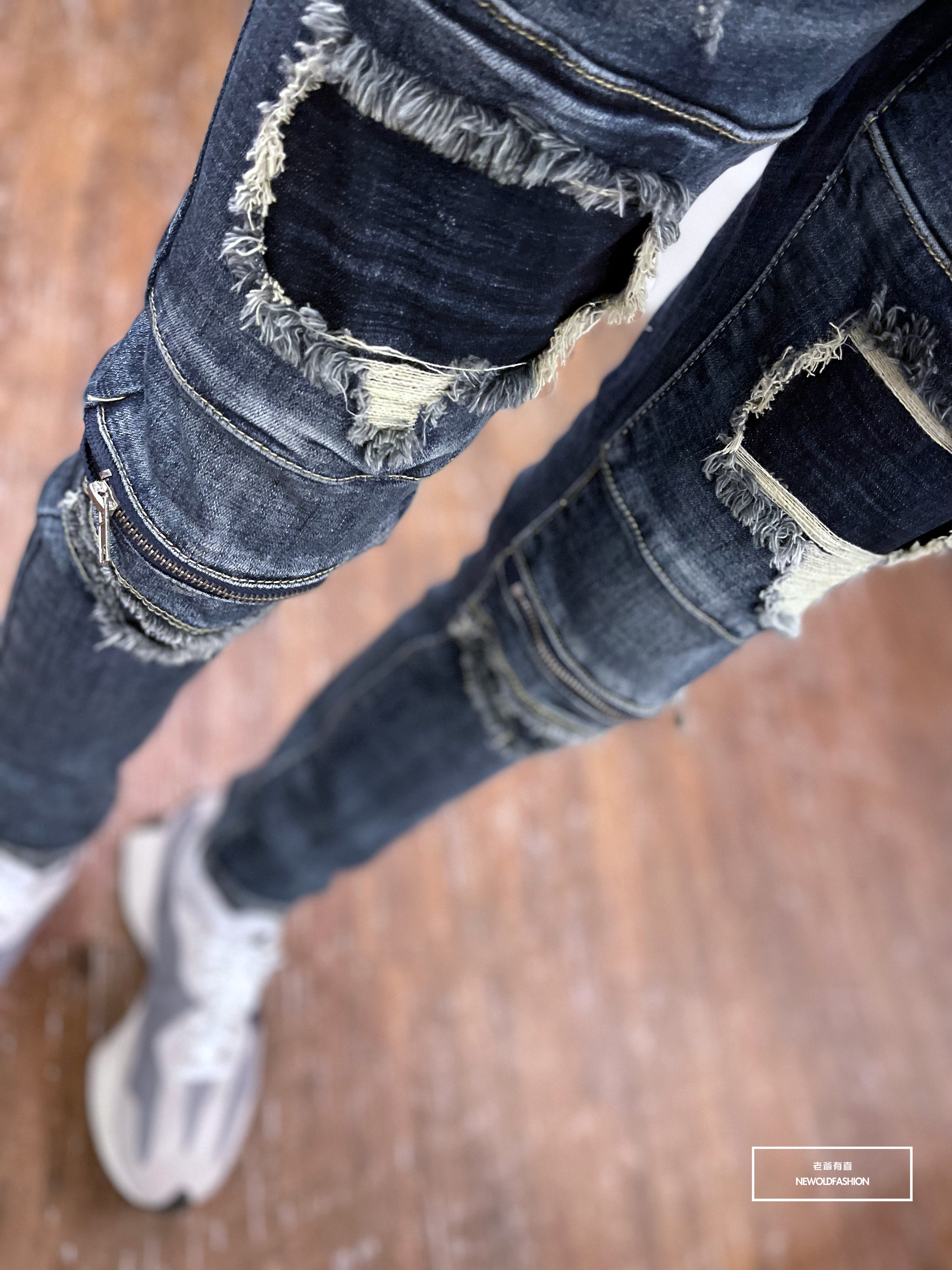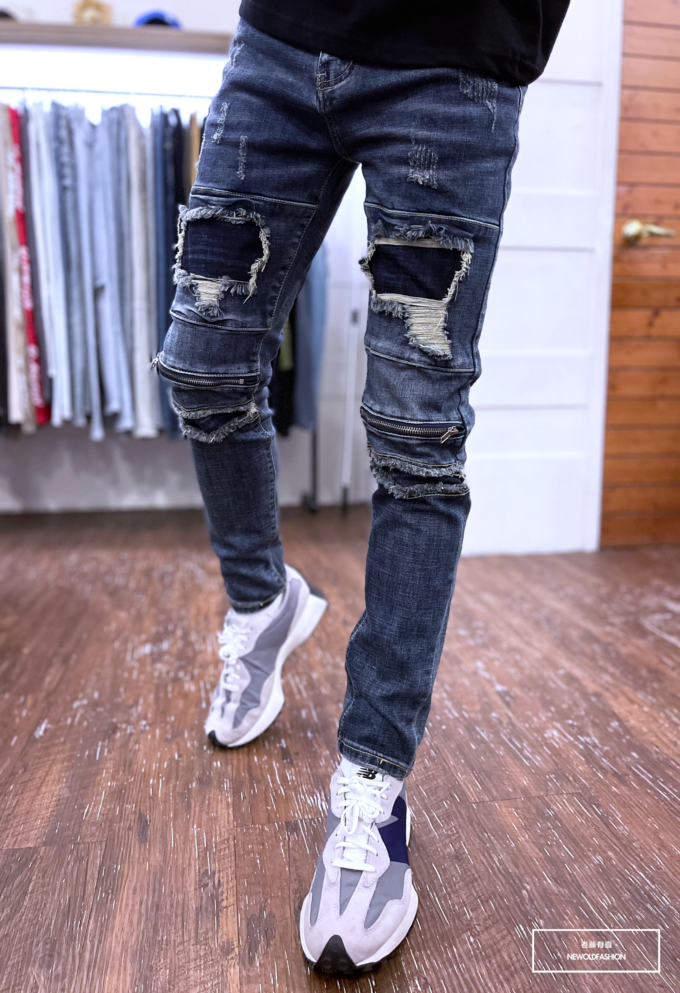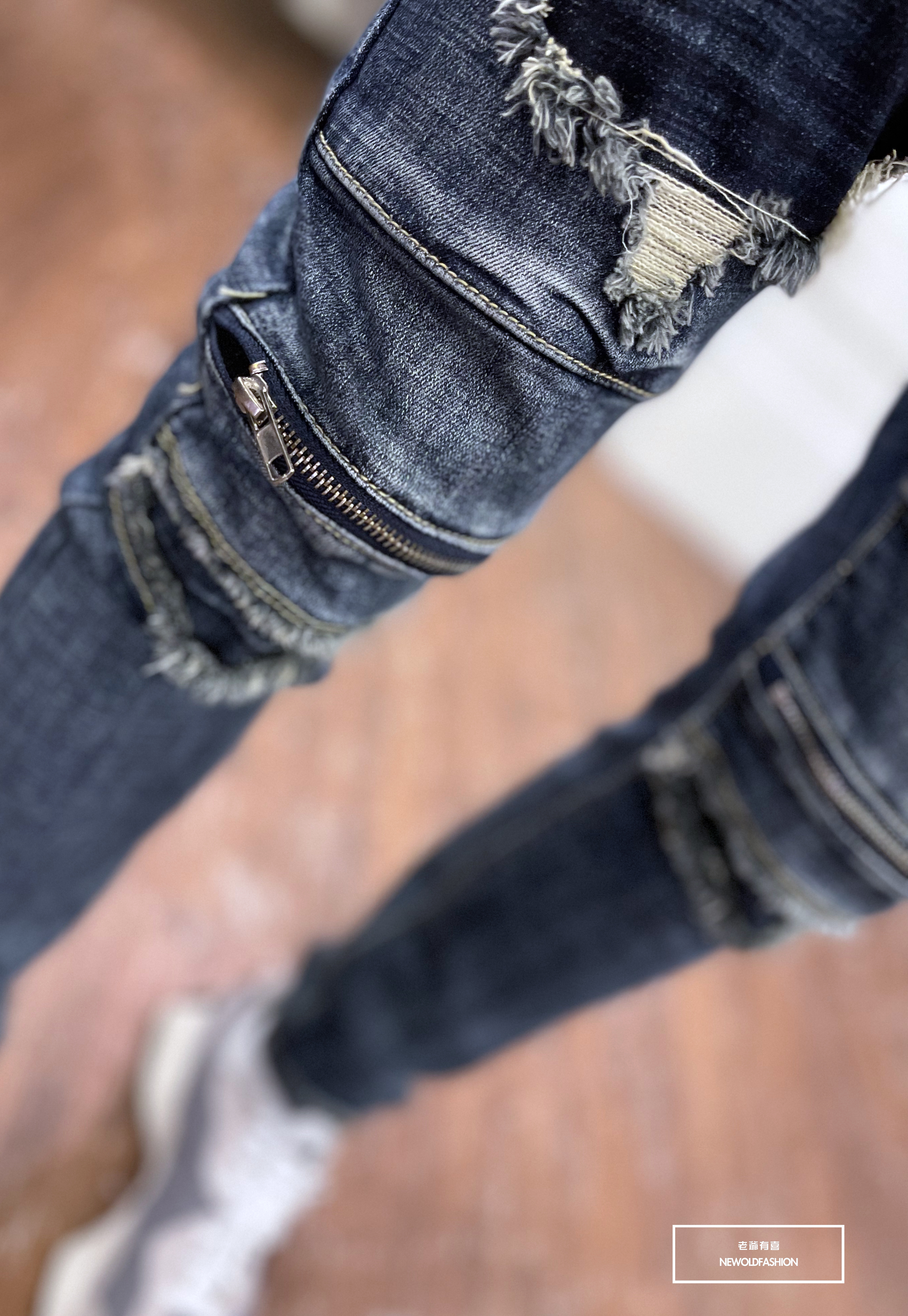 深藍破壞牛王,膝拉鍊拼接設計
