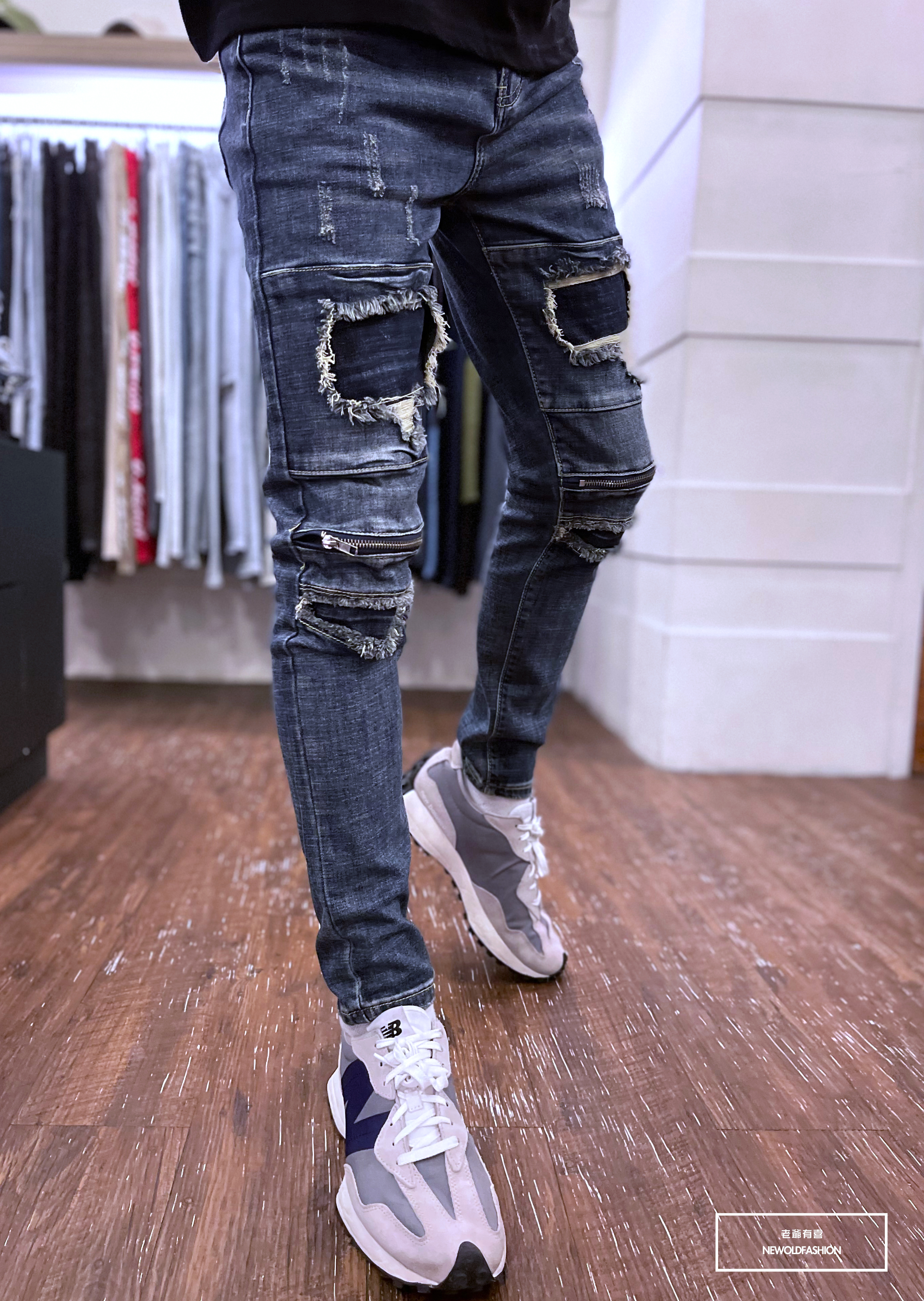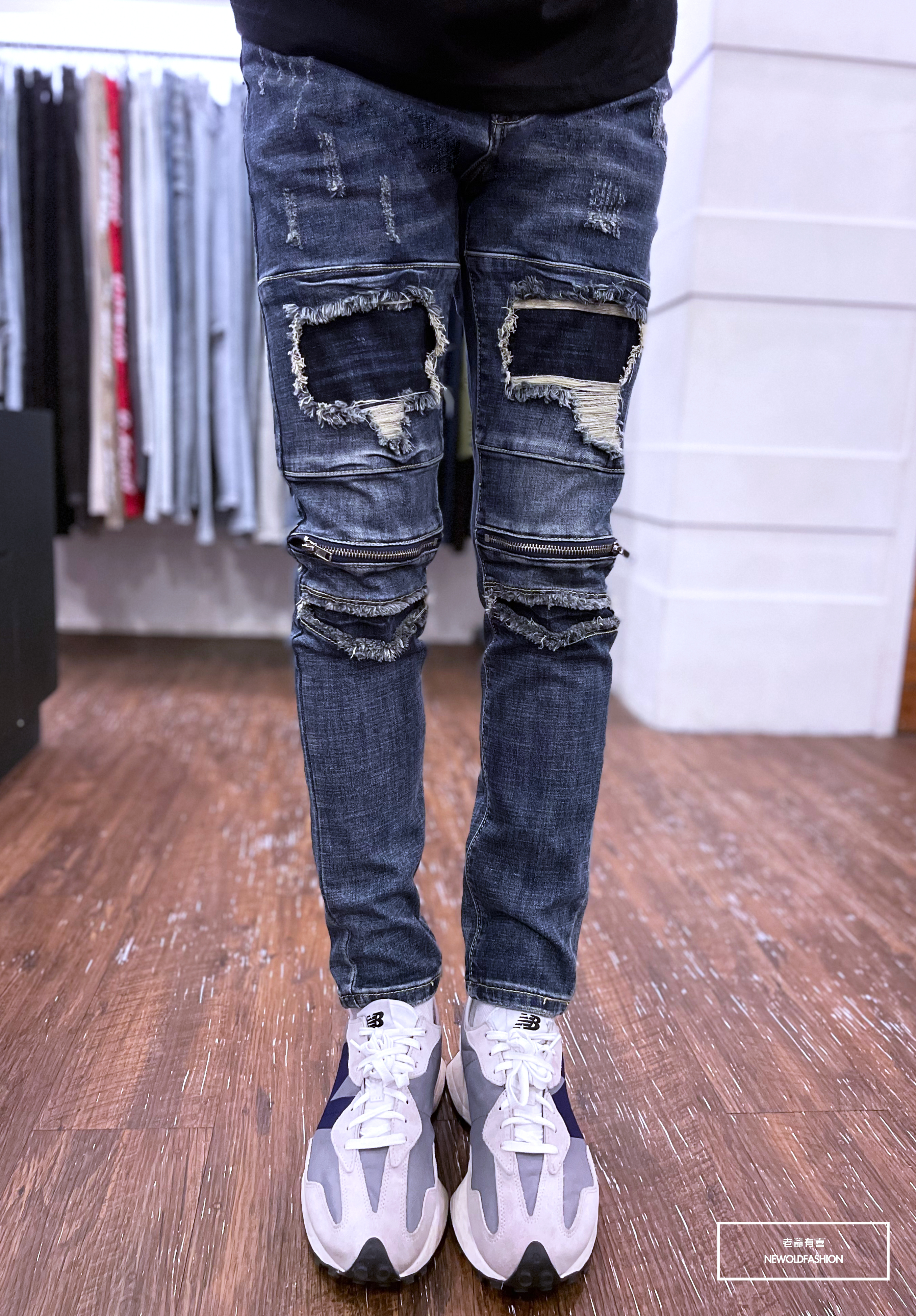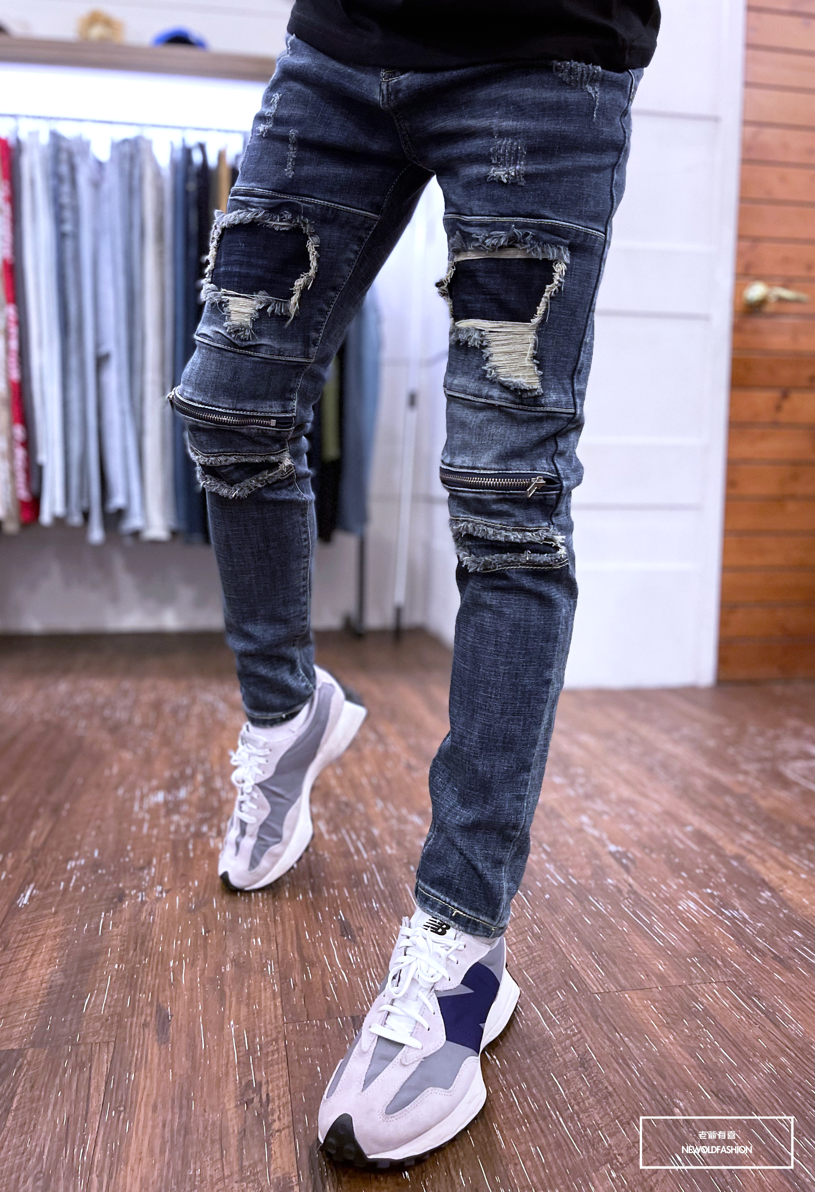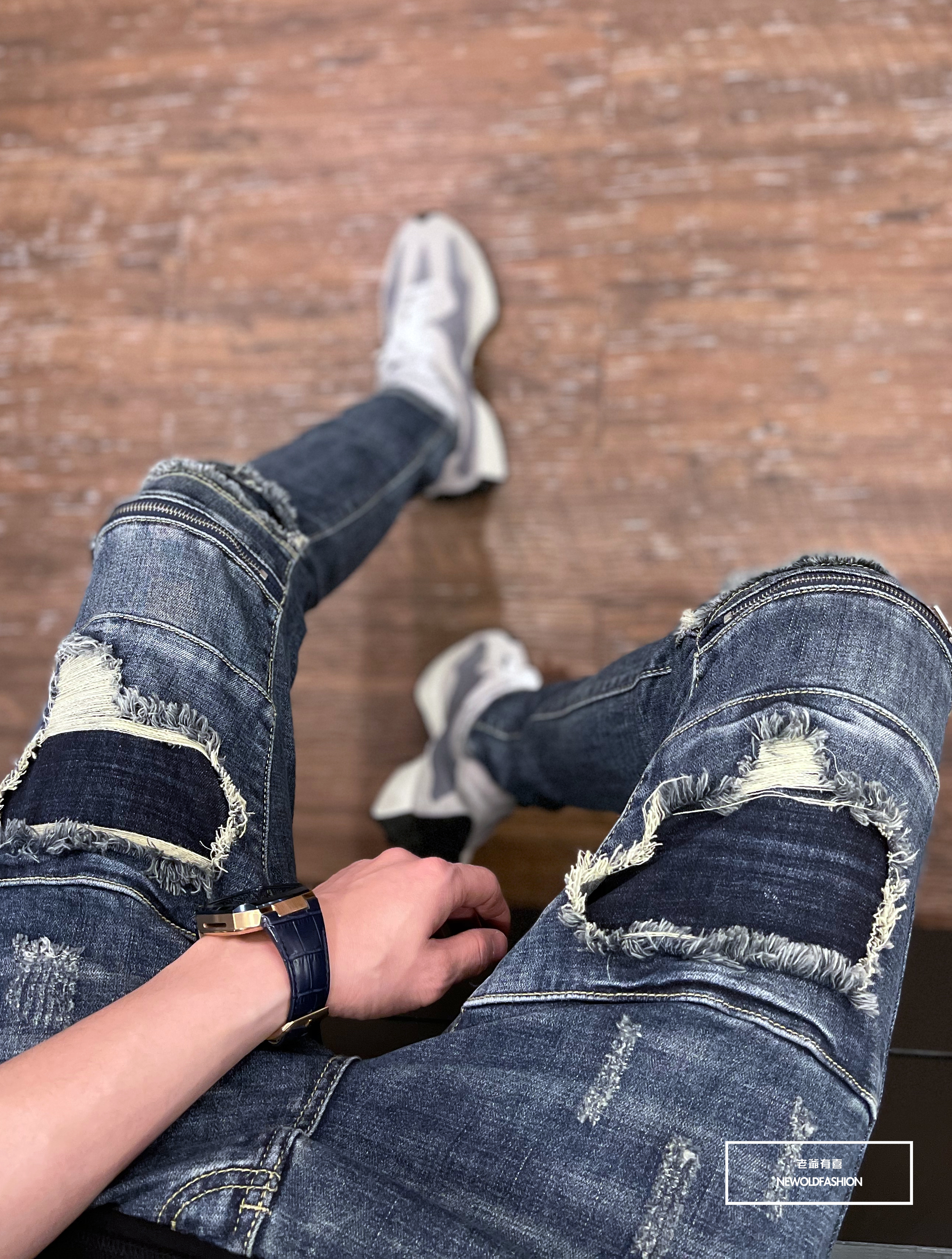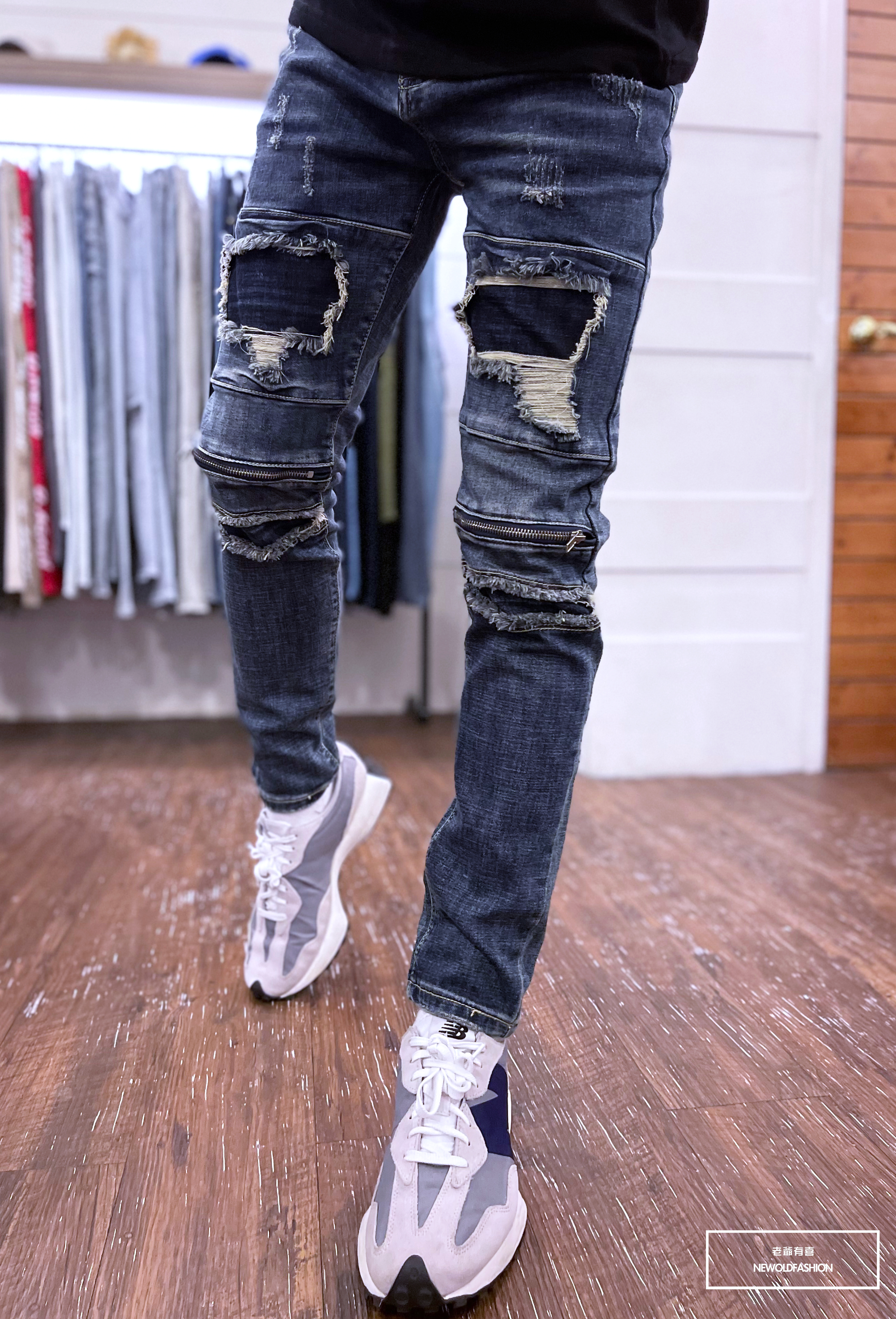 深藍破壞牛王,膝拉鍊拼接設計