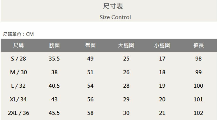 五個尺寸(S、M、L、XL、XXL)