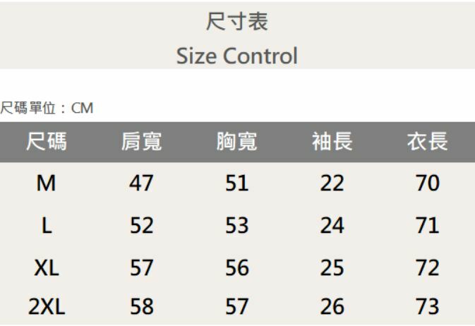 四個尺寸(M、L、XL、XXL)