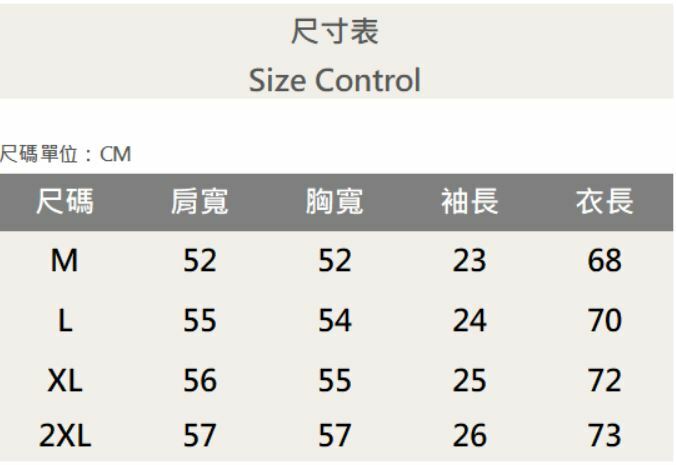 四個尺寸(M、L、XL、XXL)
