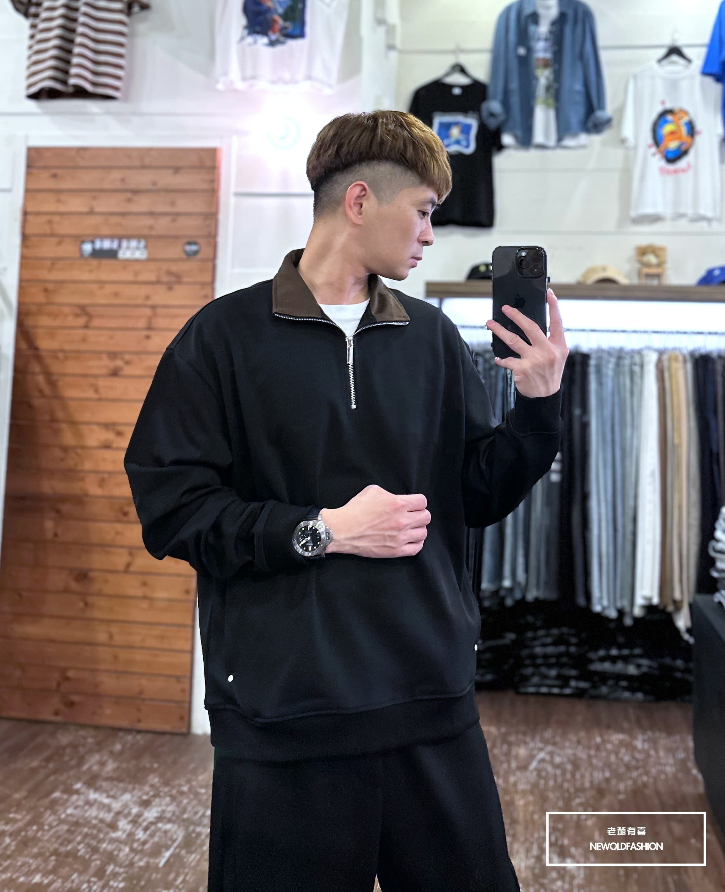 『新品上市』重磅撞色領口袋大學T-黑(NOF2310C65008)