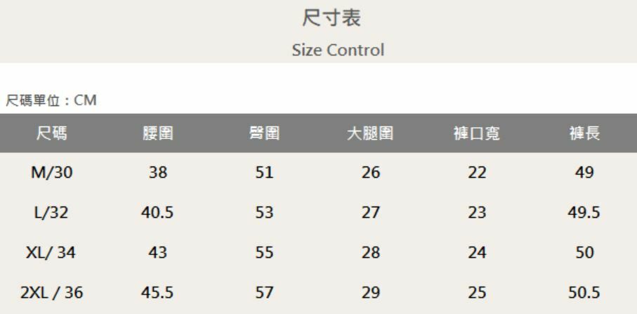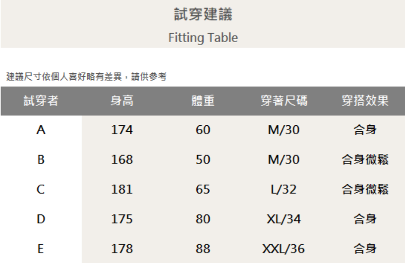四個尺寸(M、L、XL、XXL)