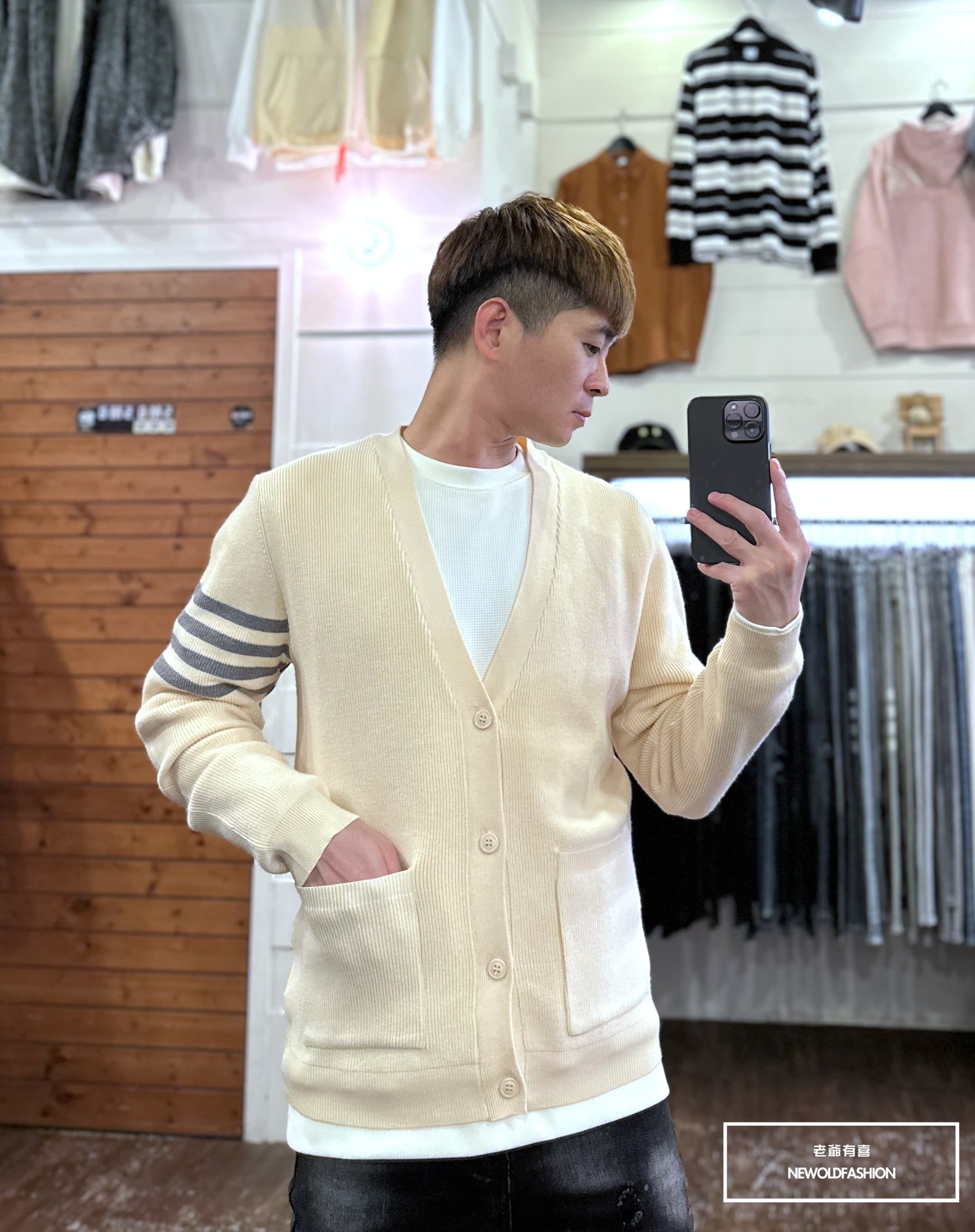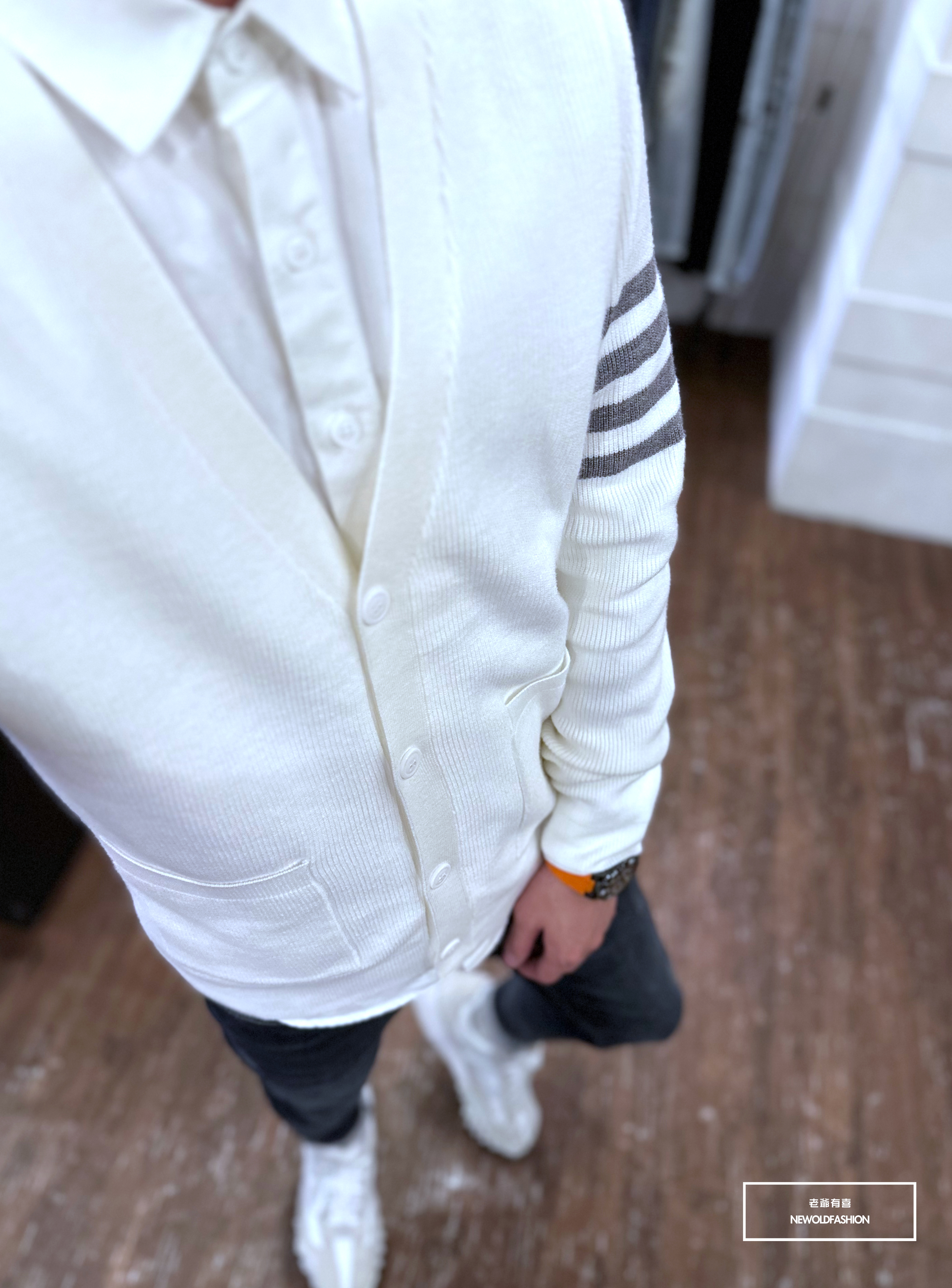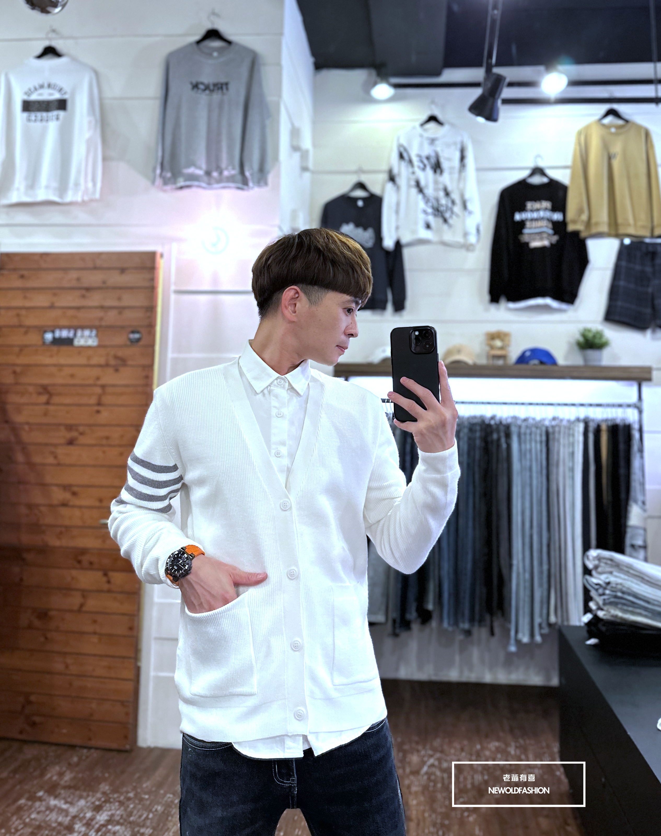 『新品上市』重磅四線條開襟針織罩衫-白(NOF2210C67004)