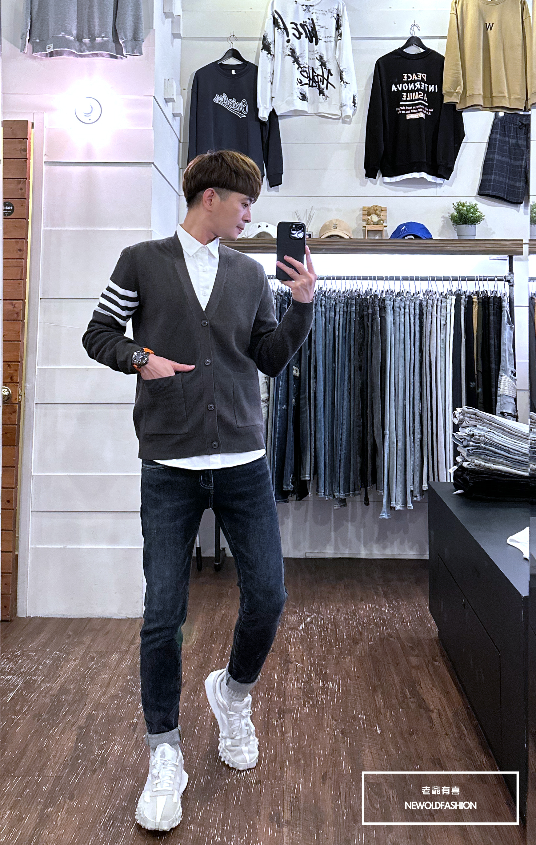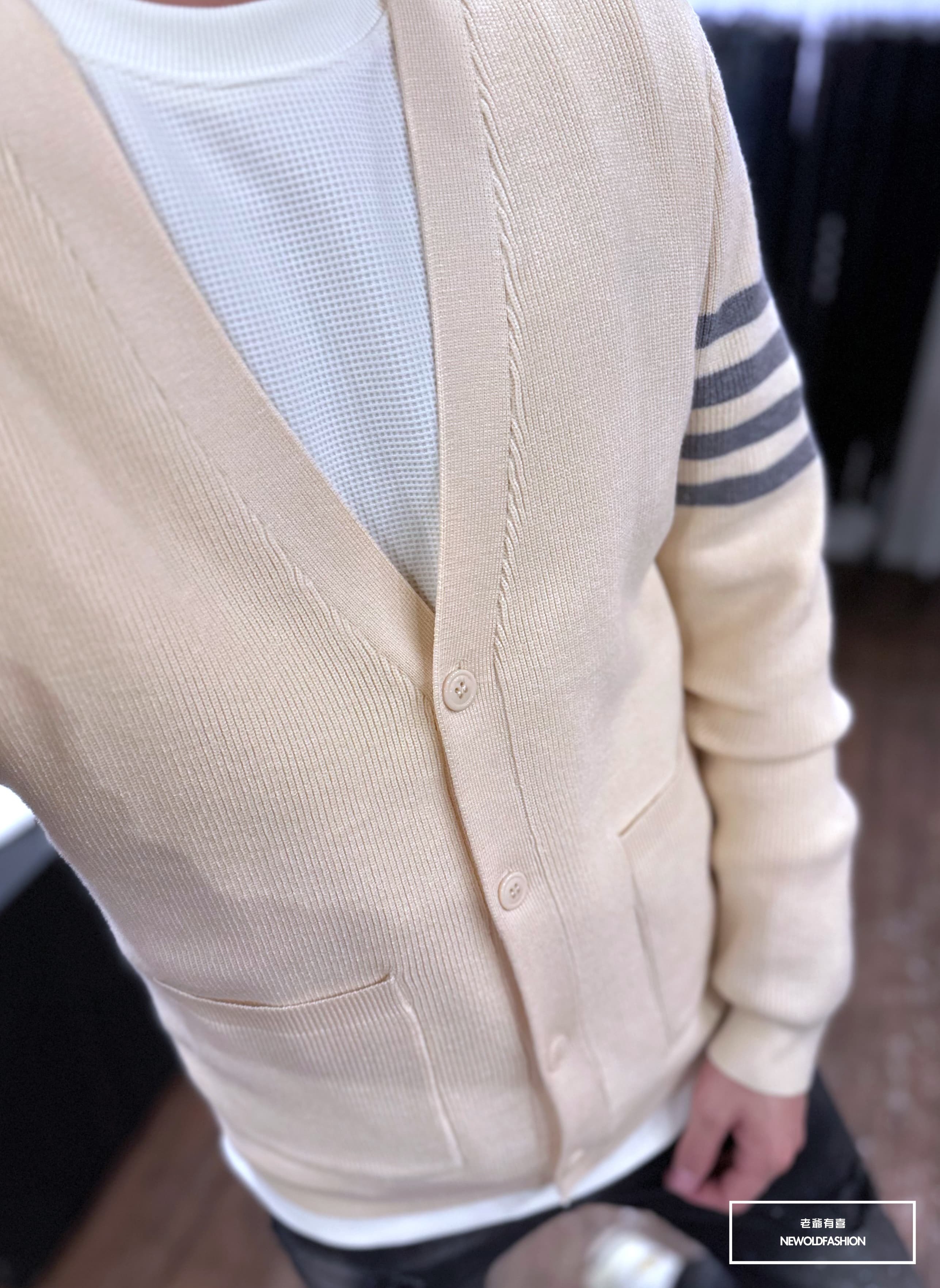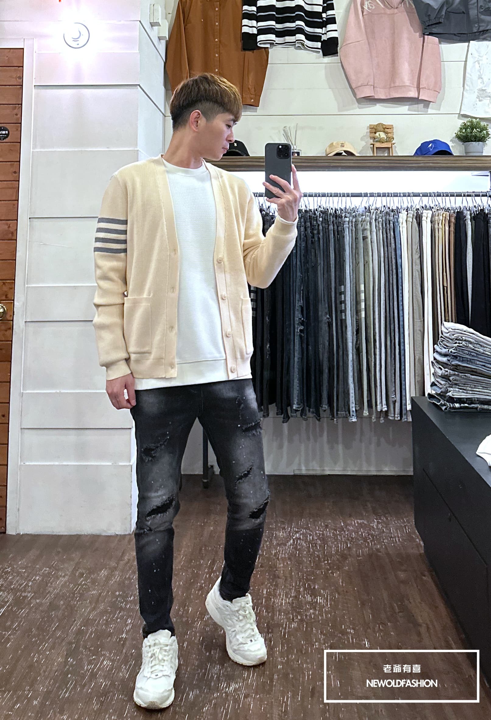 『新品上市』重磅四線條開襟針織罩衫-白(NOF2210C67004)