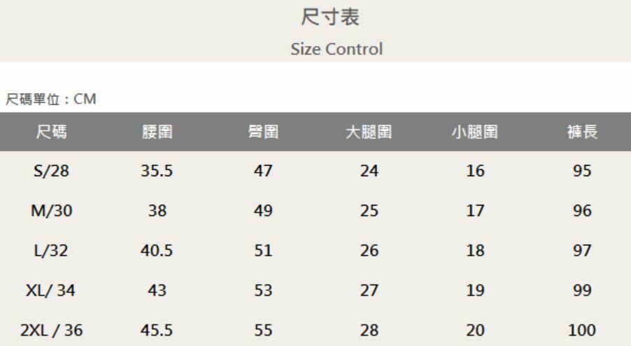 五個尺寸(S、M、L、XL、XXL)