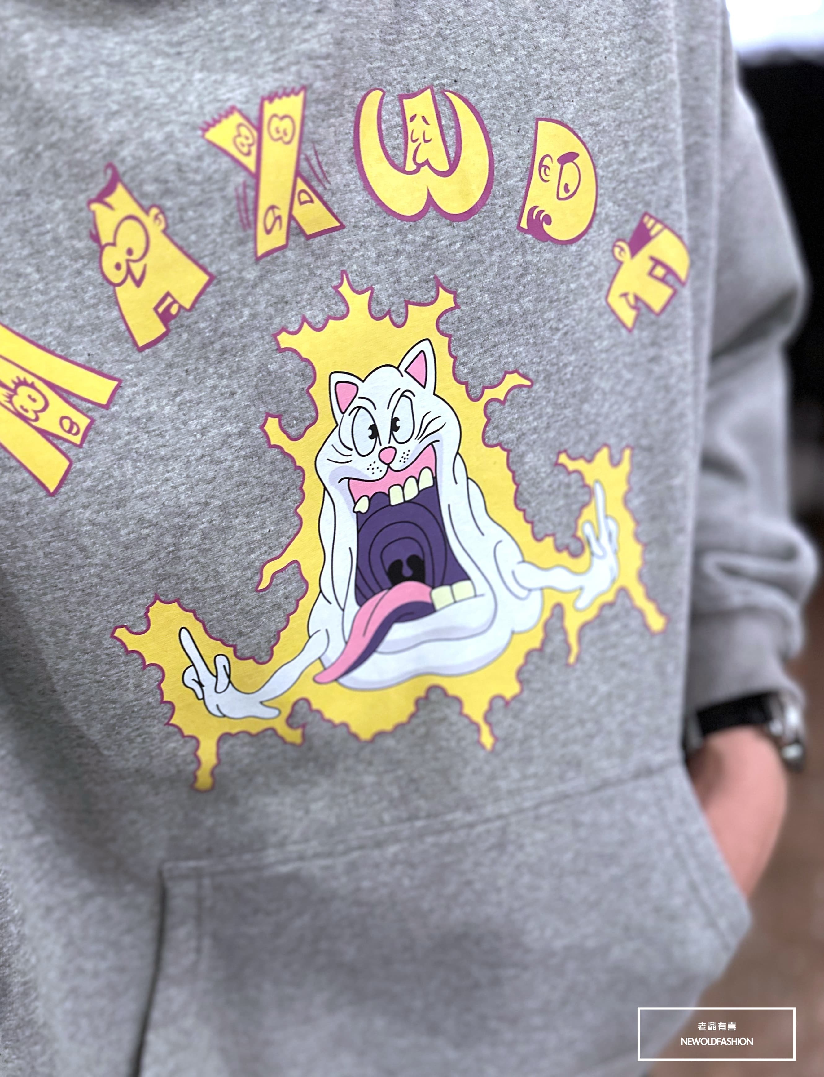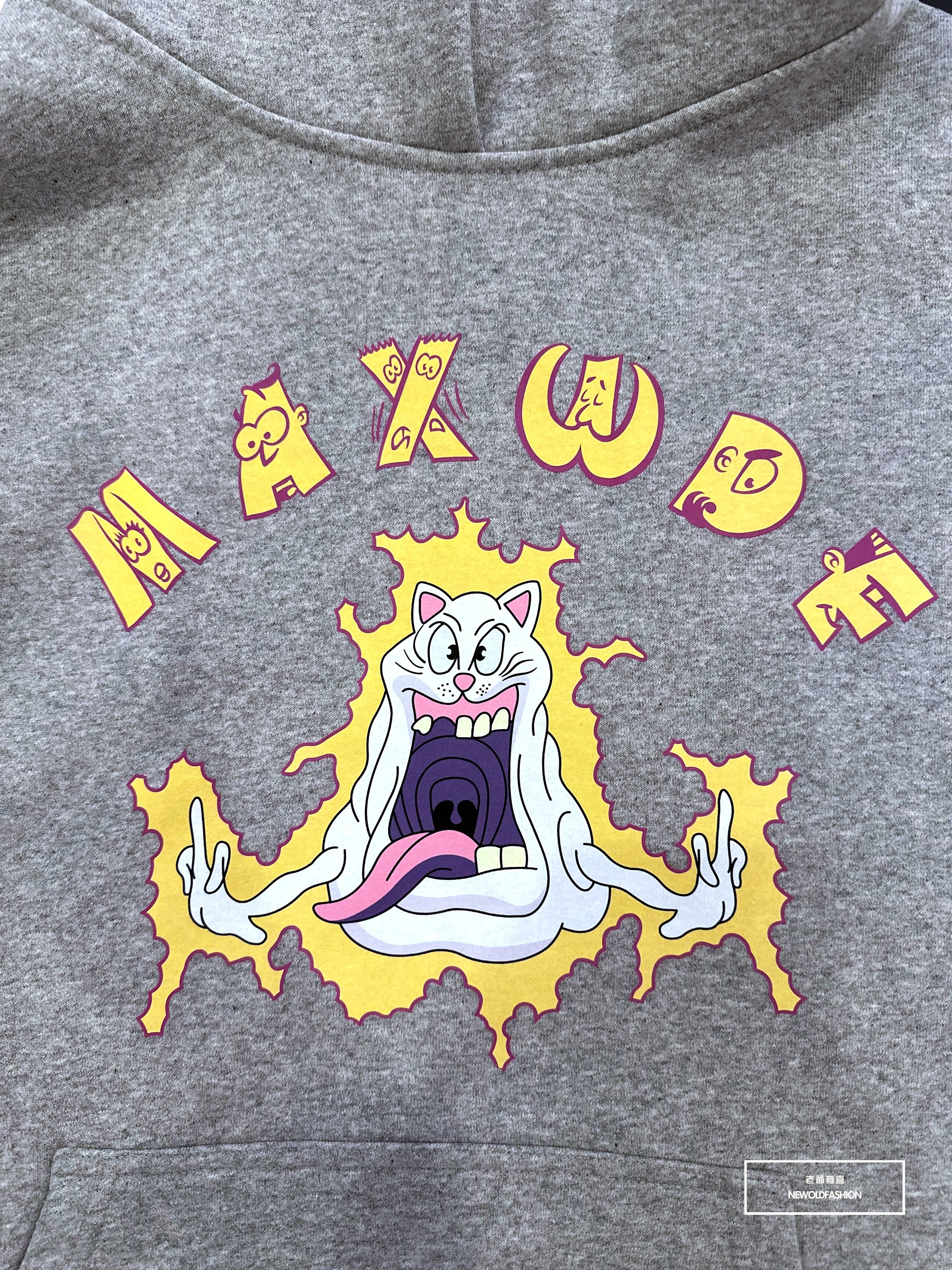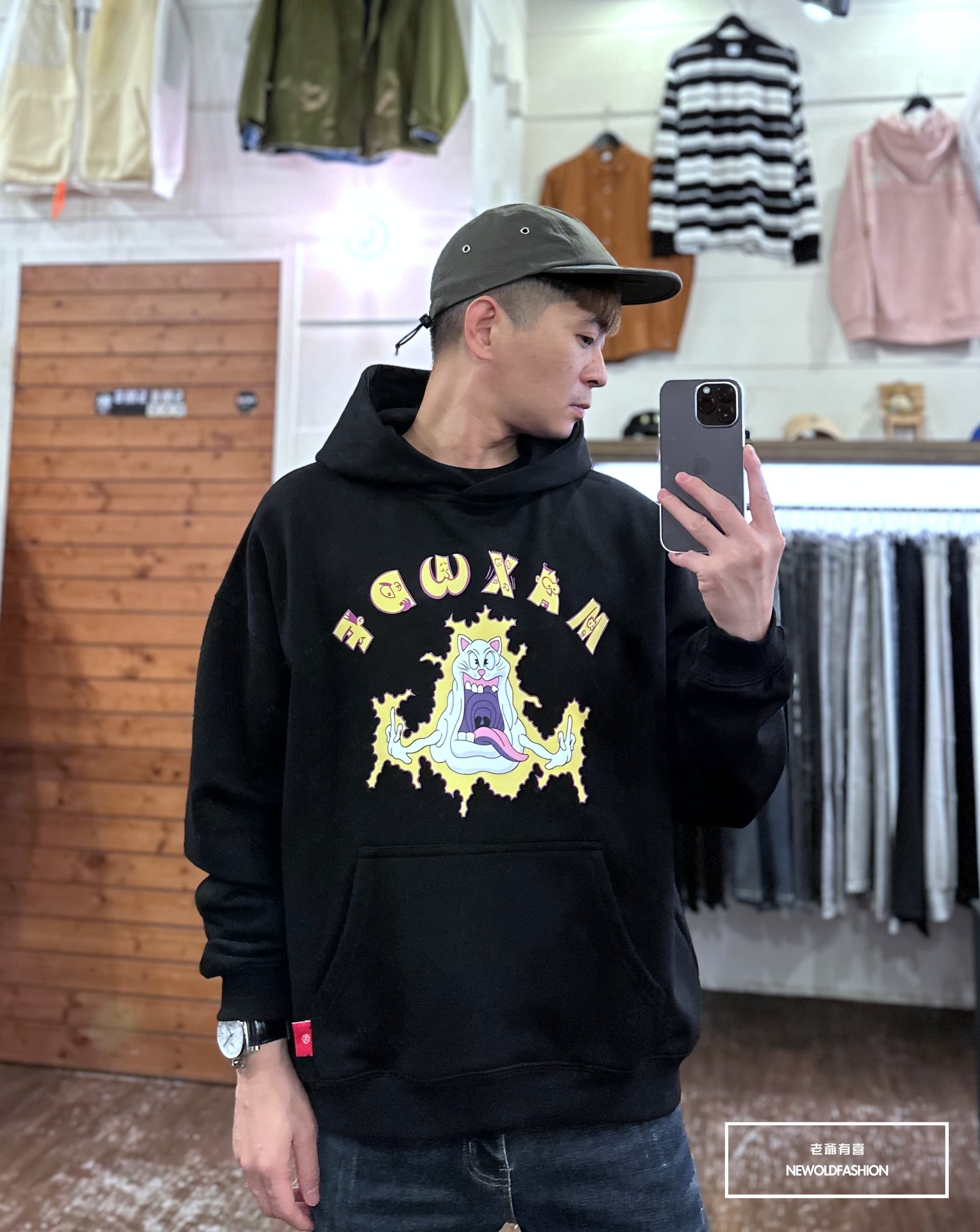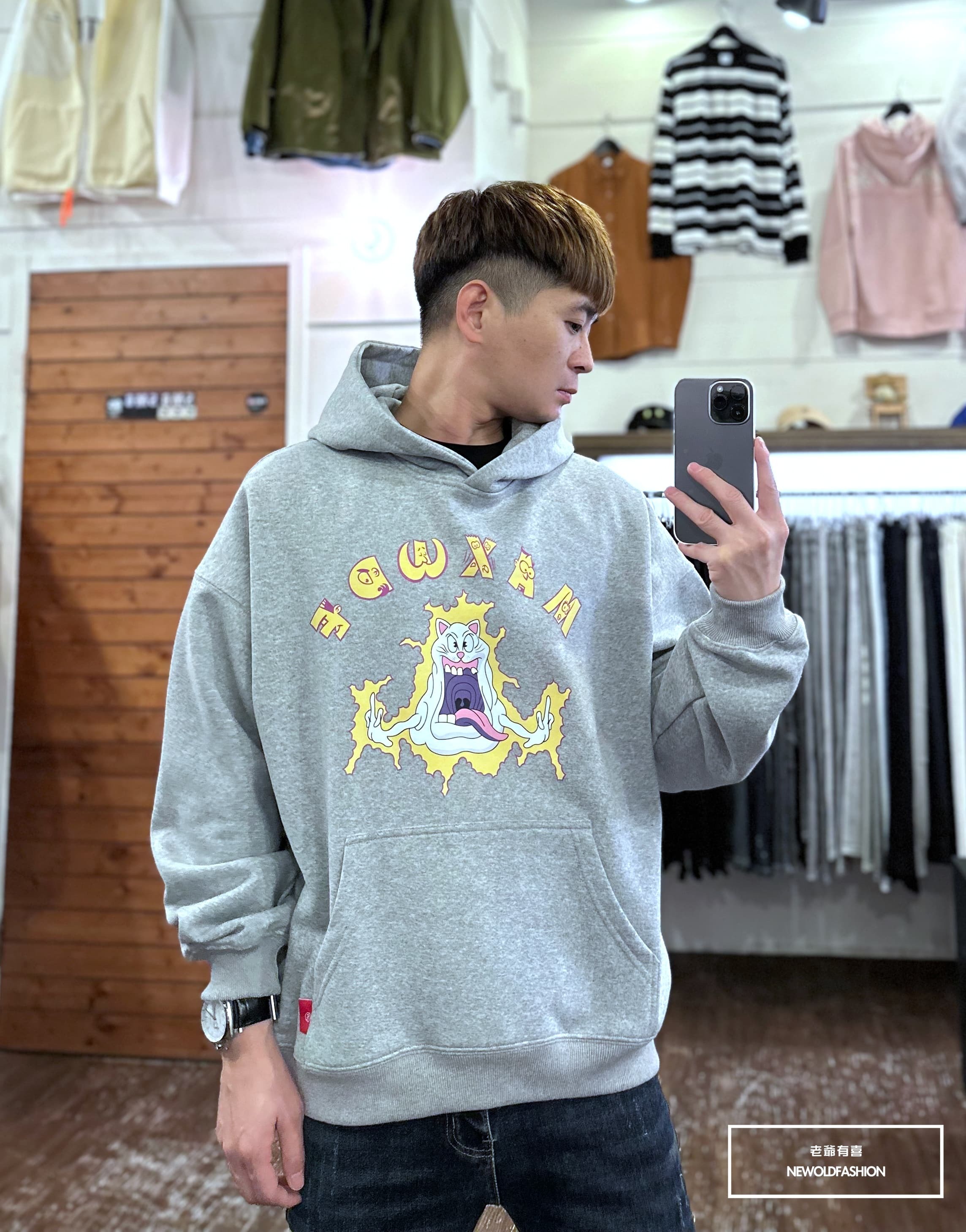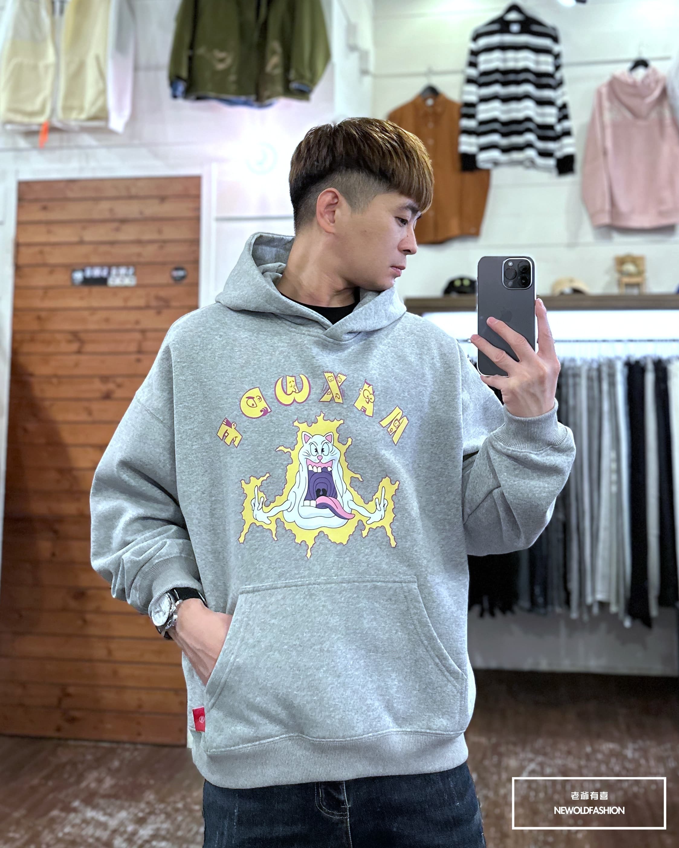 『新品上市』重磅驚嚇貓刷毛帽T-淺灰(NOF2311D001)
