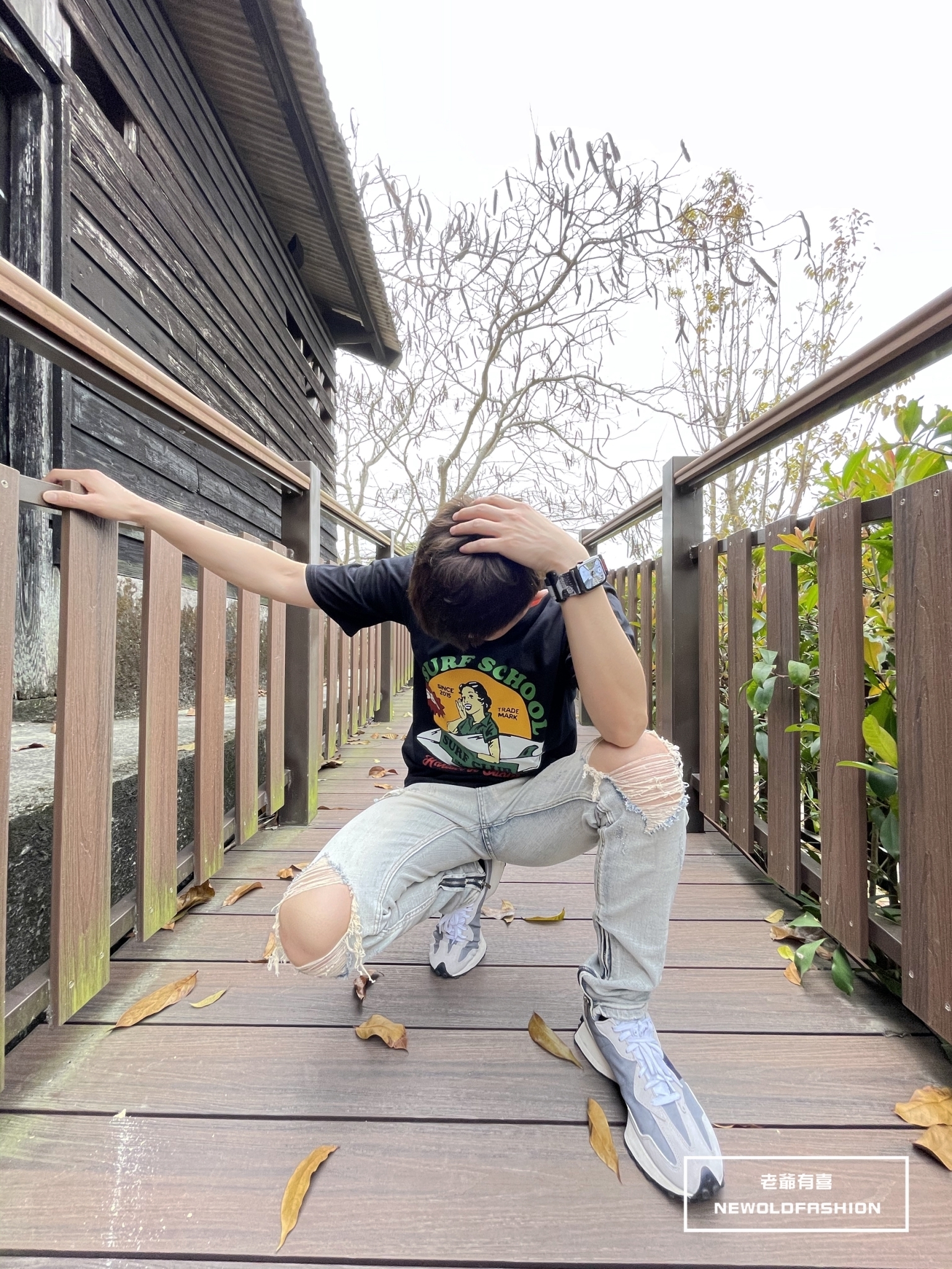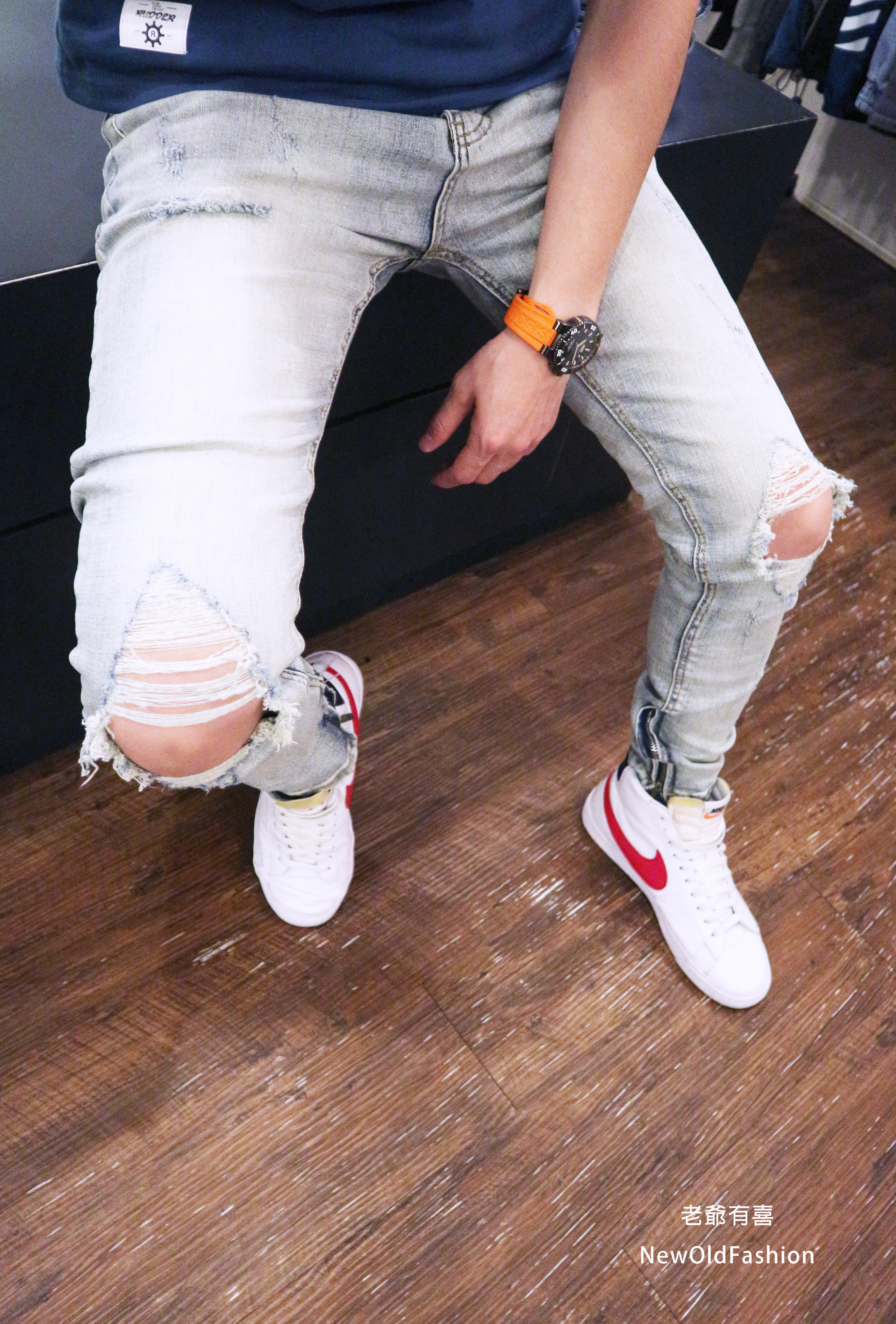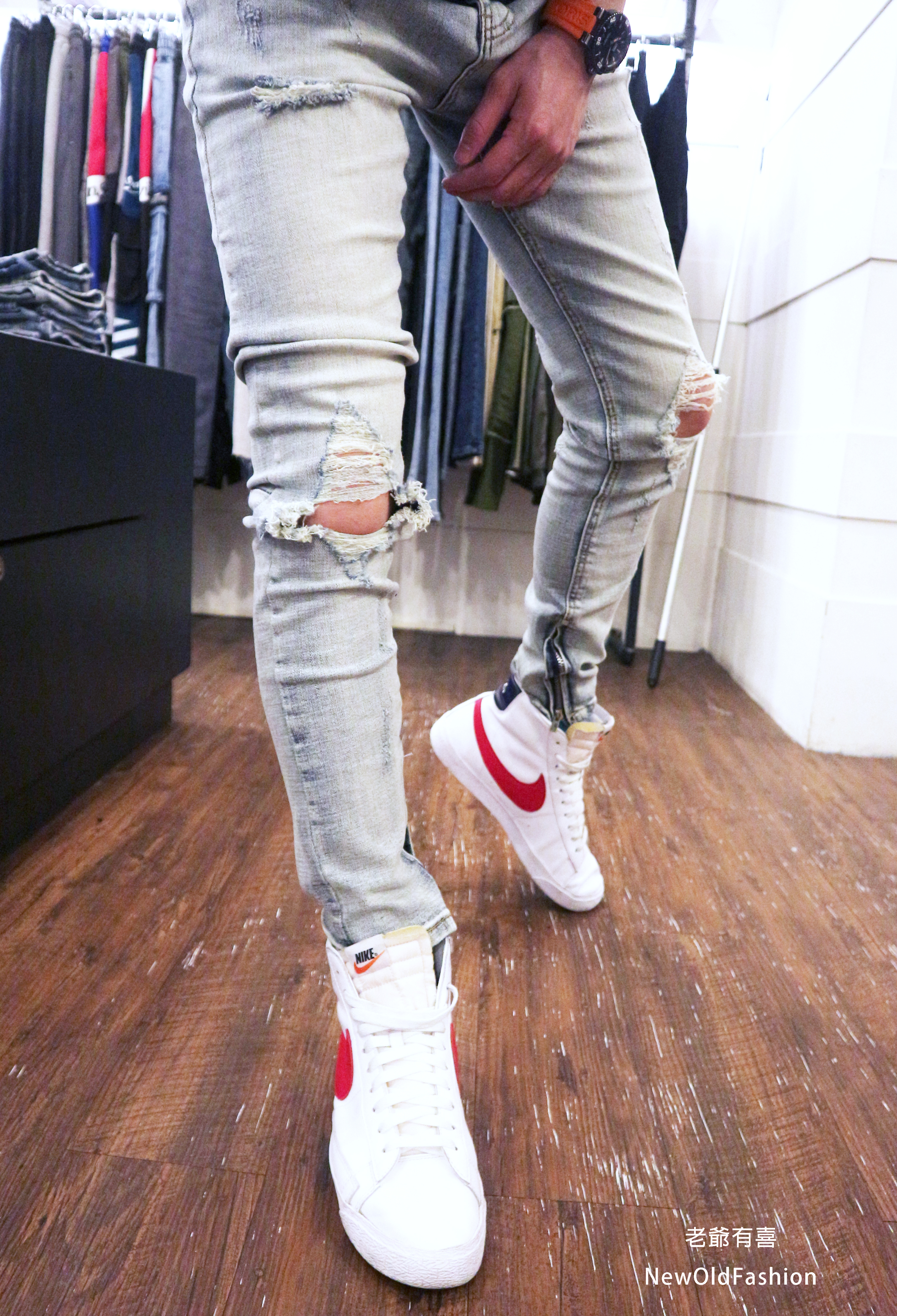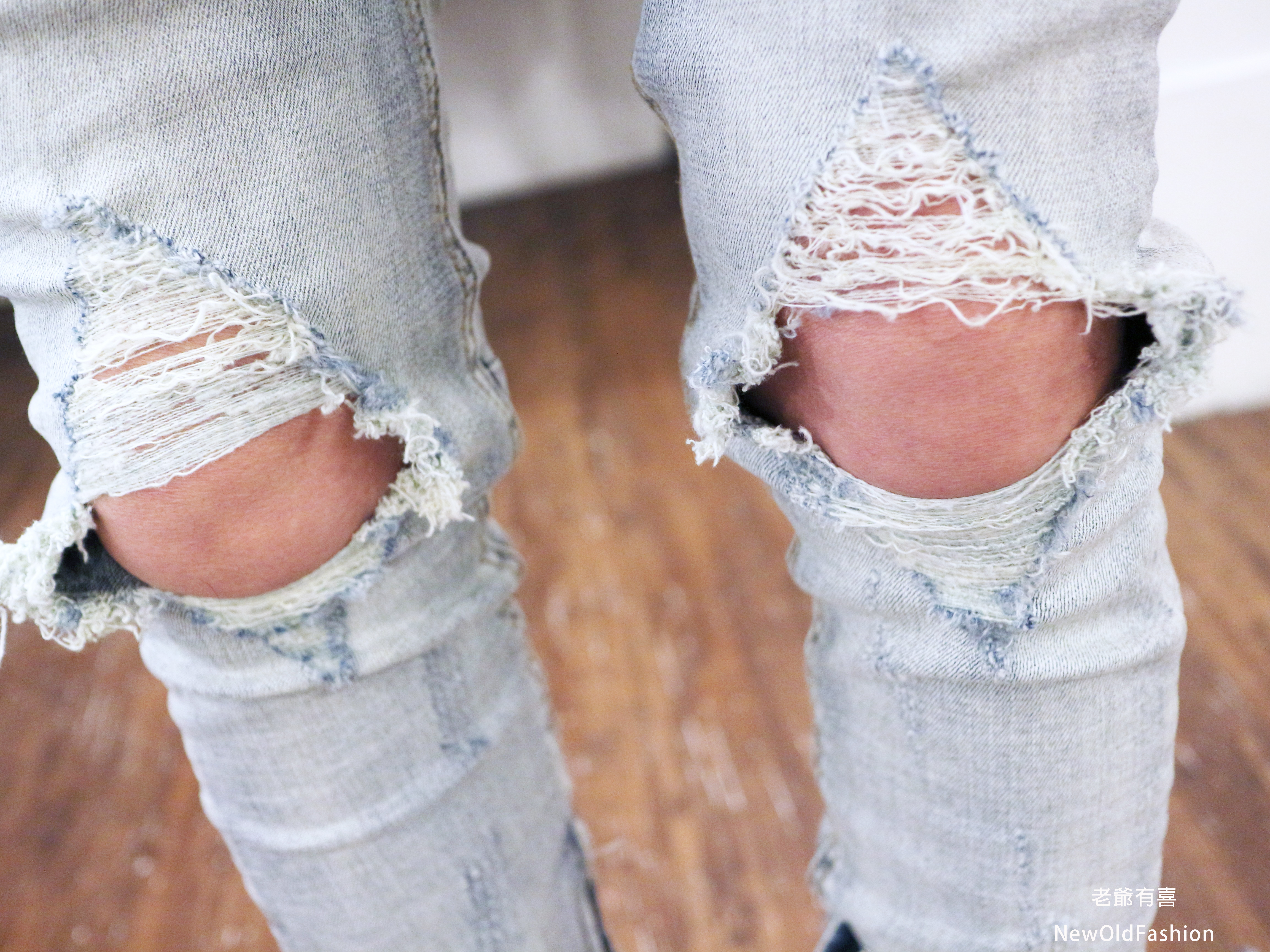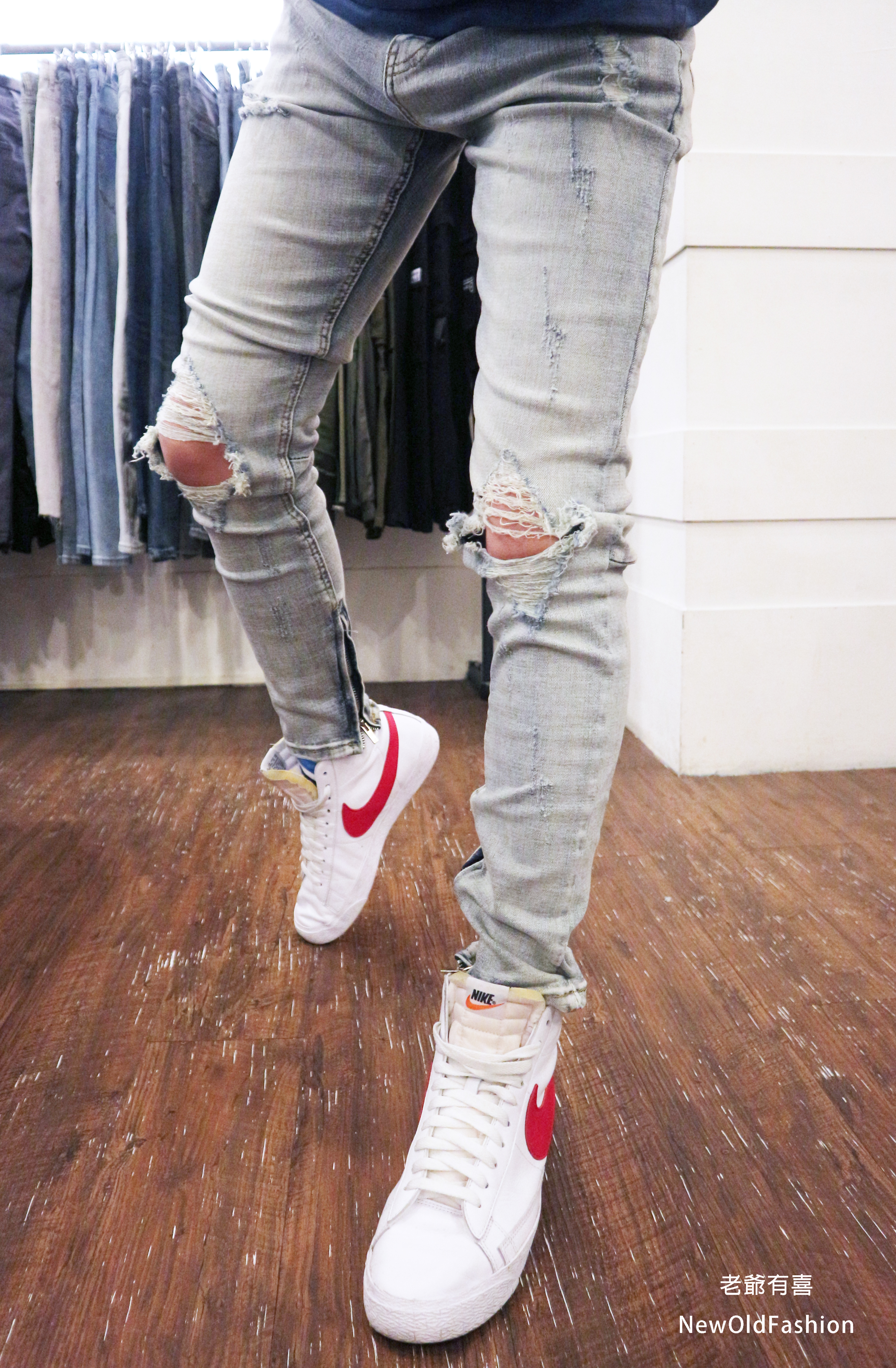重磅雙膝重度破壞側拉鍊牛仔褲