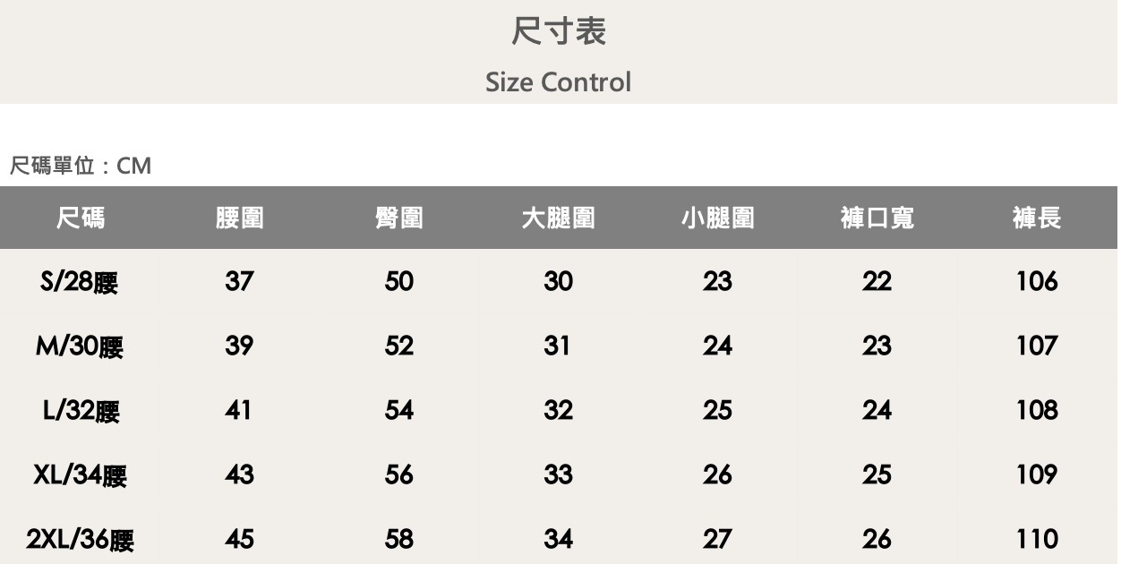 五個尺寸(S、M、L、XL、XXL)