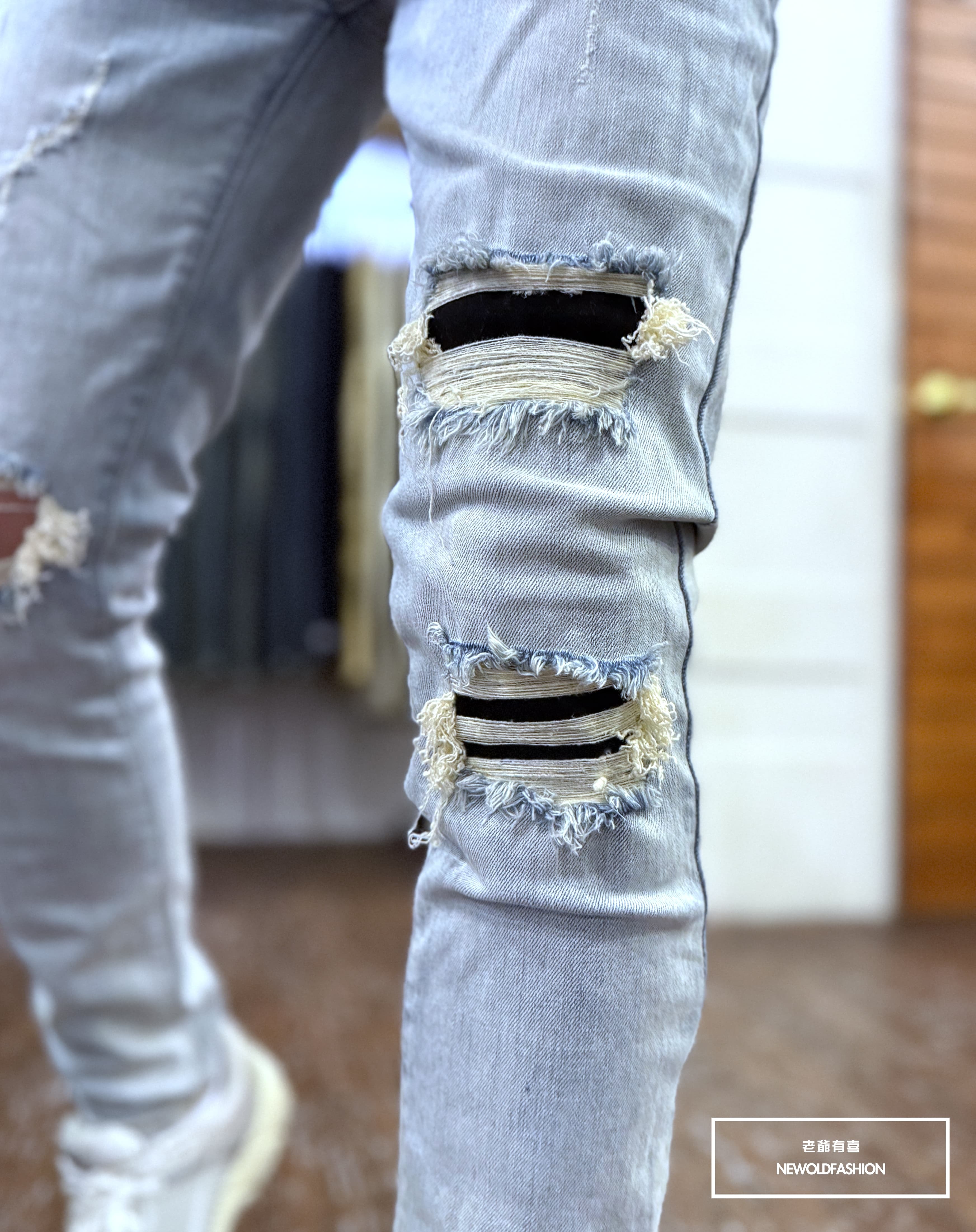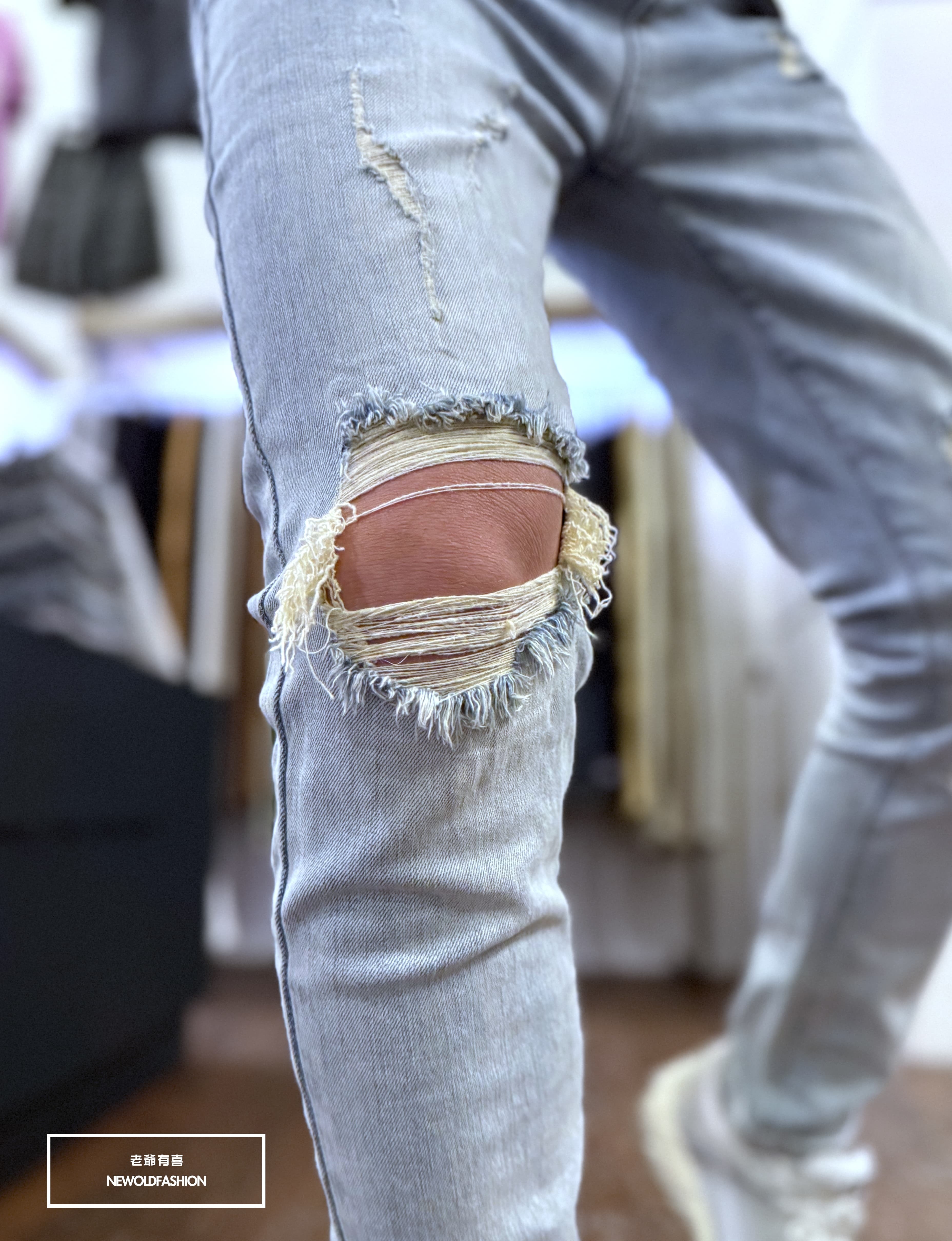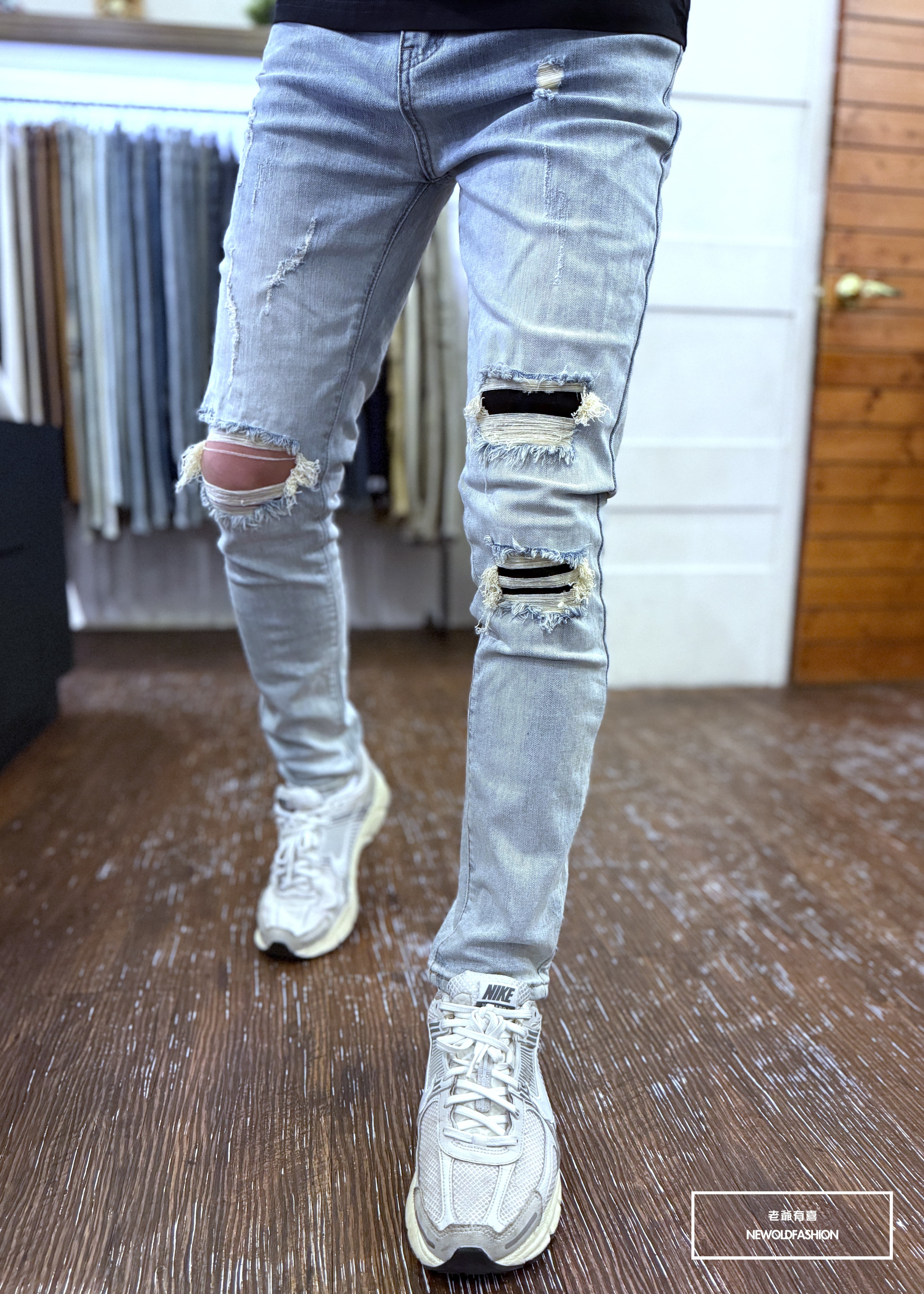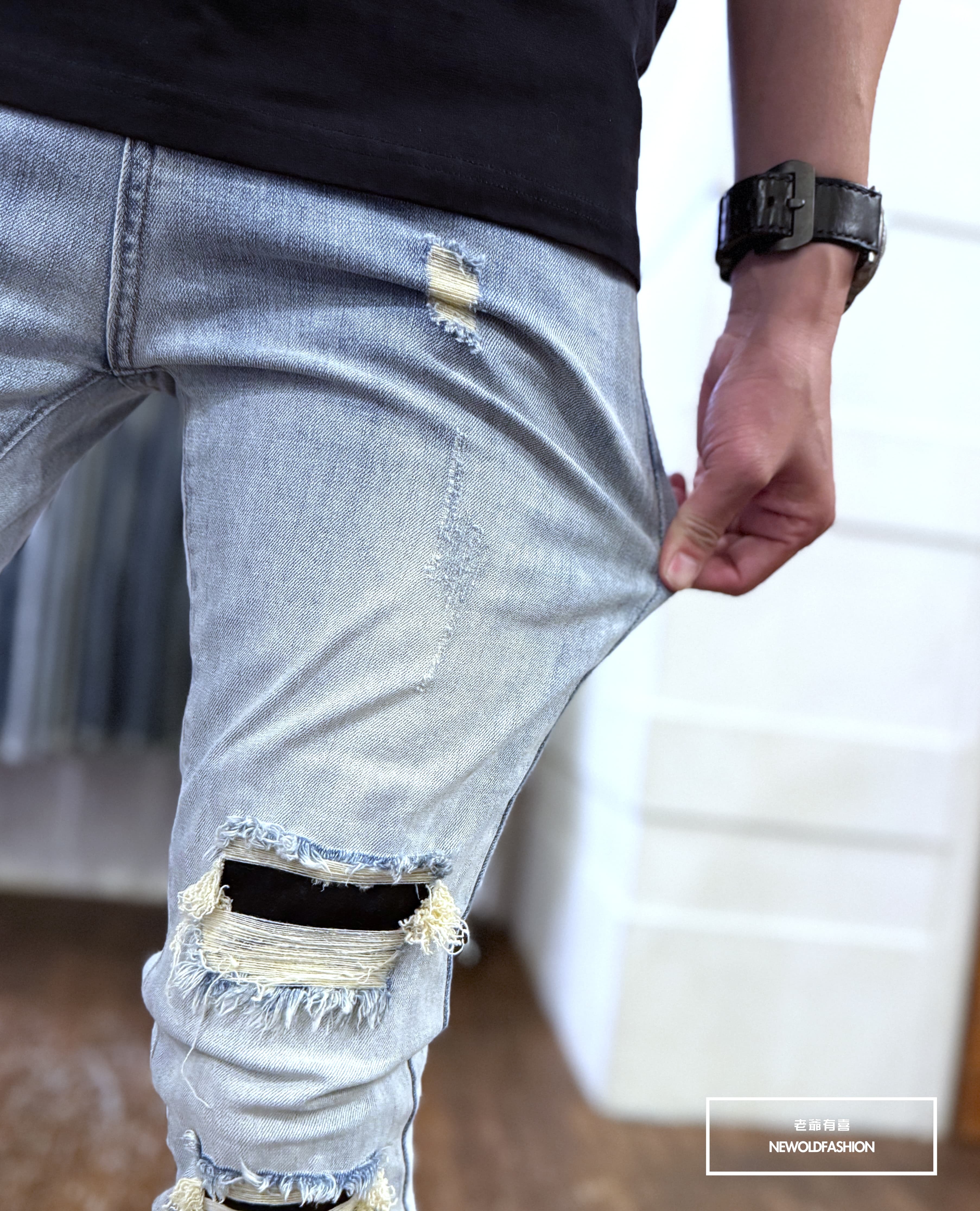 水洗淺刷白單膝破壞貓抓造型!