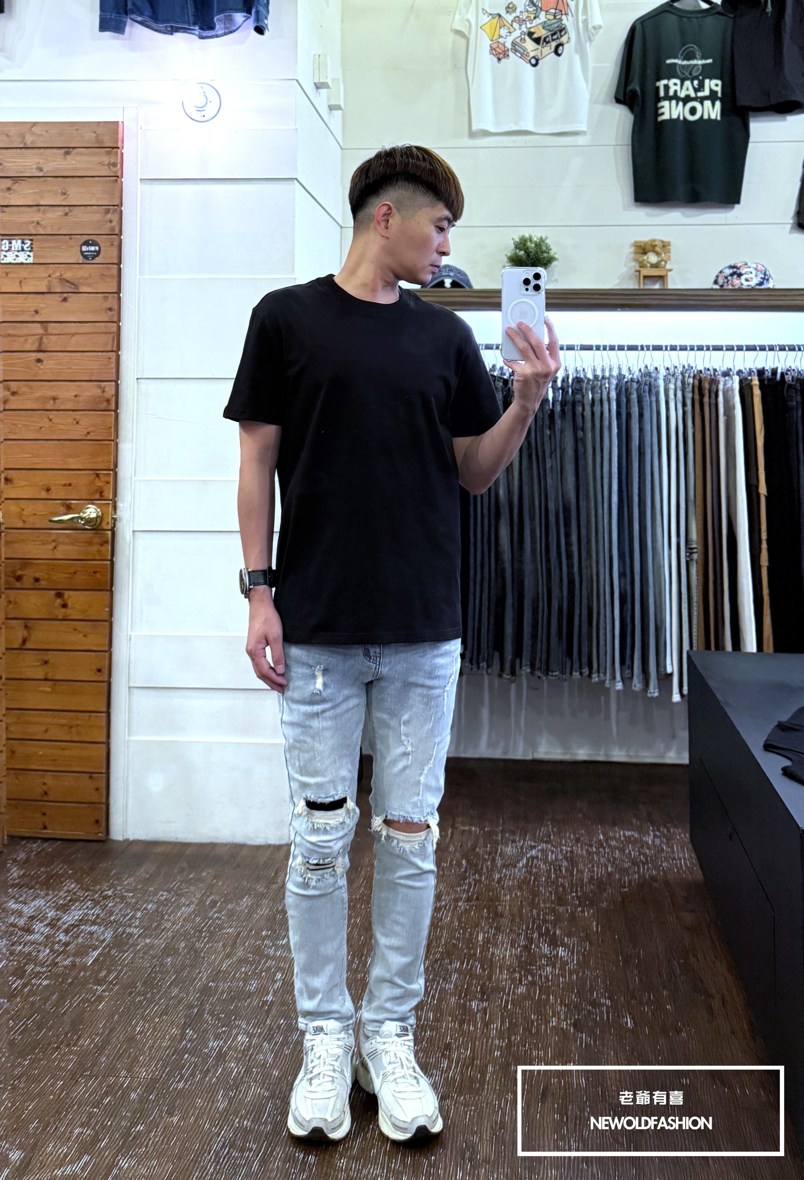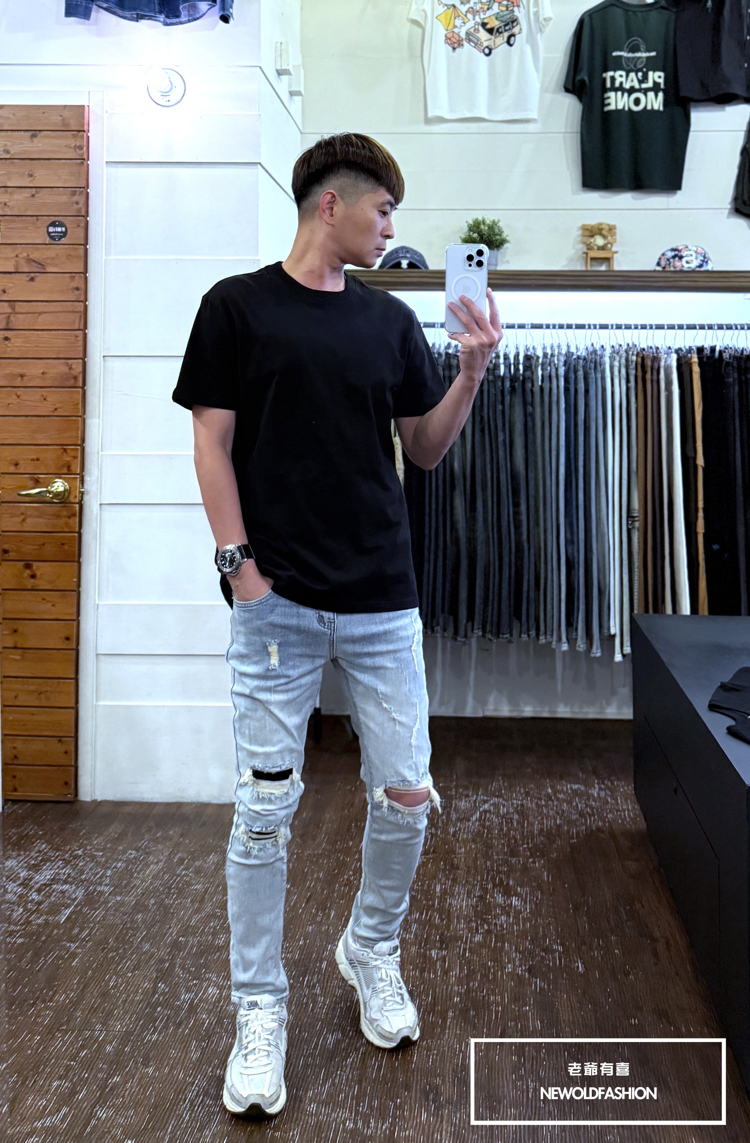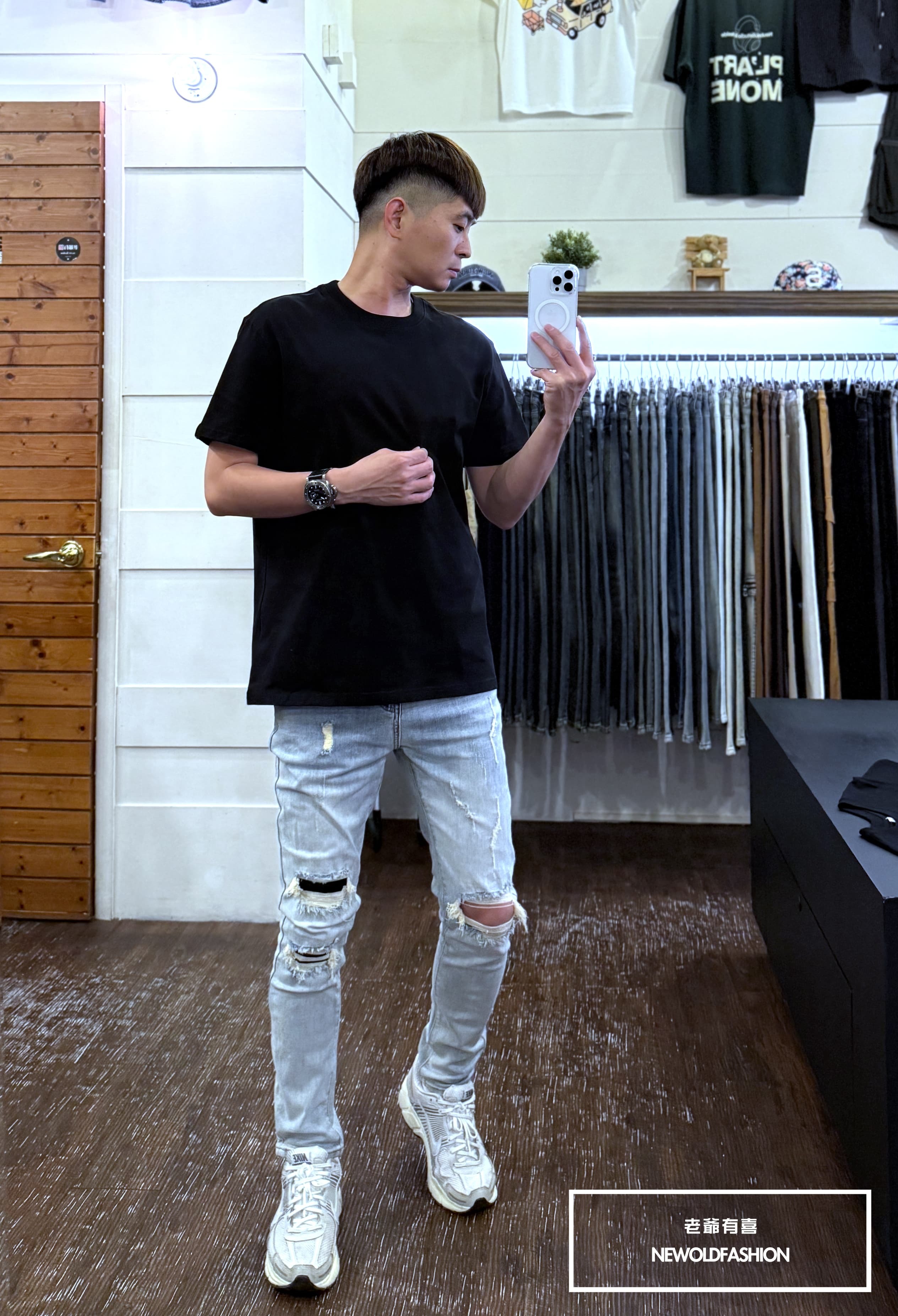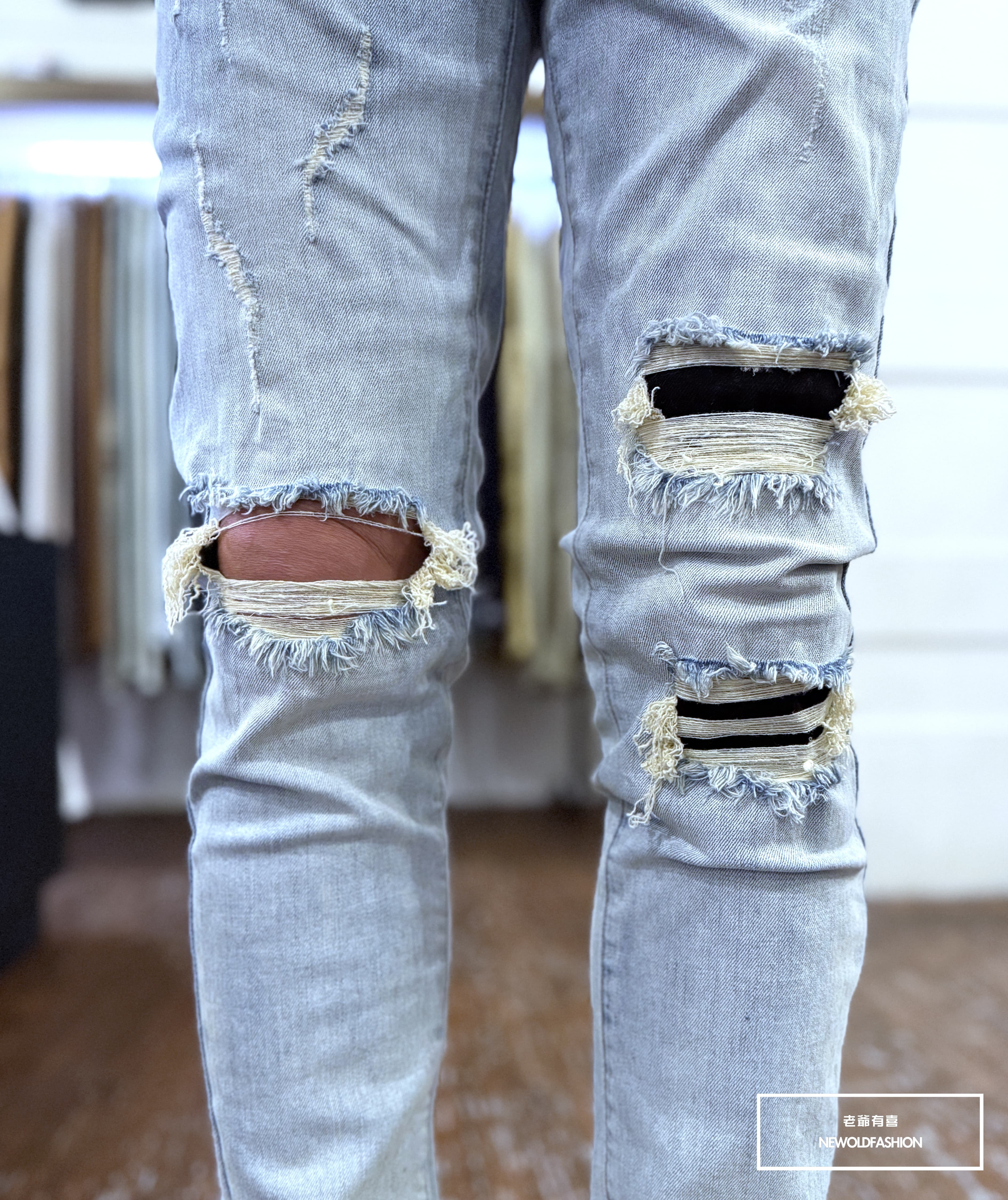 水洗淺刷白單膝破壞貓抓造型!