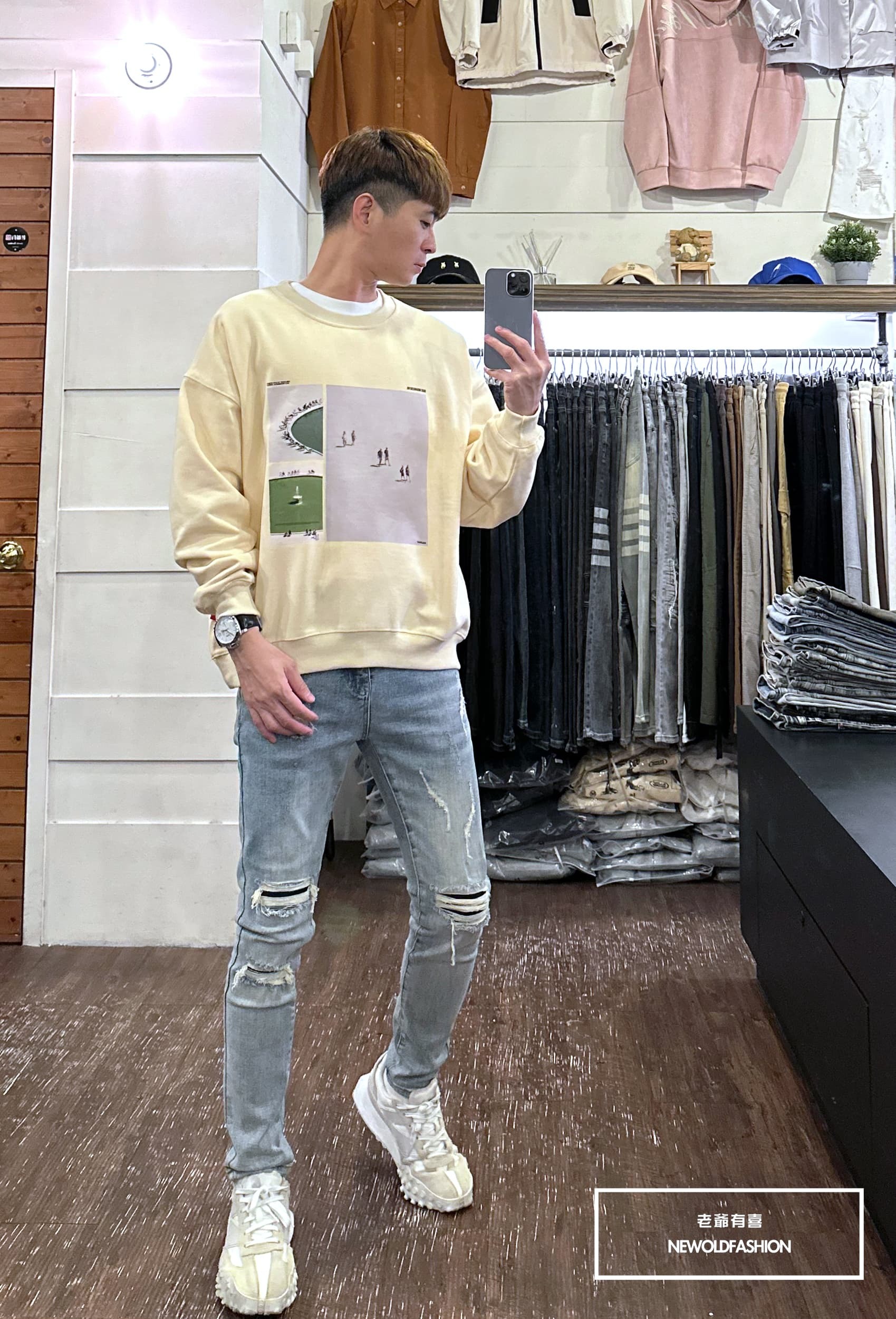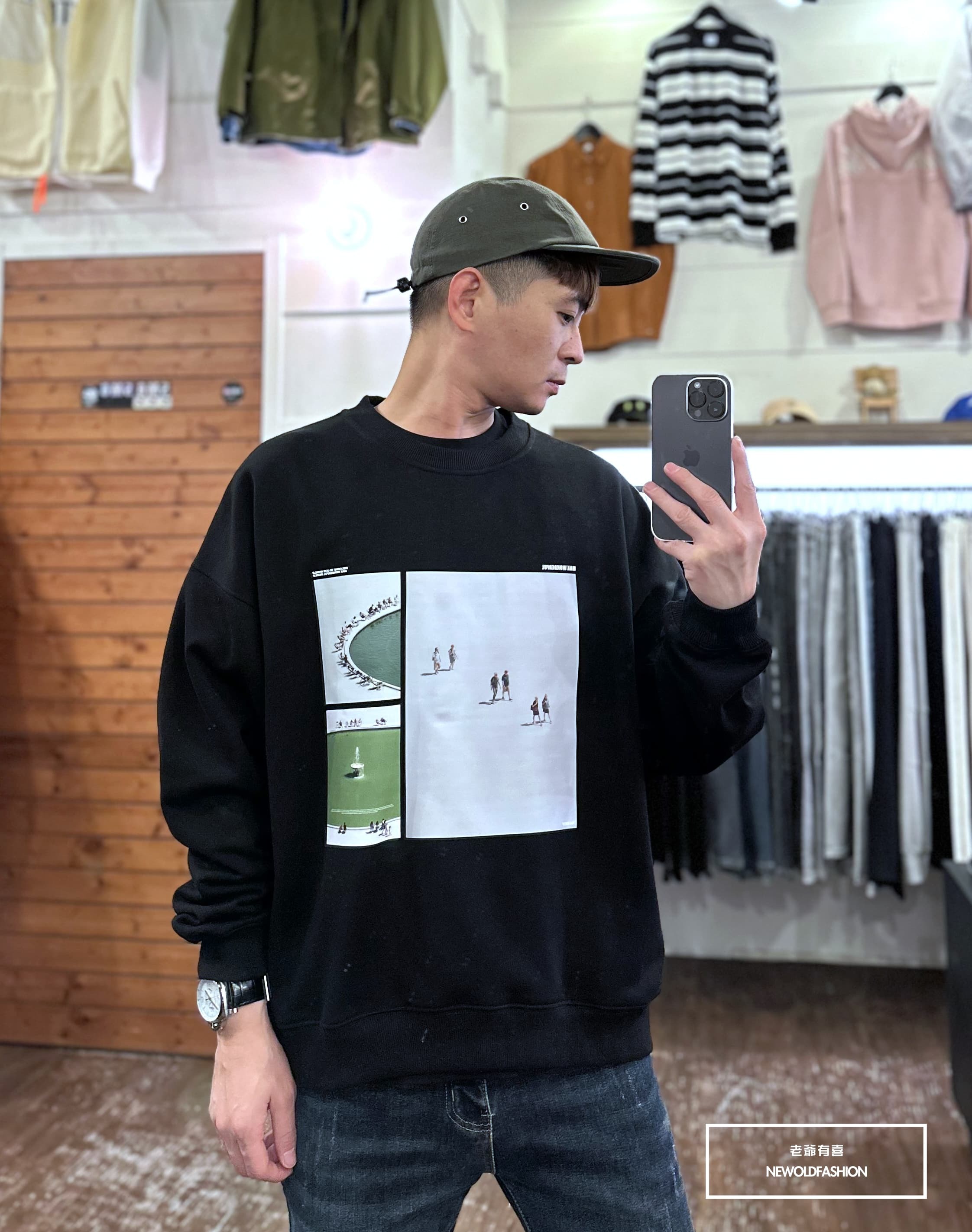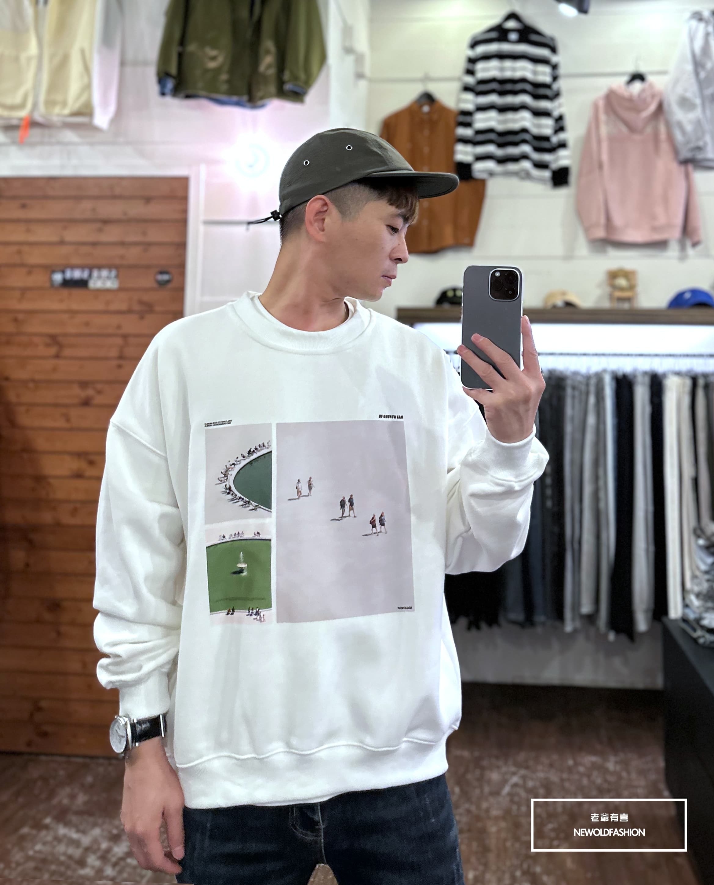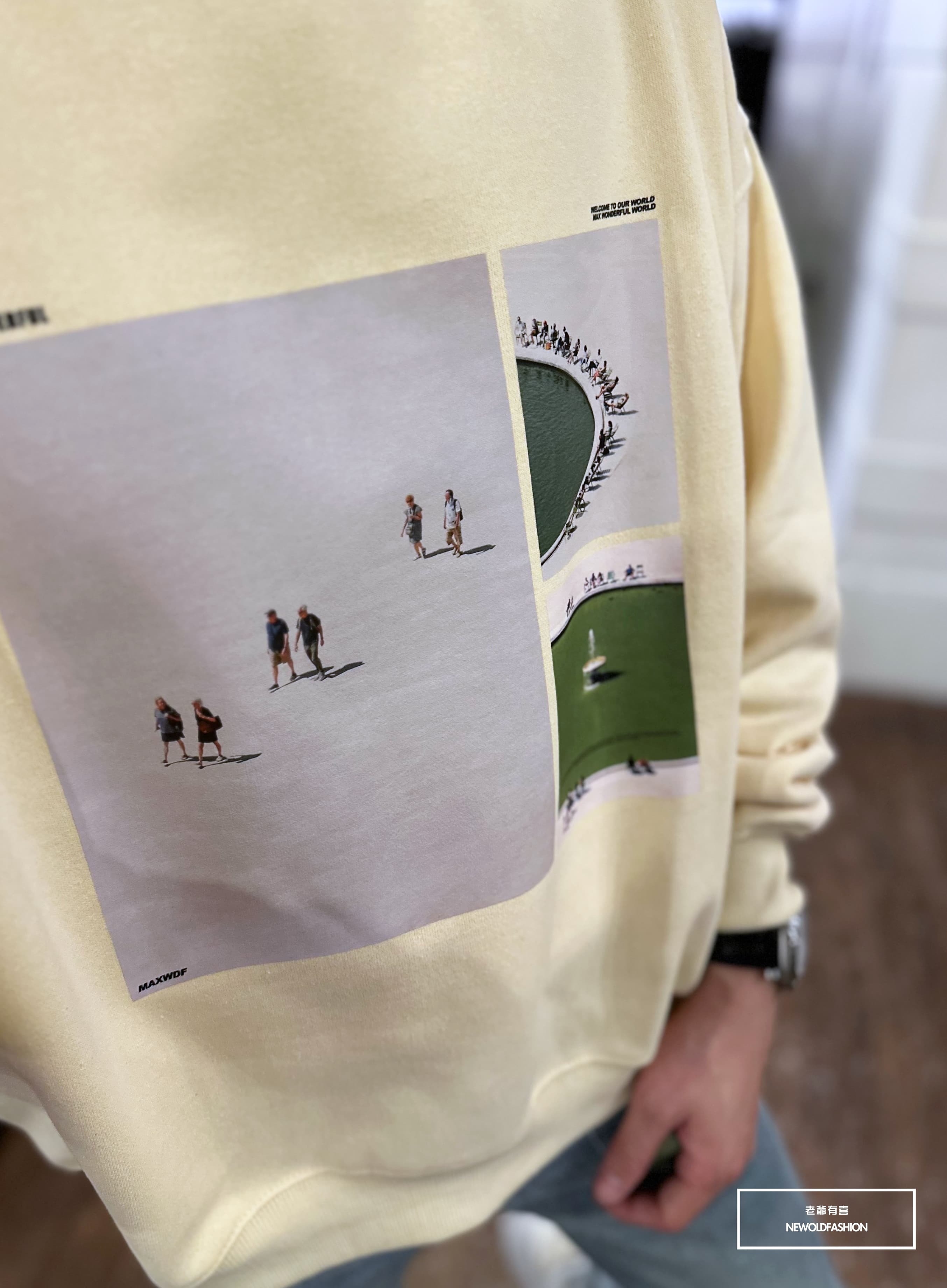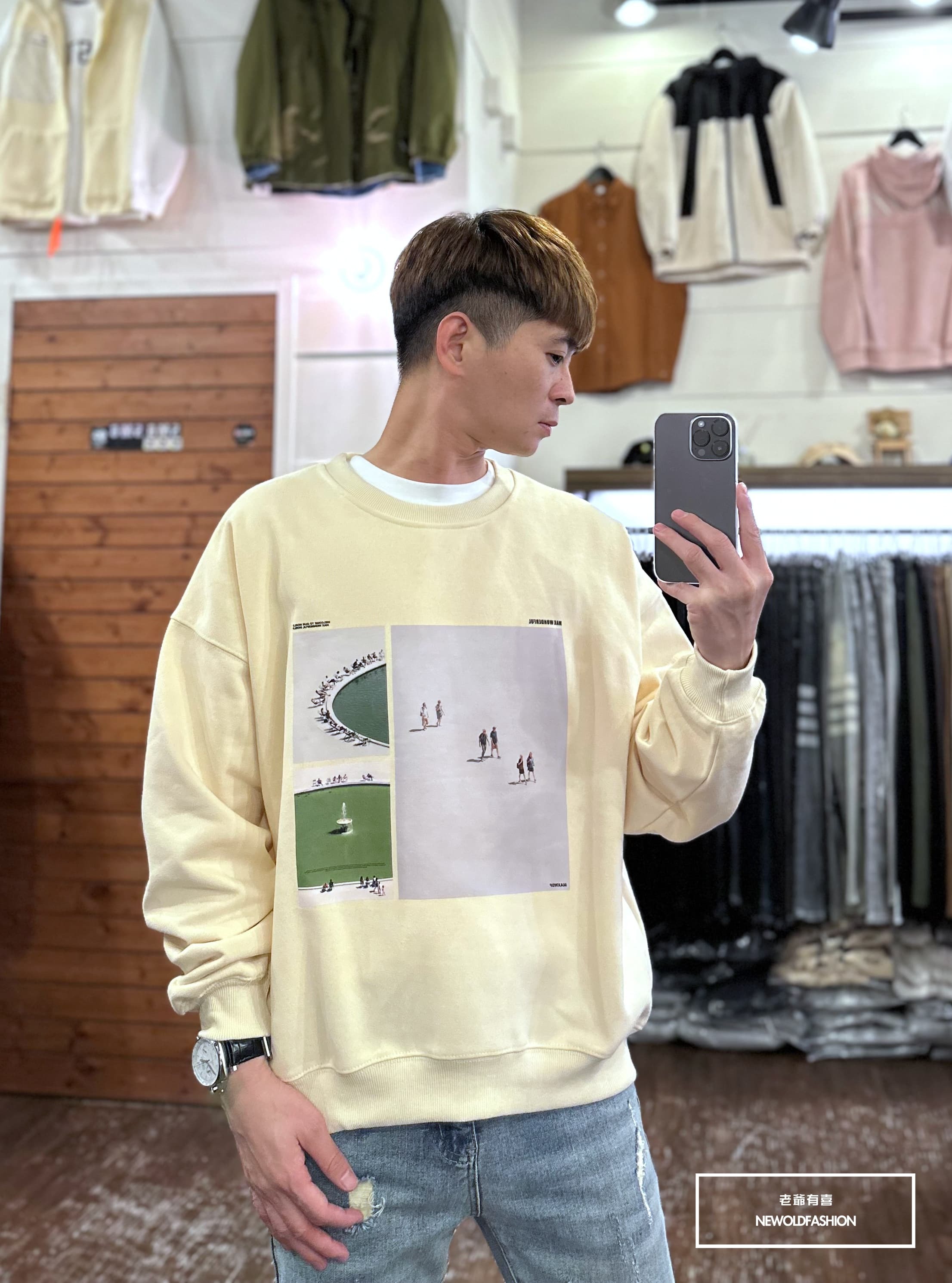 『新品上市』重磅噴泉拼圖刷毛大學T-米(NOF2311F002)