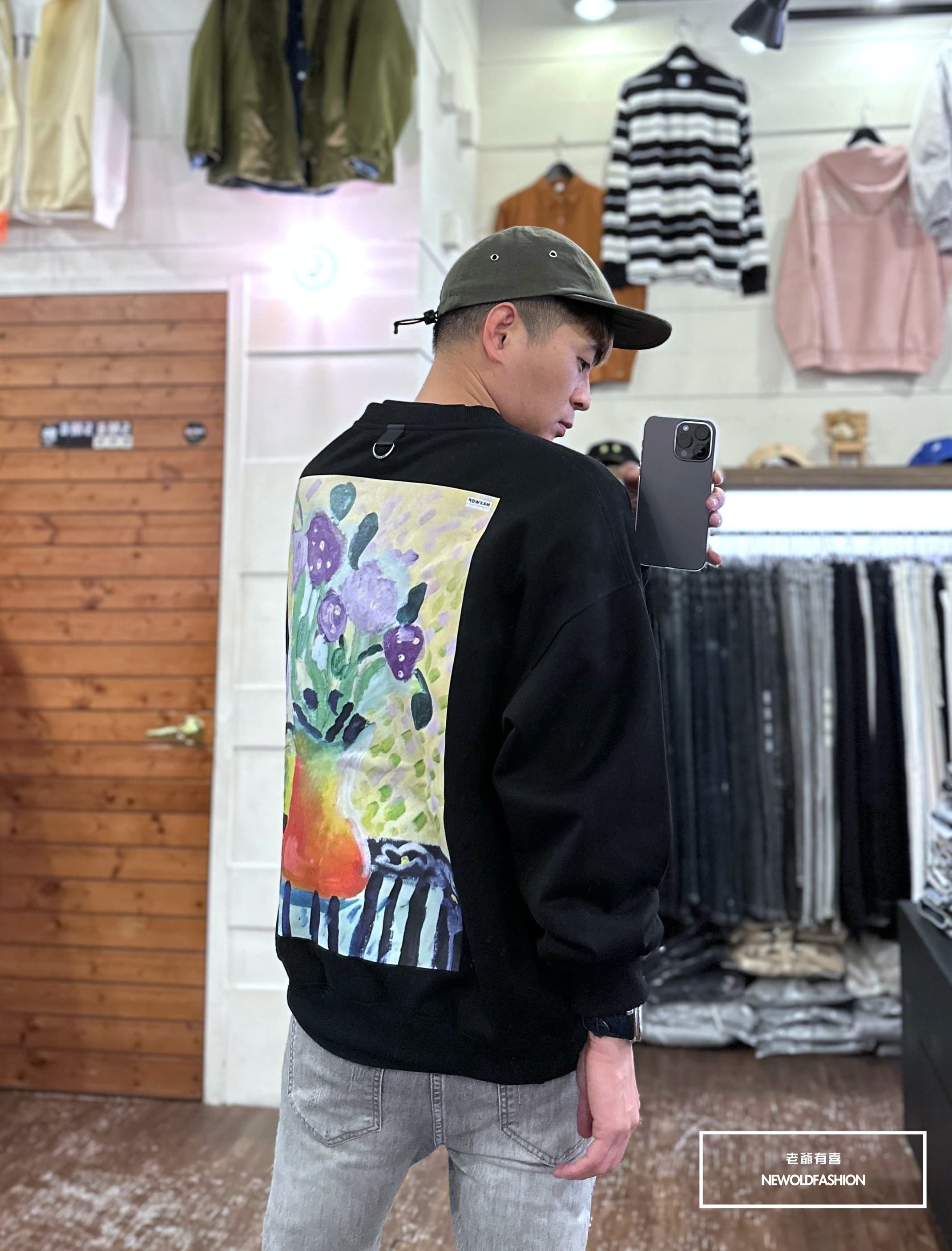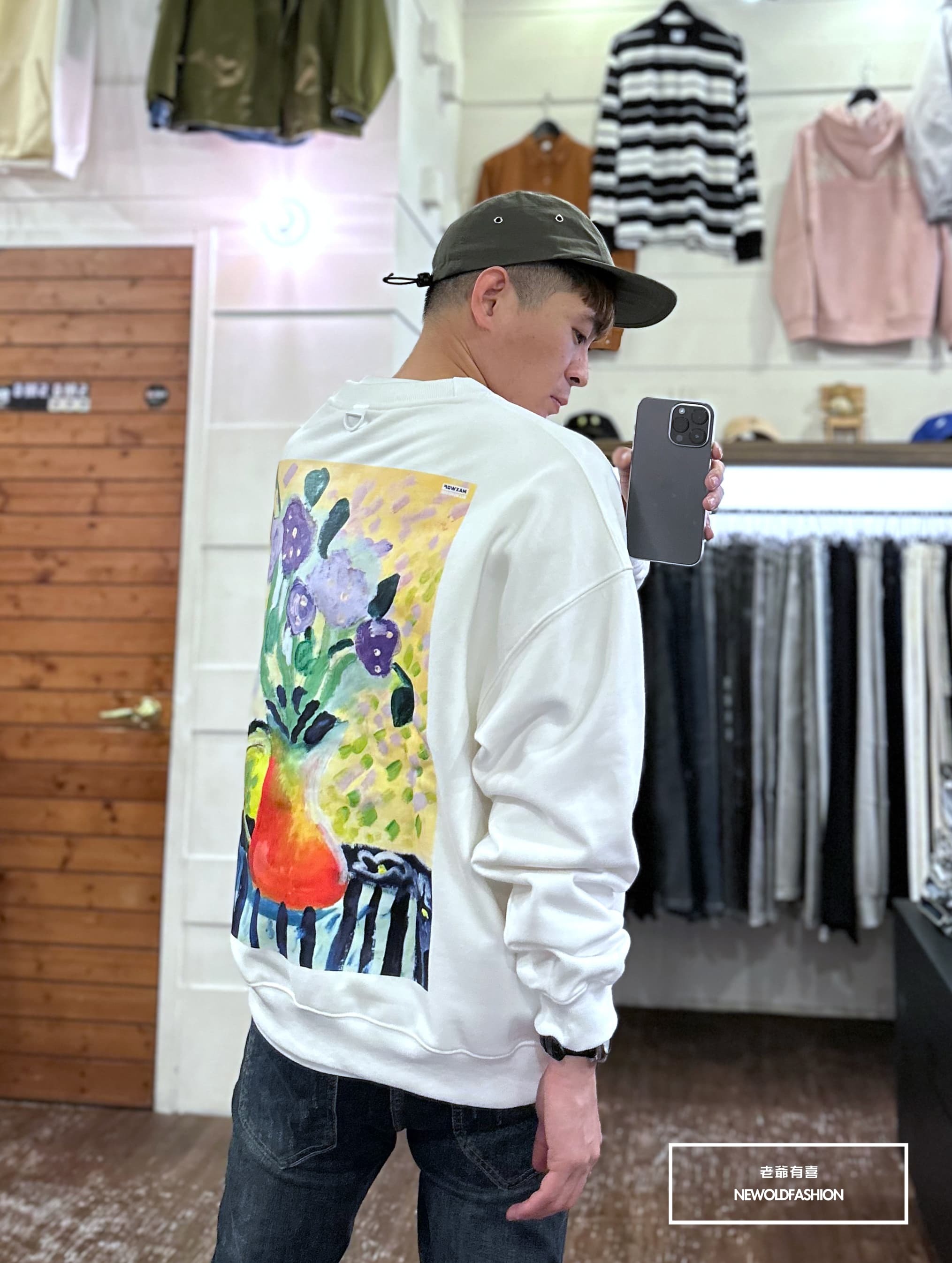 『新品上市』重磅花景油畫刷毛大學T-白(NOF2311F005)