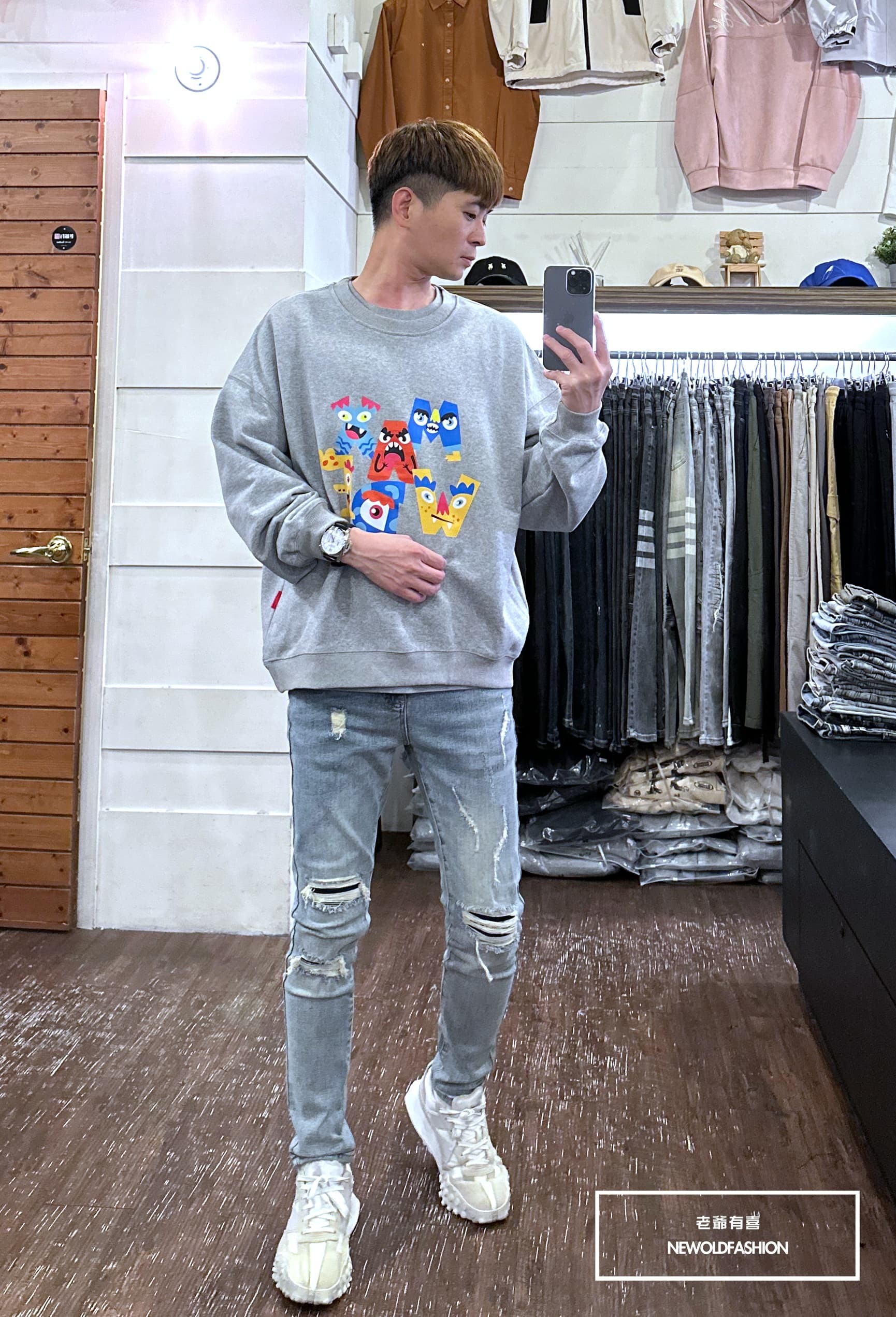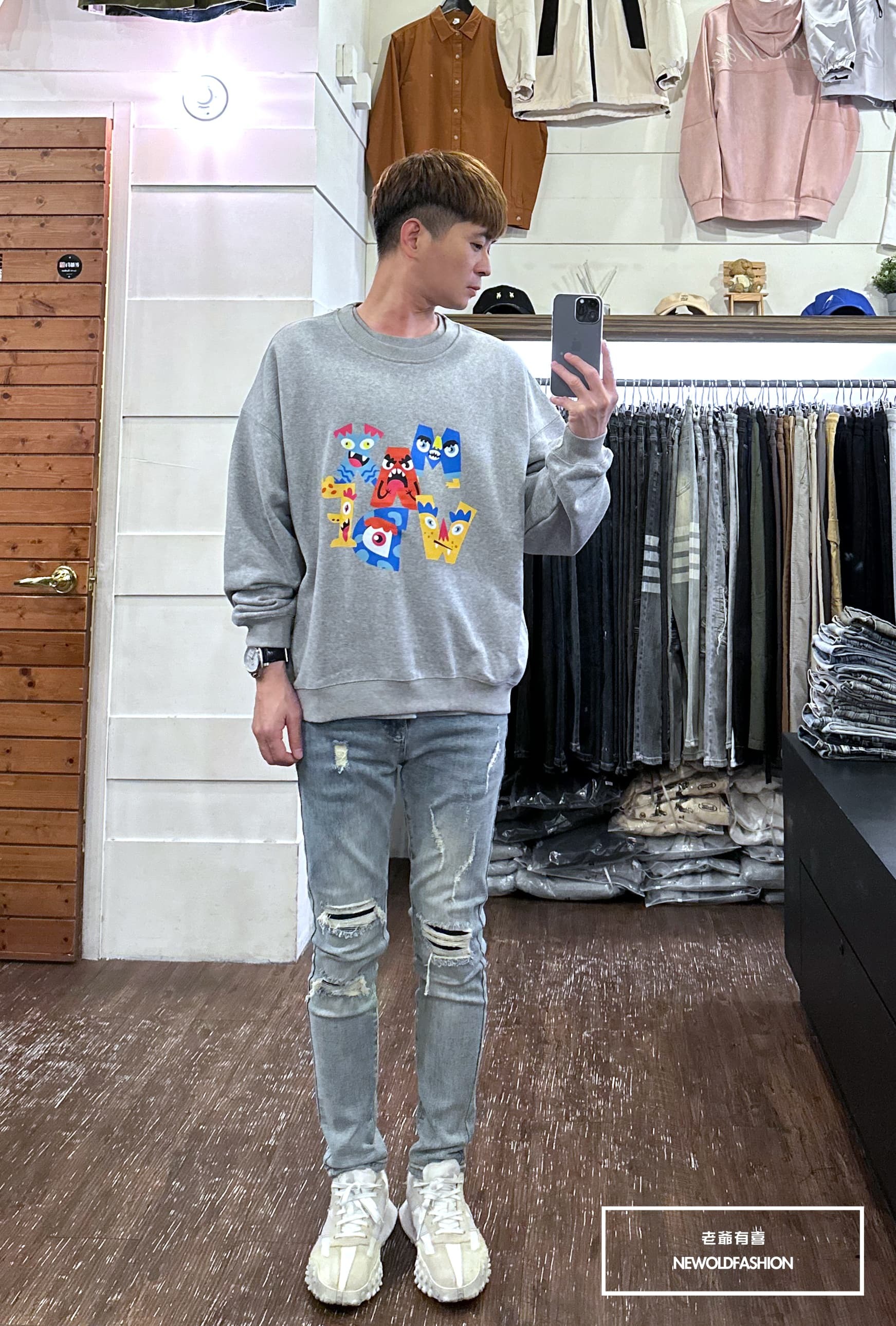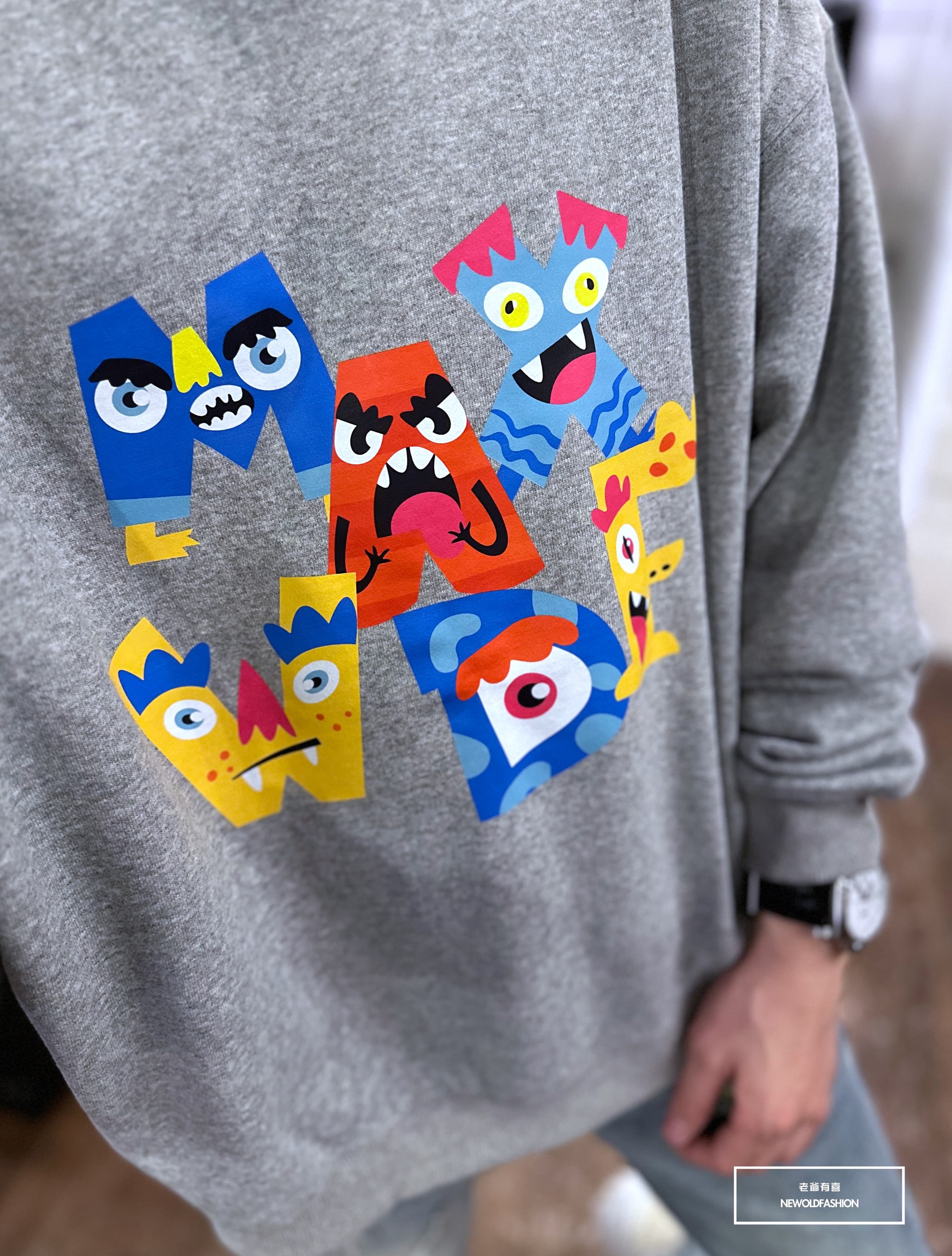 『新品上市』重磅彩色字母怪獸刷毛大學T-淺灰(NOF2311F006)