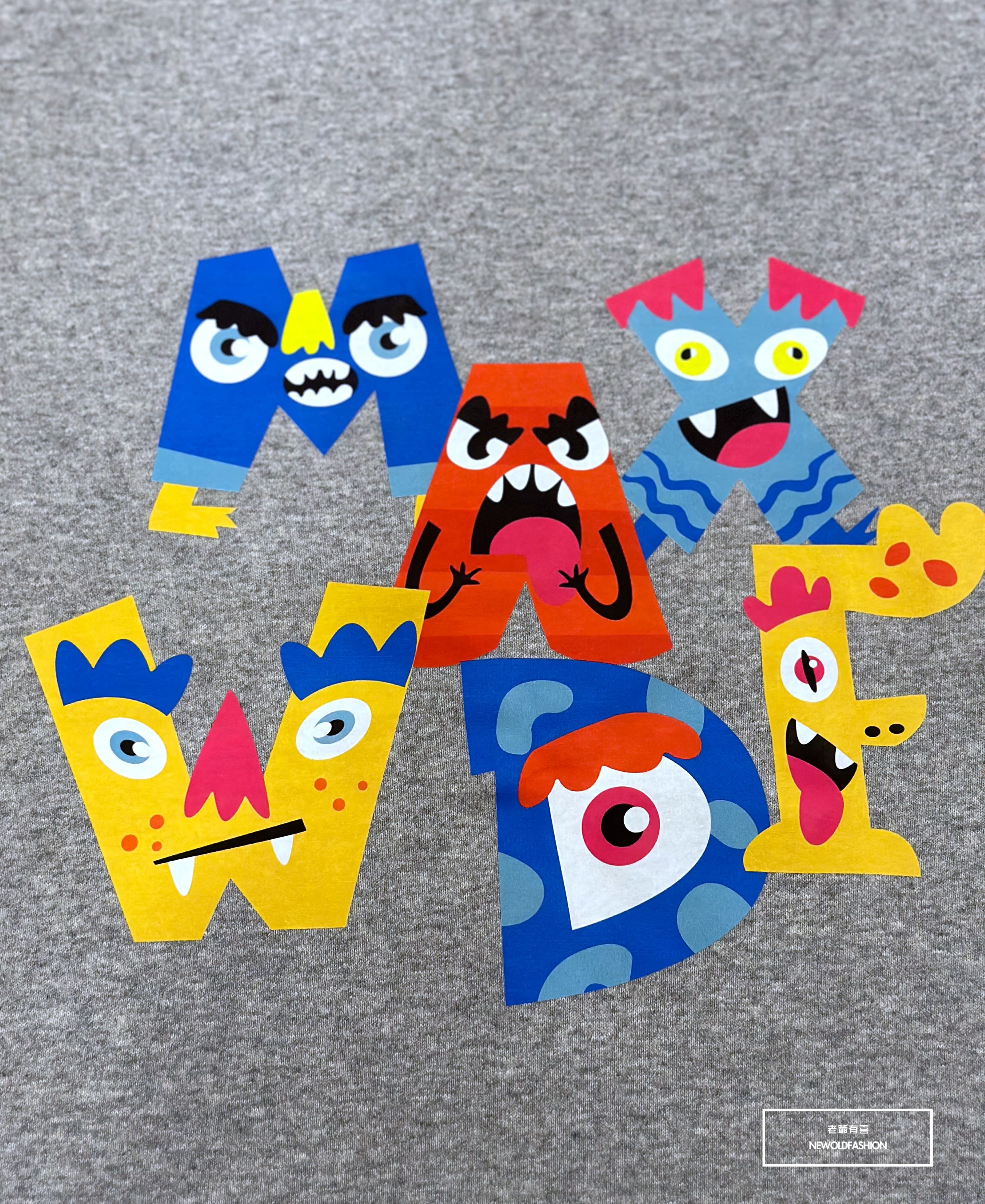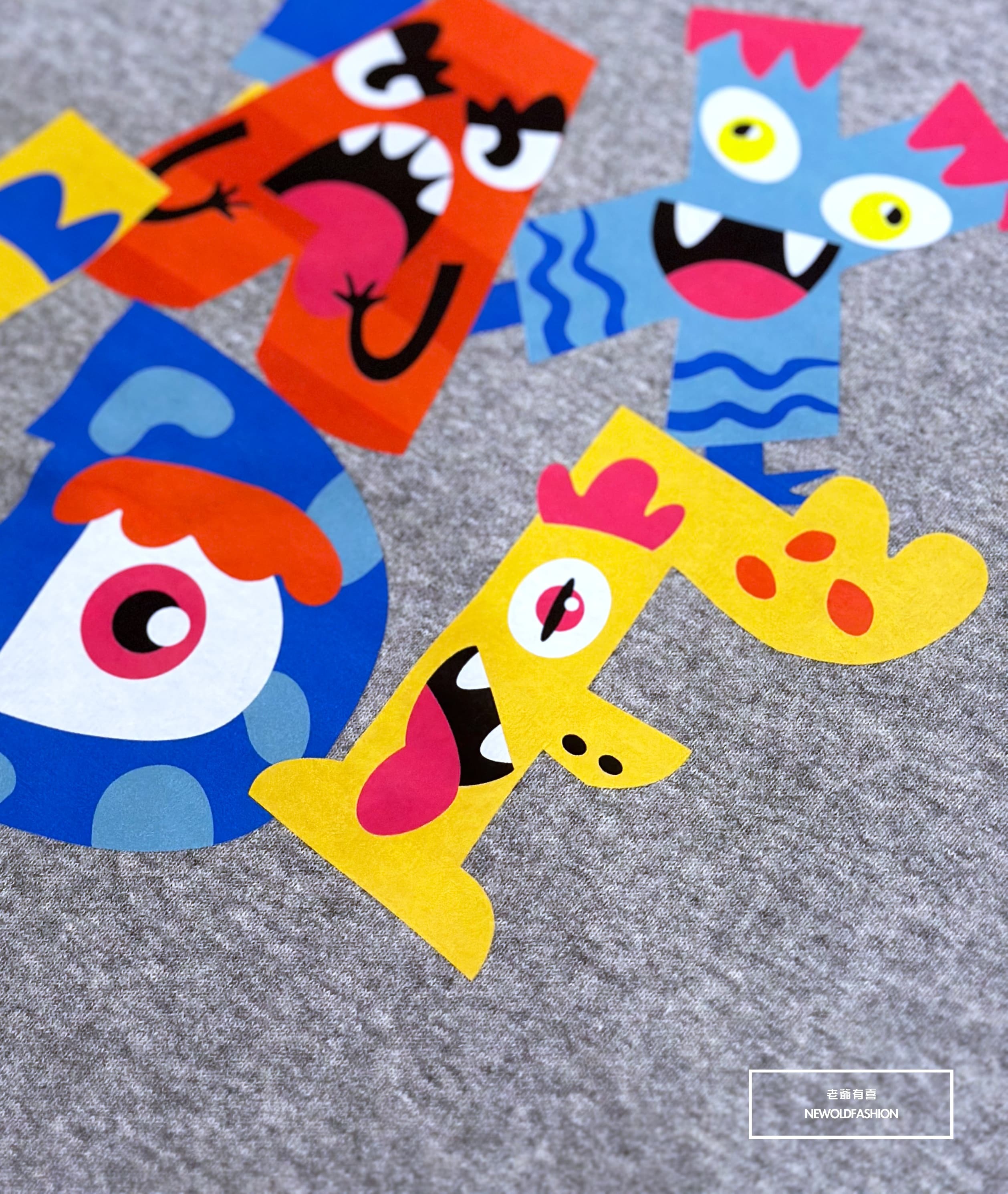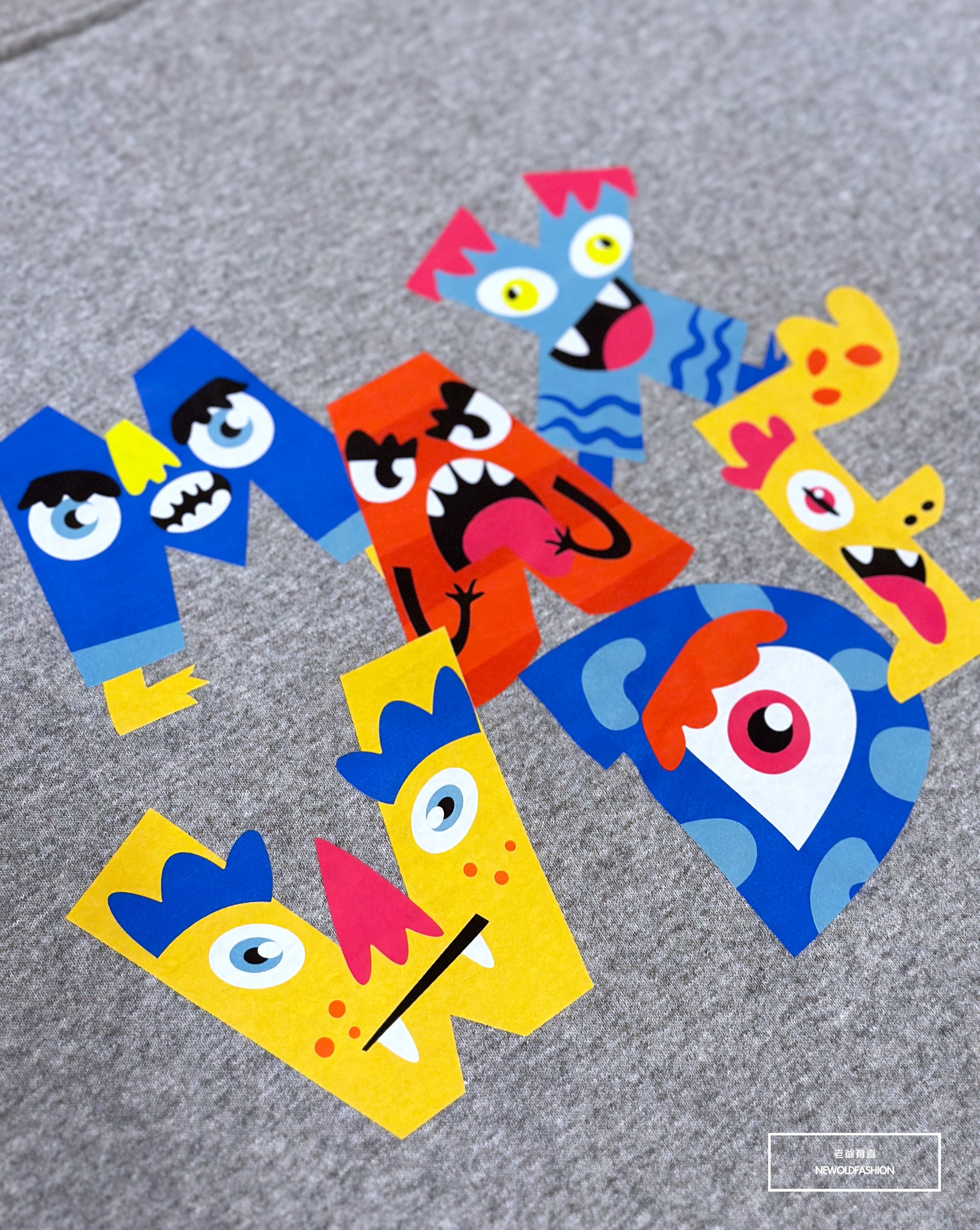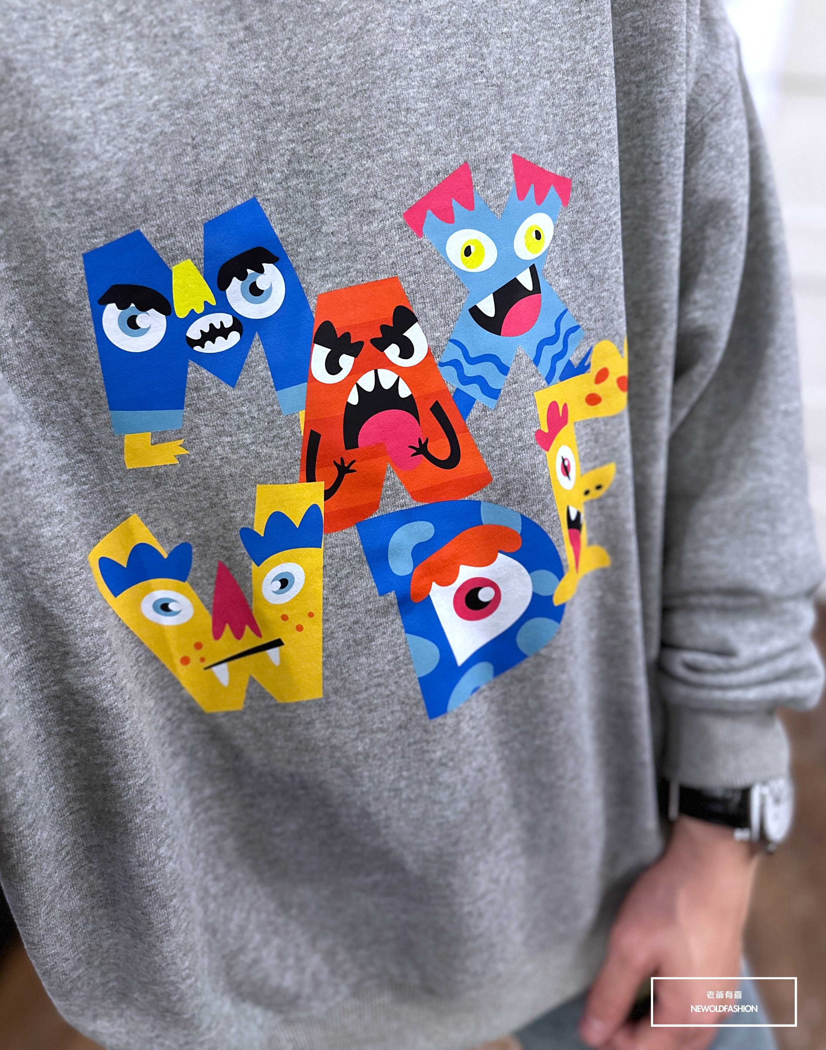 『新品上市』重磅彩色字母怪獸刷毛大學T-淺灰(NOF2311F006)