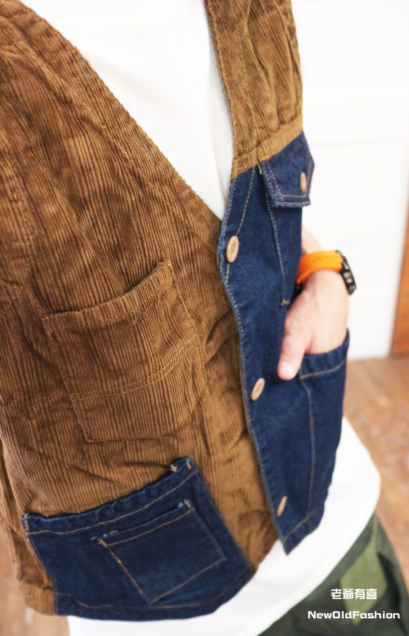 『新品上市』拼接絨布牛仔背心(NOF2009PL209)