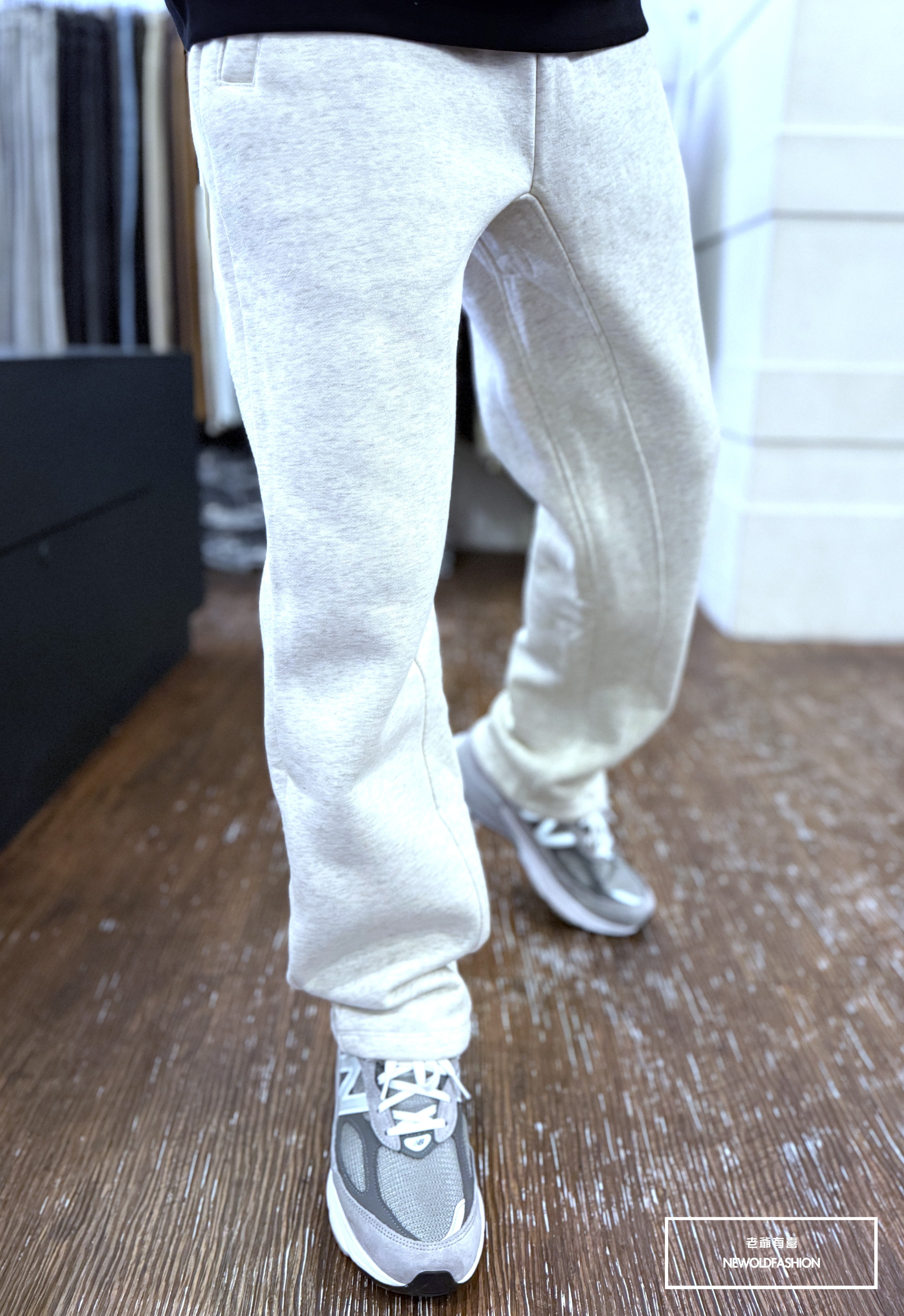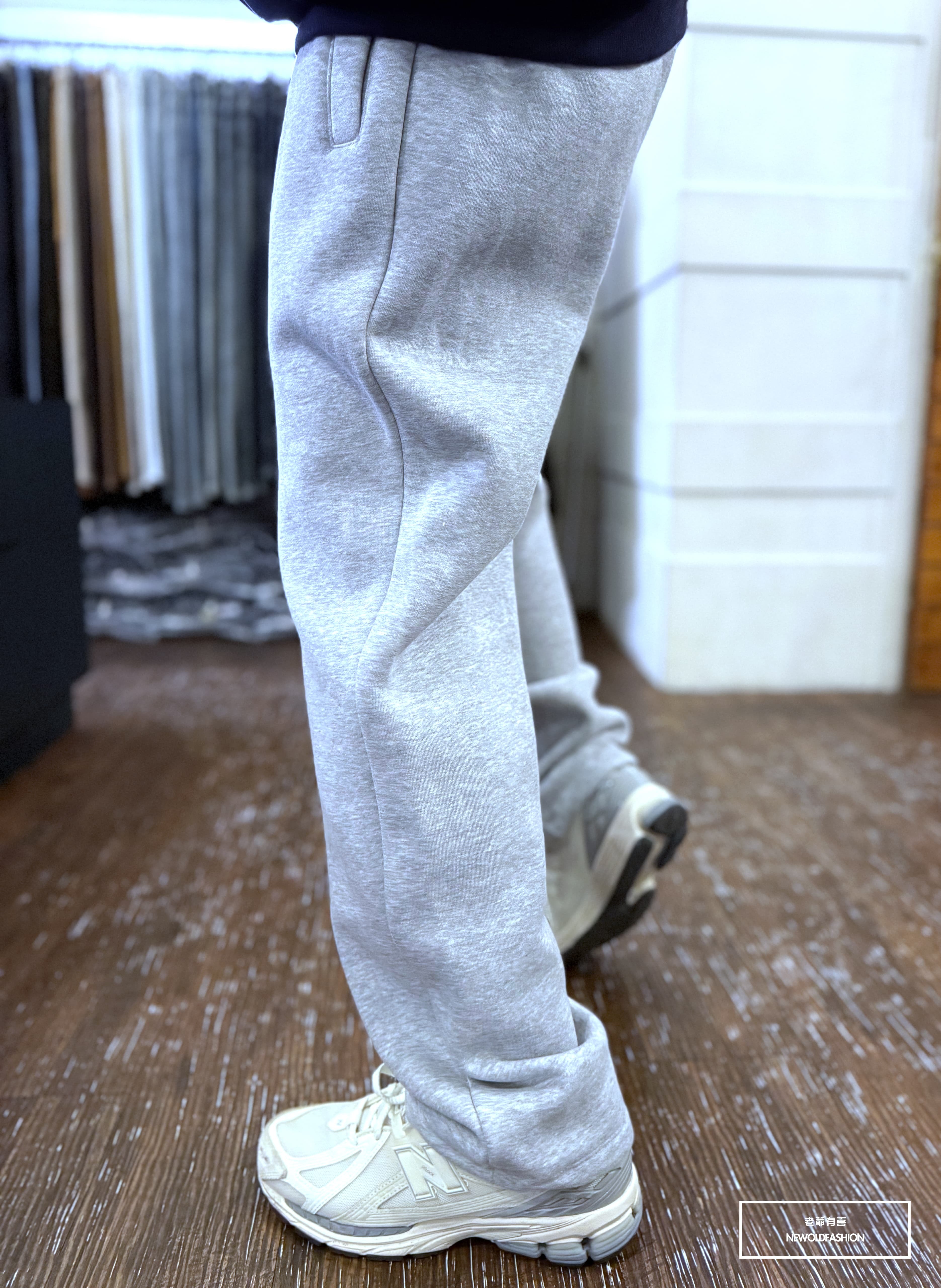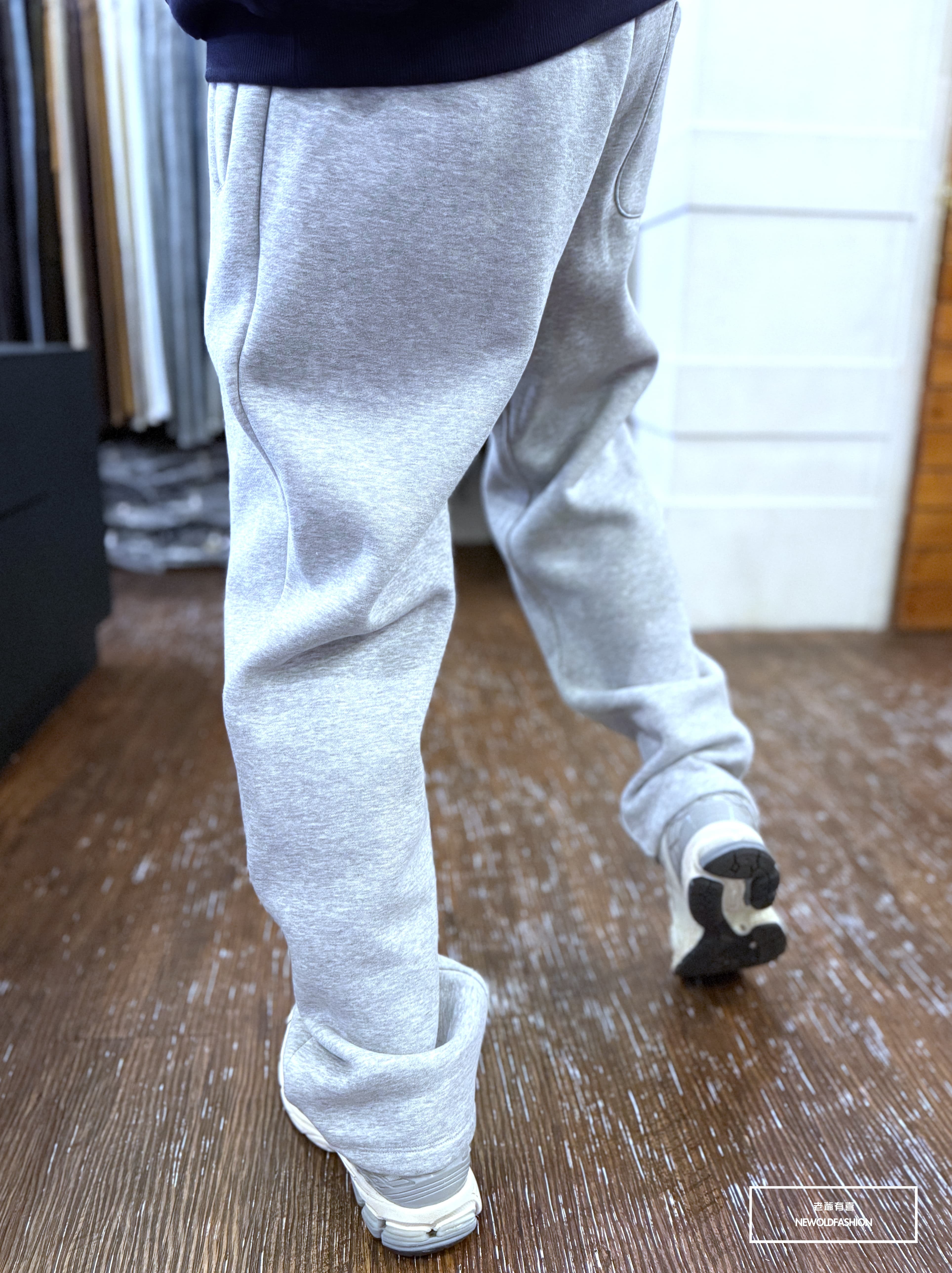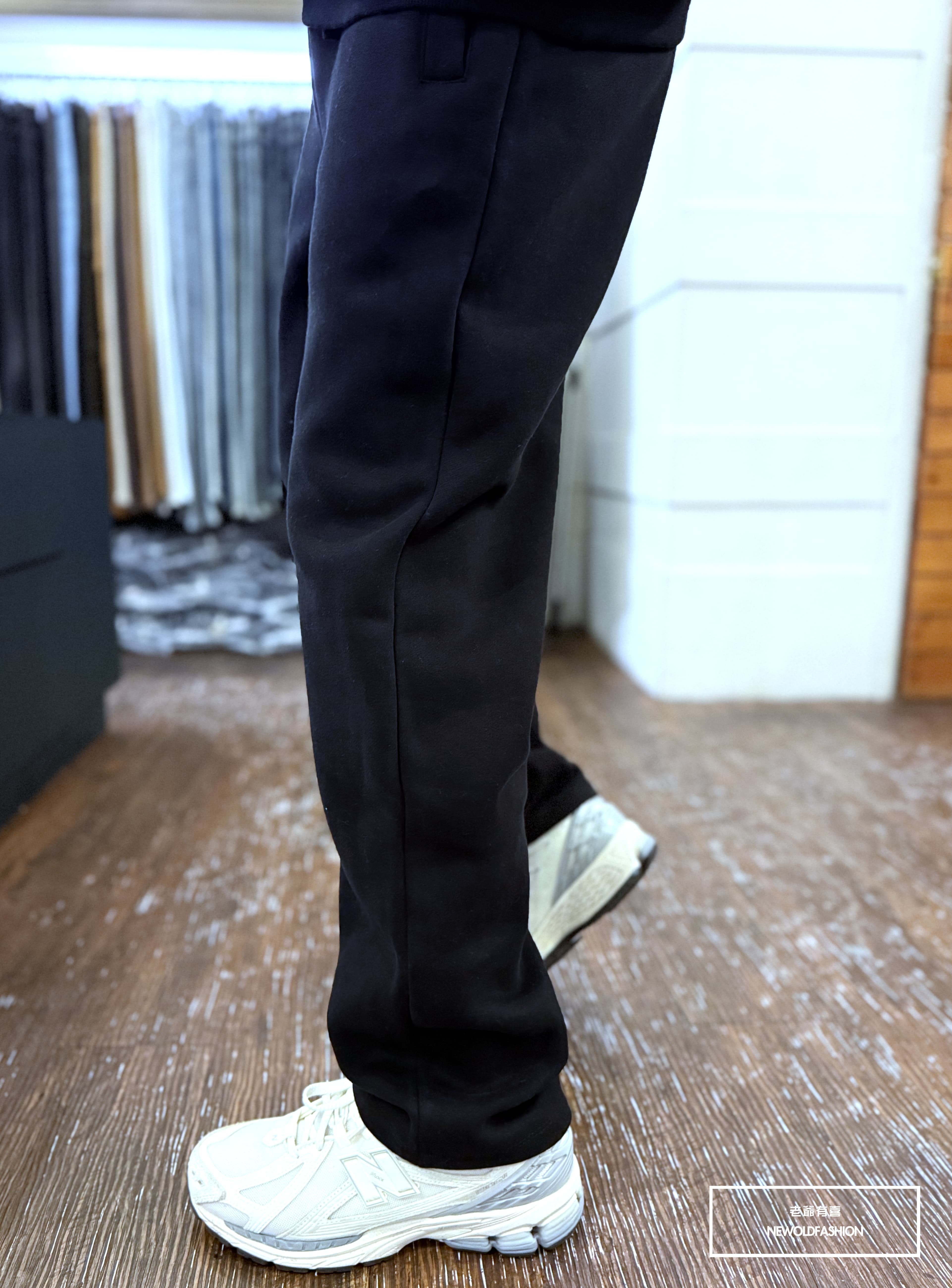 『新品上市』重磅立體線條抽繩刷毛棉寬褲(NOF2510K2408)-黑
