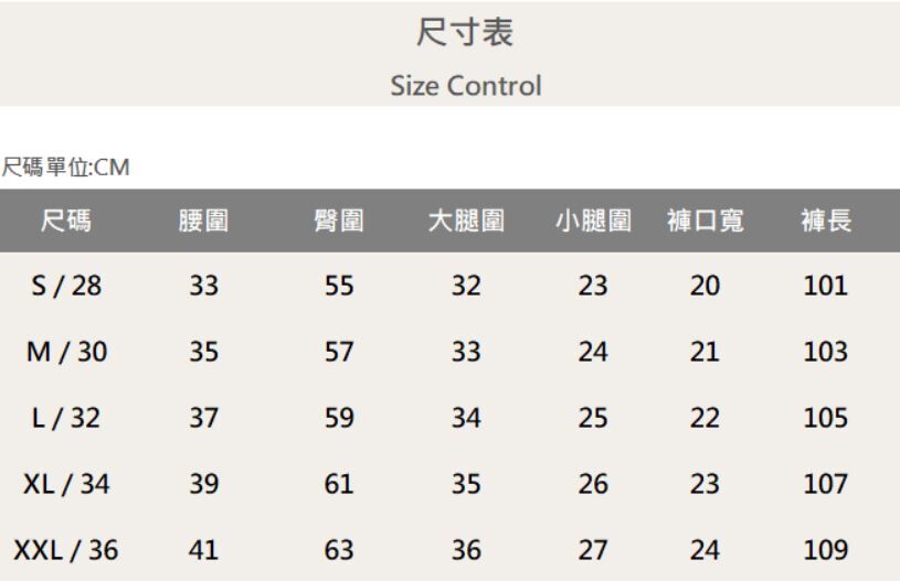 五個尺寸(SM、L、XL、XXL