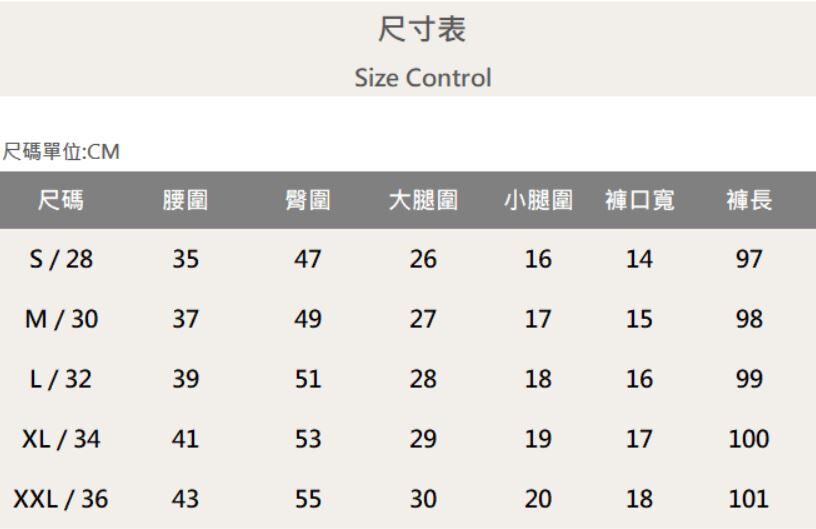 五個尺寸(S、M、L、XL、XXL)