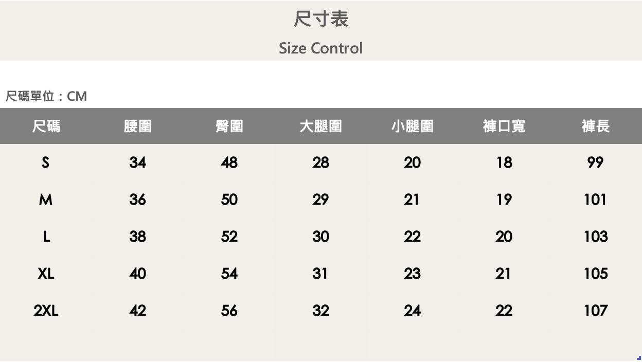 五個尺寸(S、M、L、XL、XXL)