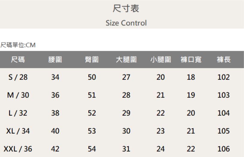 五個尺寸(S、M、L、XL、XXL)