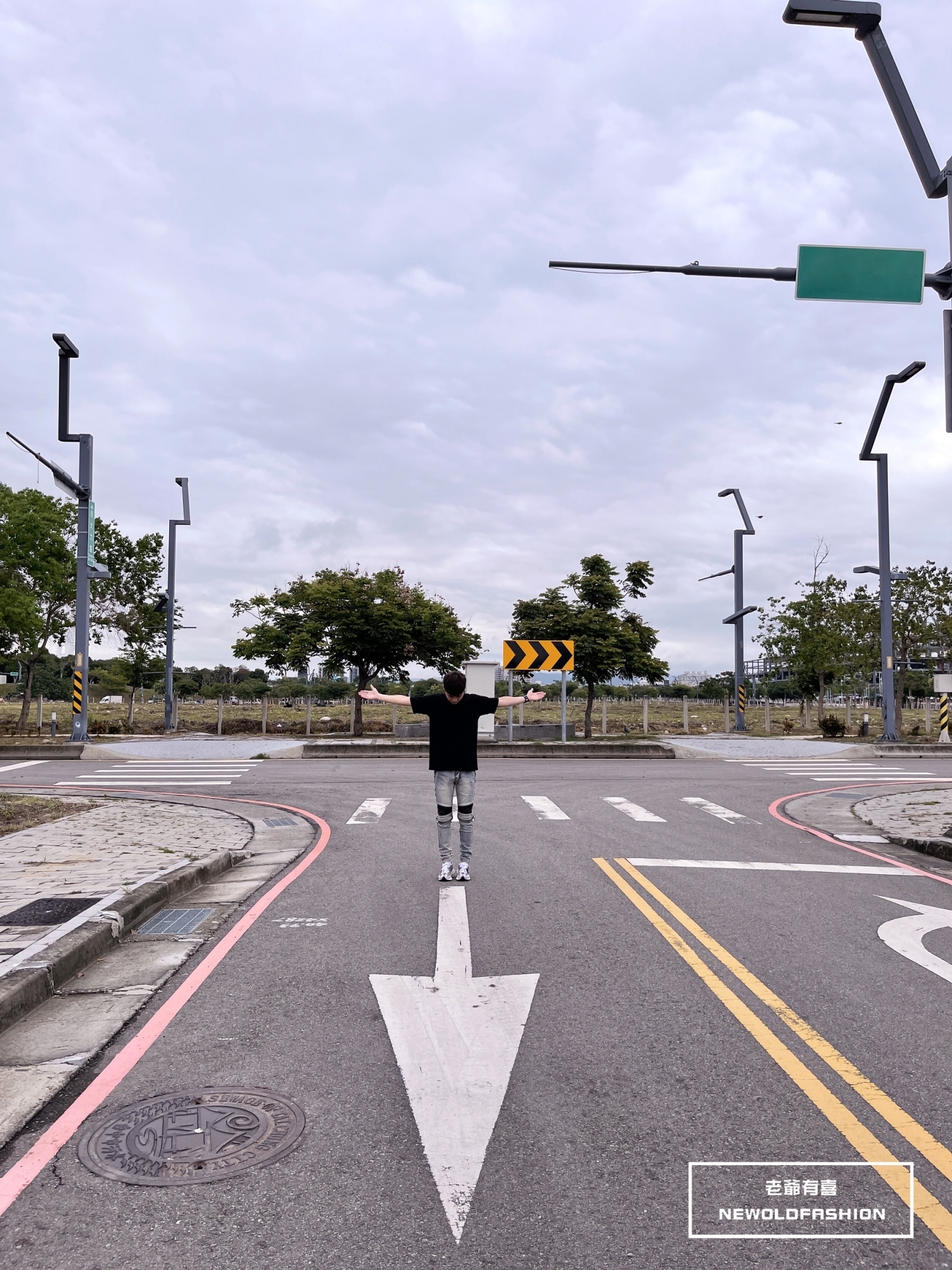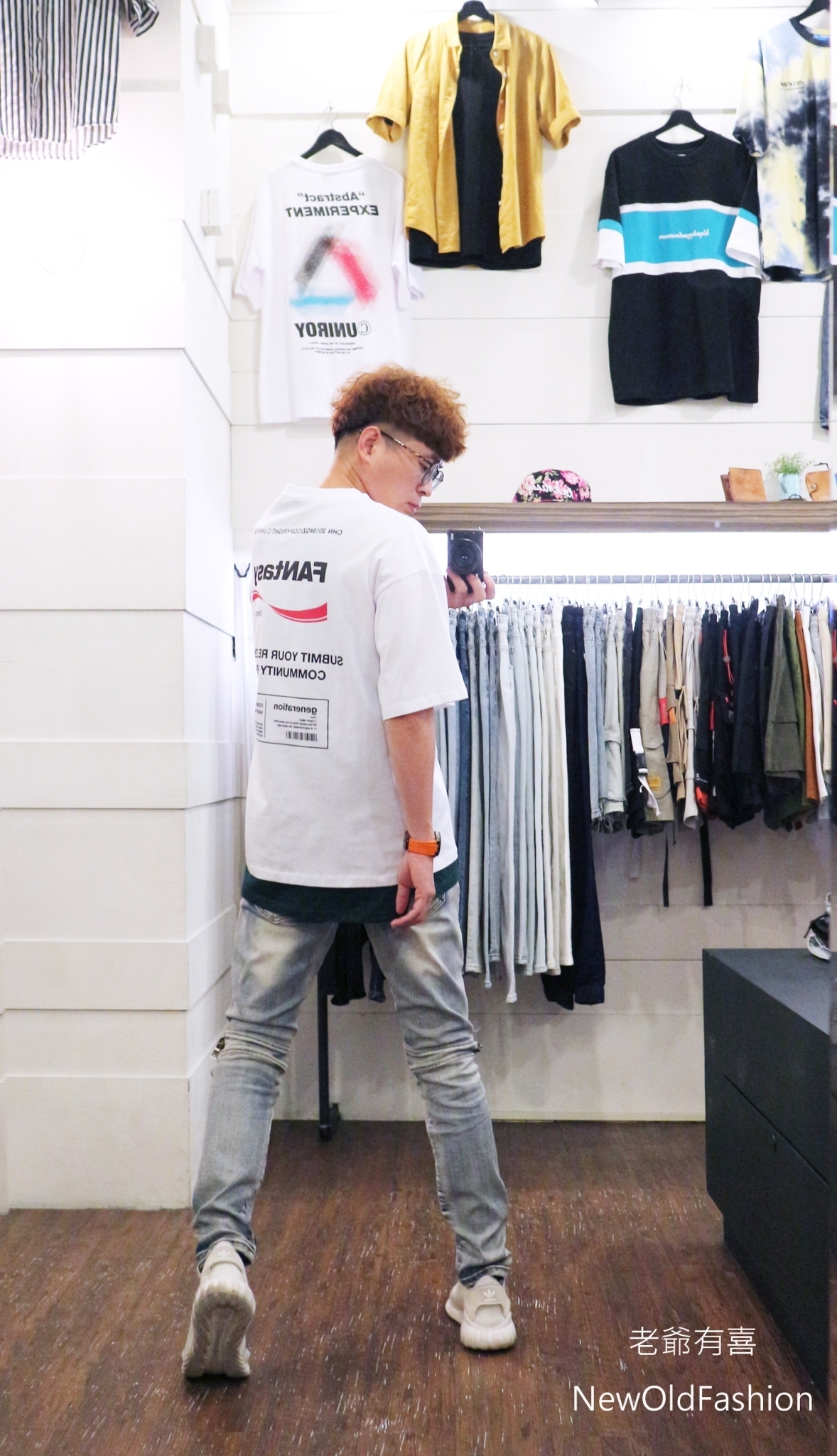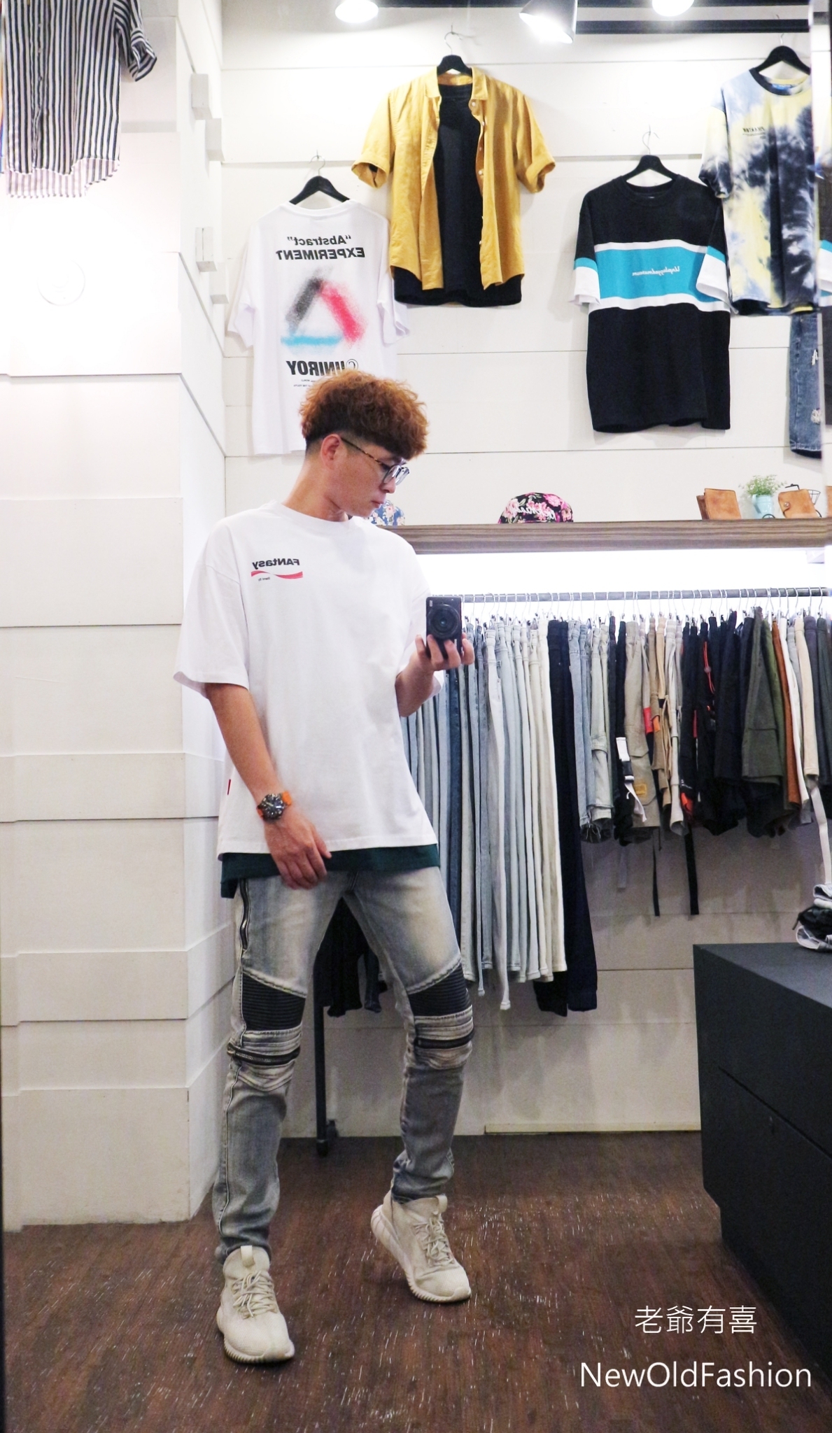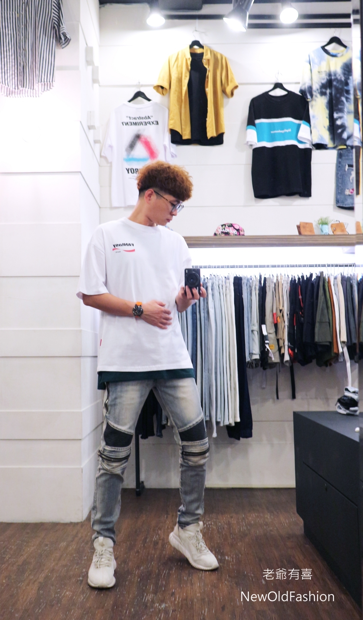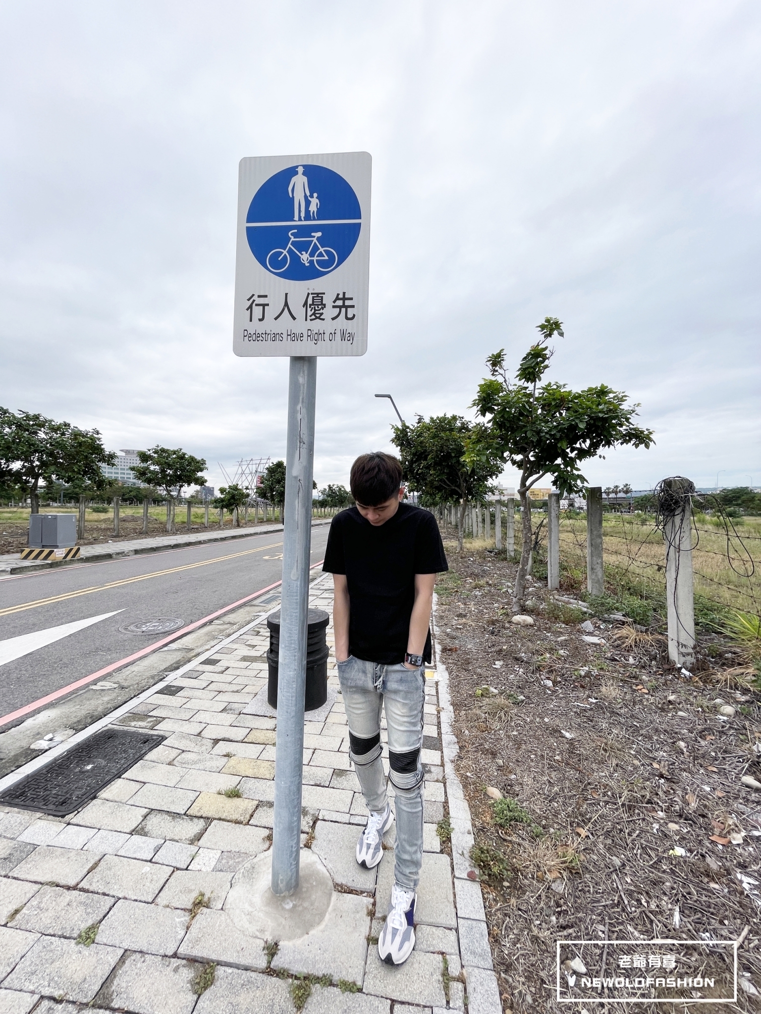 拼接波浪紋,膝破洞拉鍊設計!