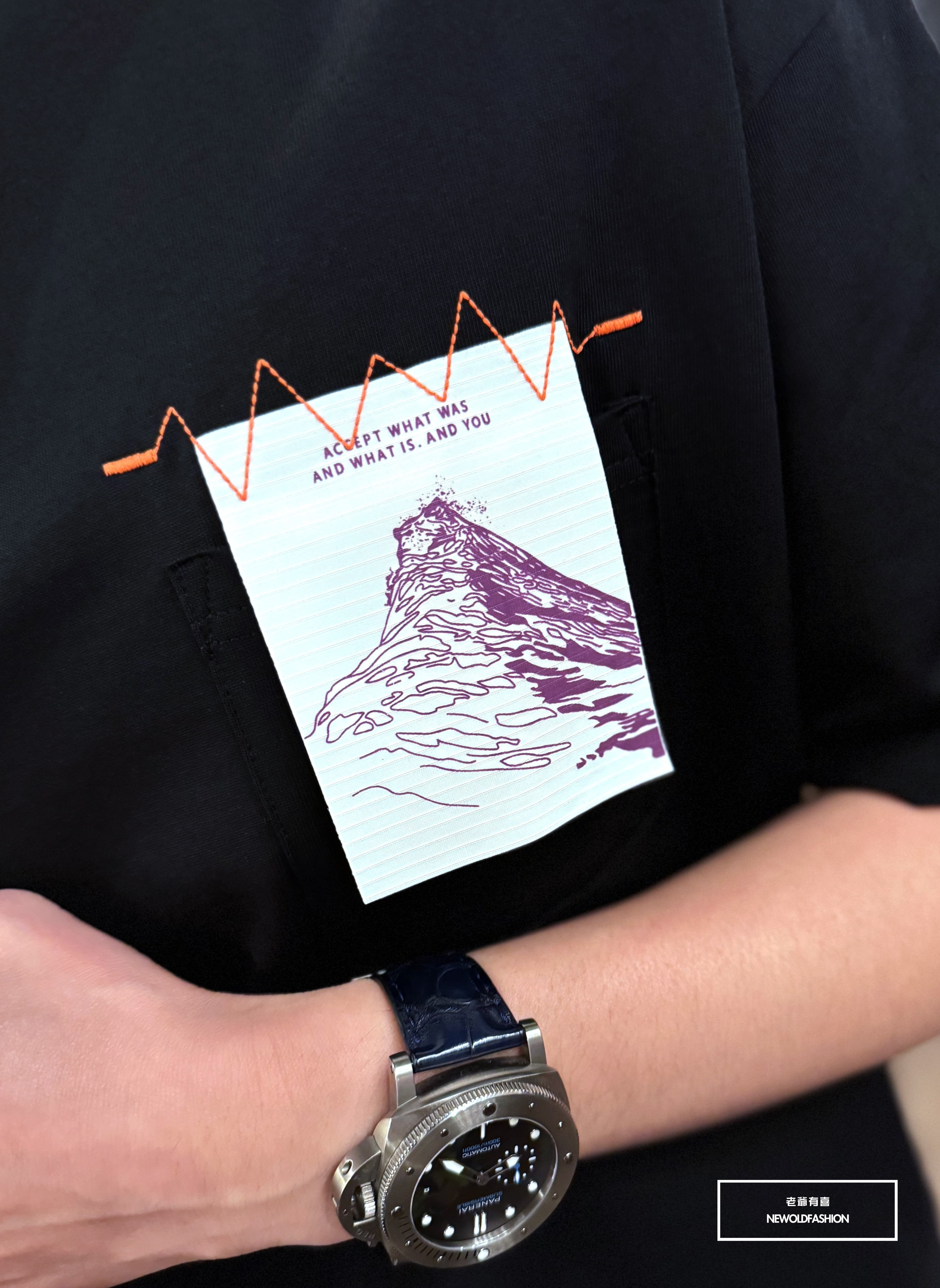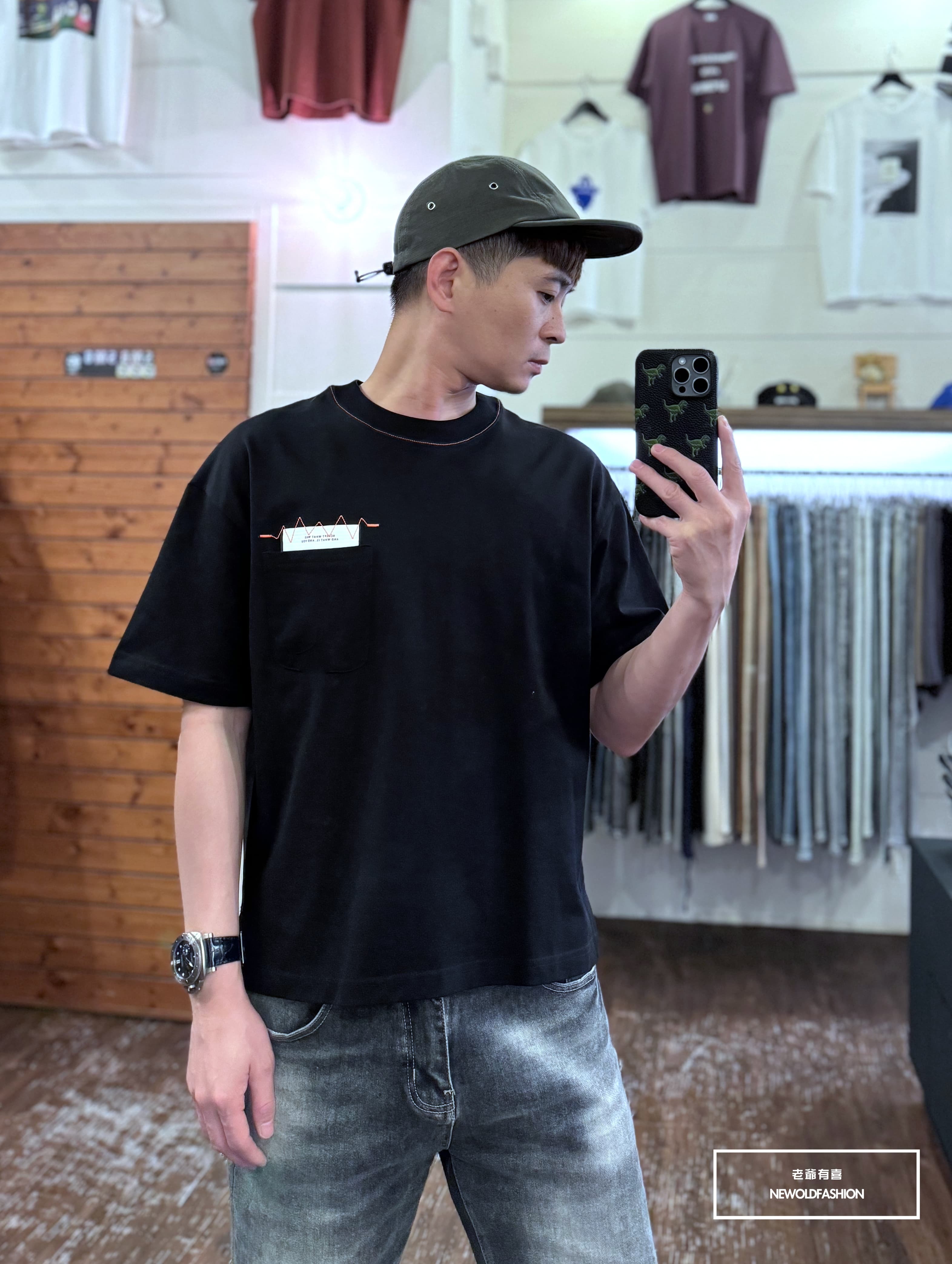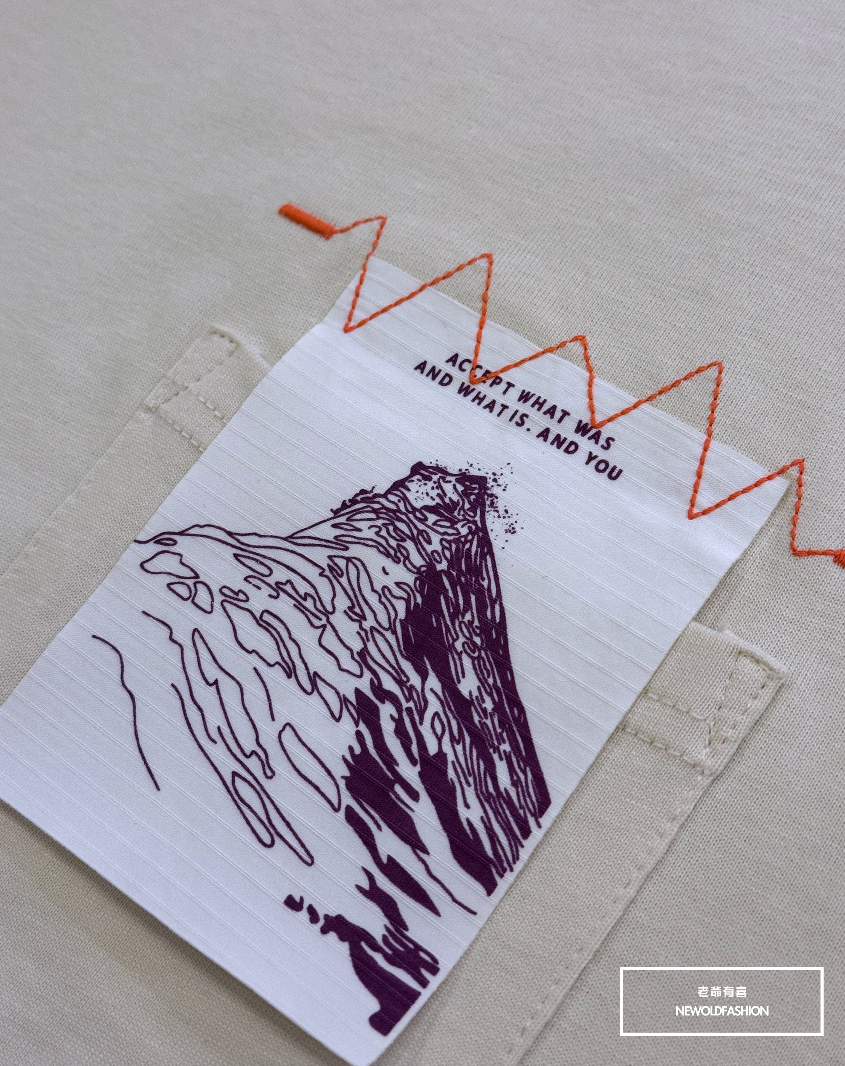 撞色標籤口袋、側開岔造型設計,標籤可放可不放入口袋,呈現不一樣的造型