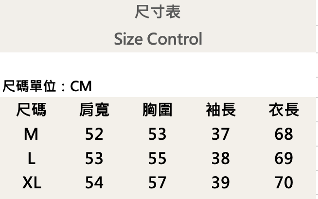 三個尺寸(M、L、XL)