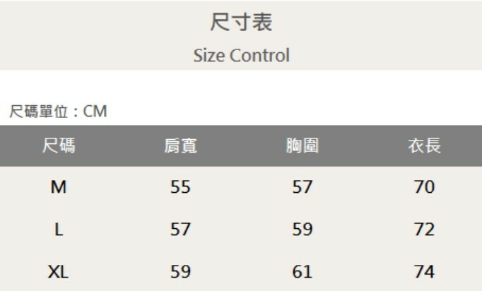 三個尺寸(M、L、XL)