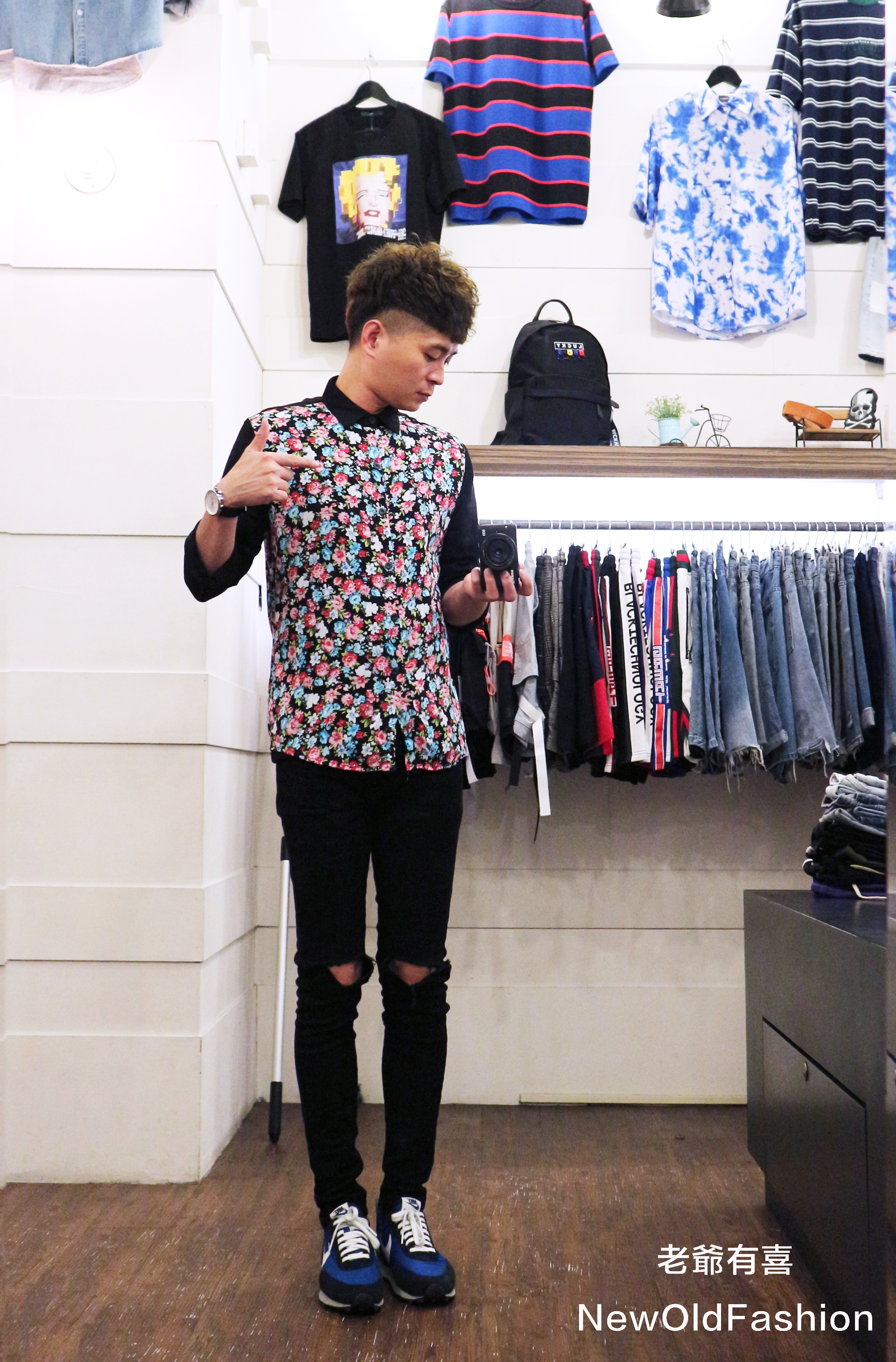 『新品上市』重磅滿版小碎紅花撞色拼接袖襯衫!