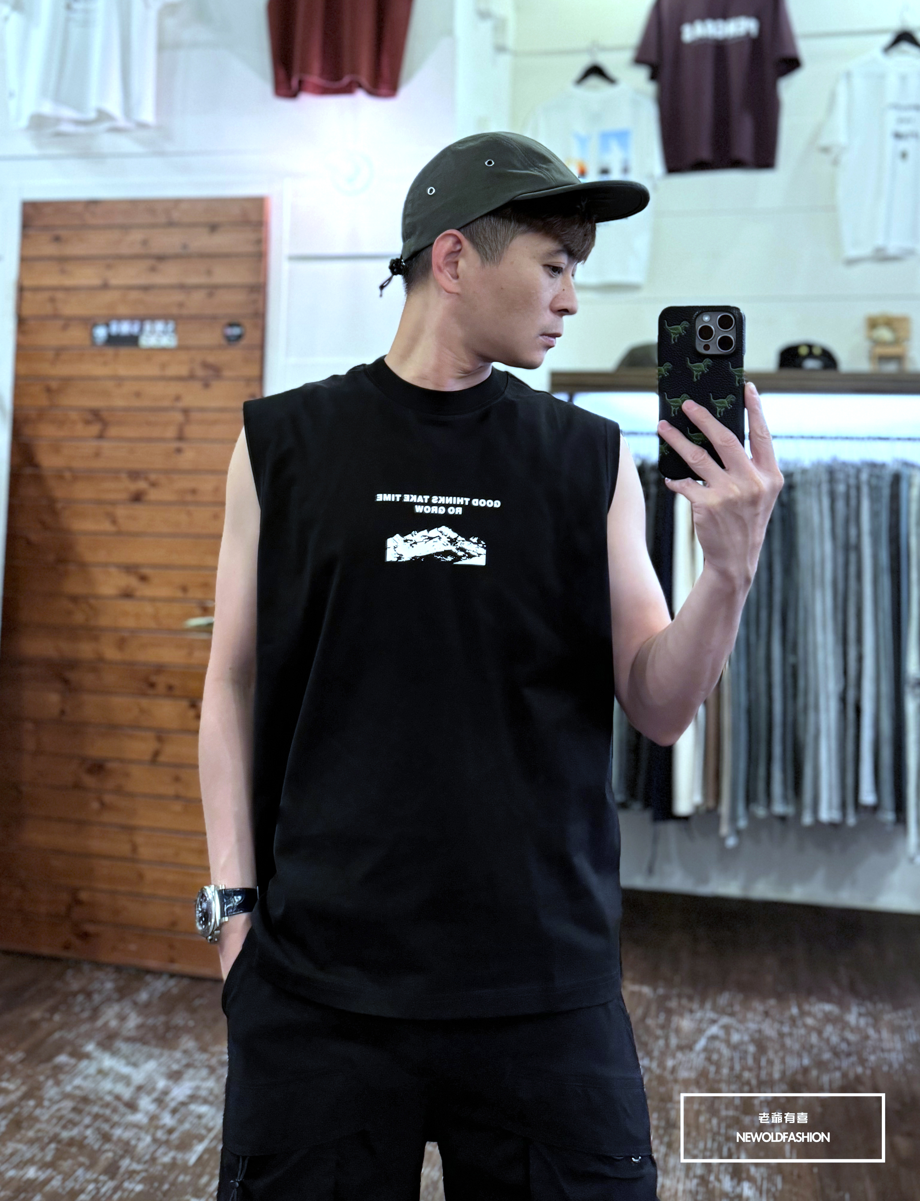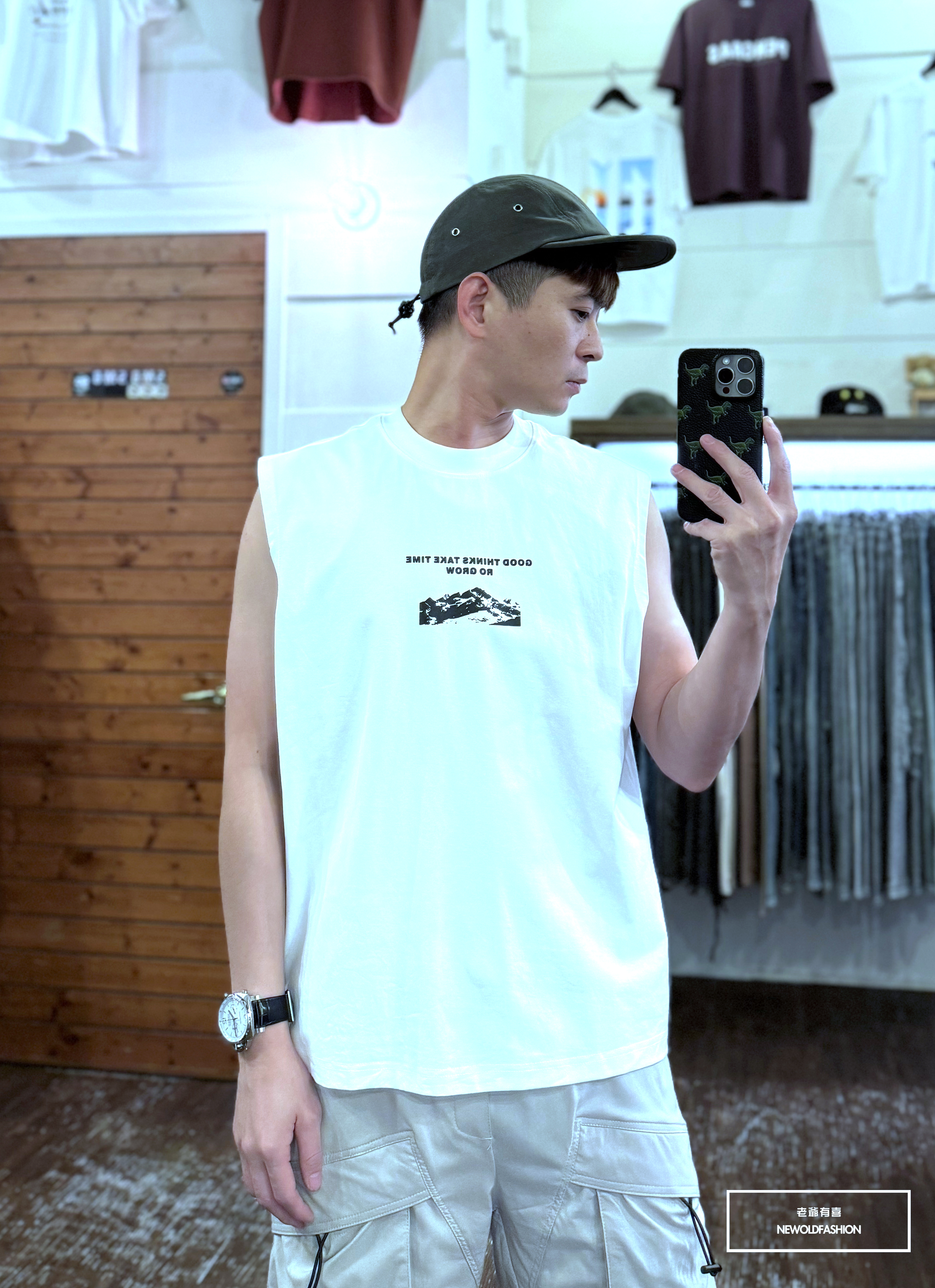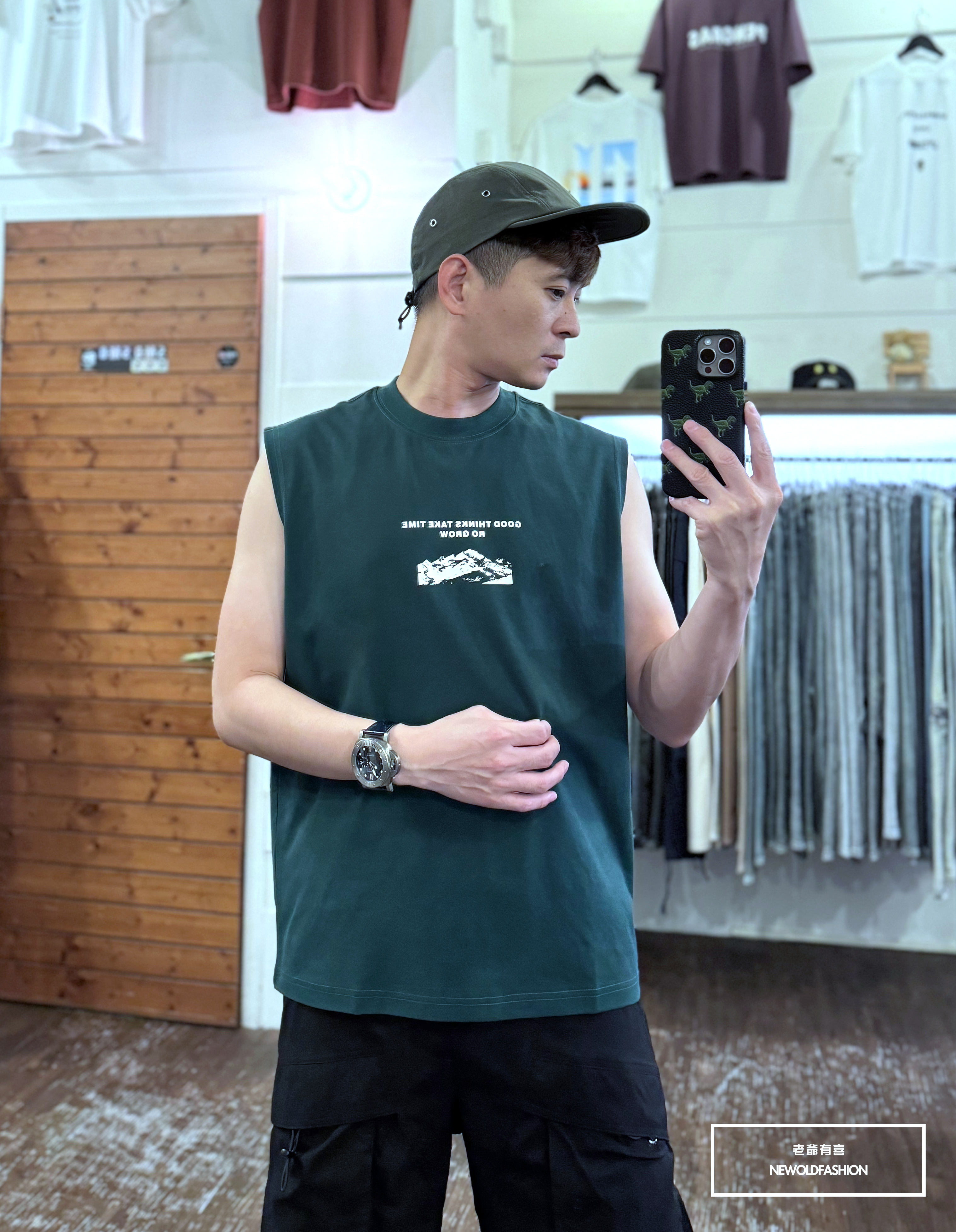 『新品上市』重磅山脈標語棉質背心(NOF2405S8008)-綠