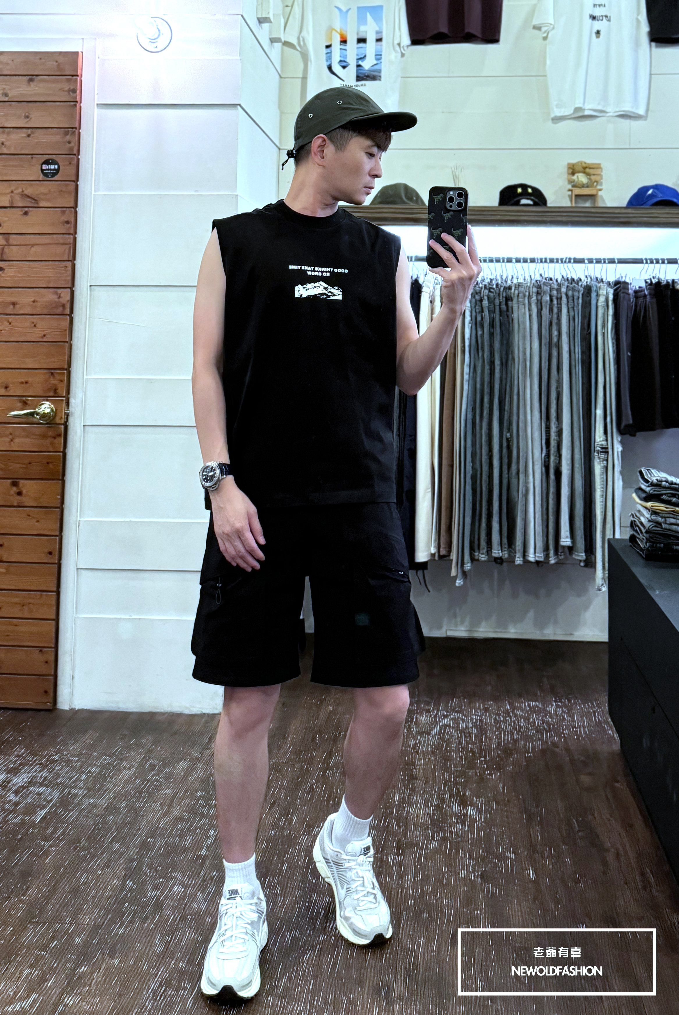 『新品上市』重磅山脈標語棉質背心(NOF2405S8008)-黑