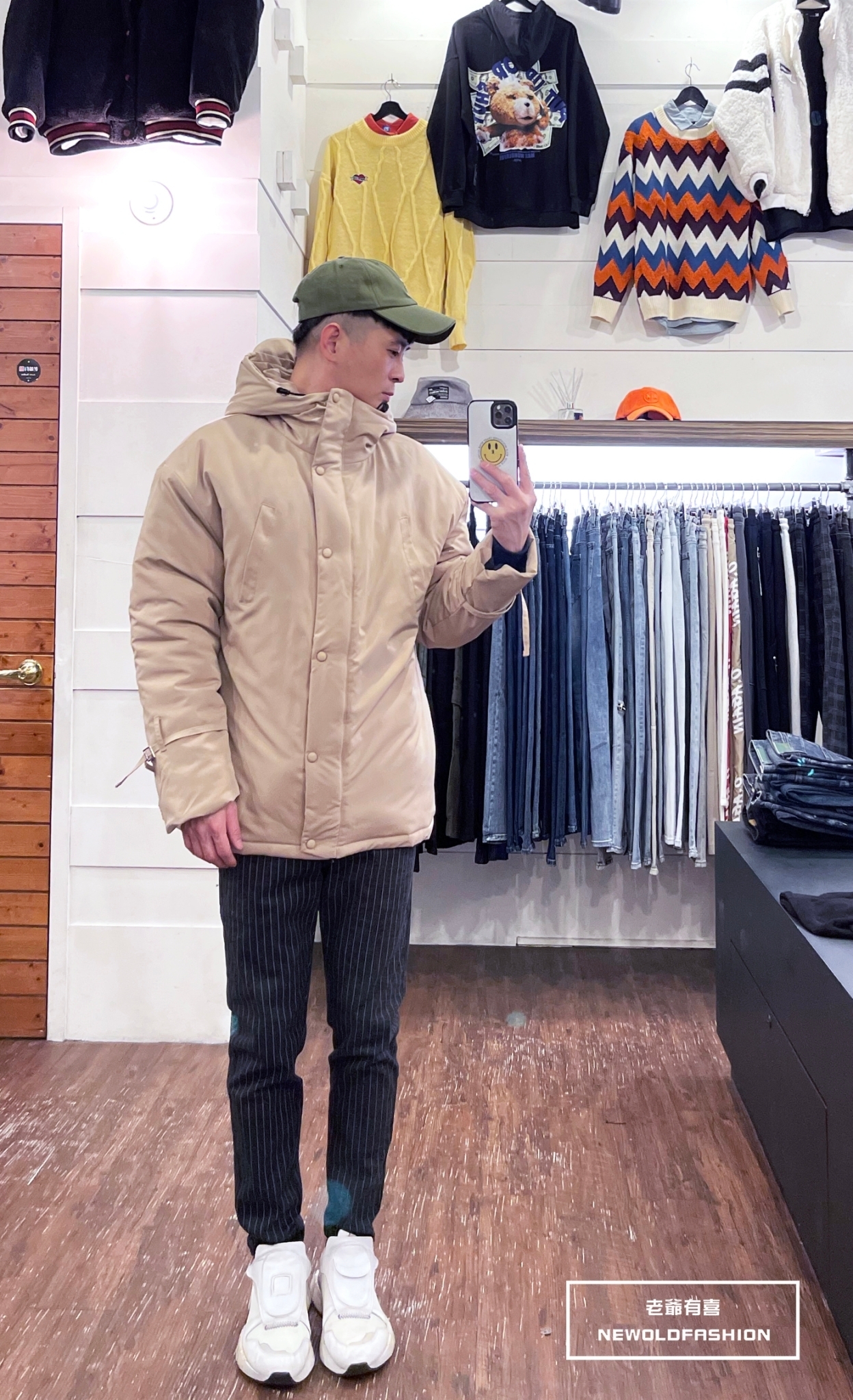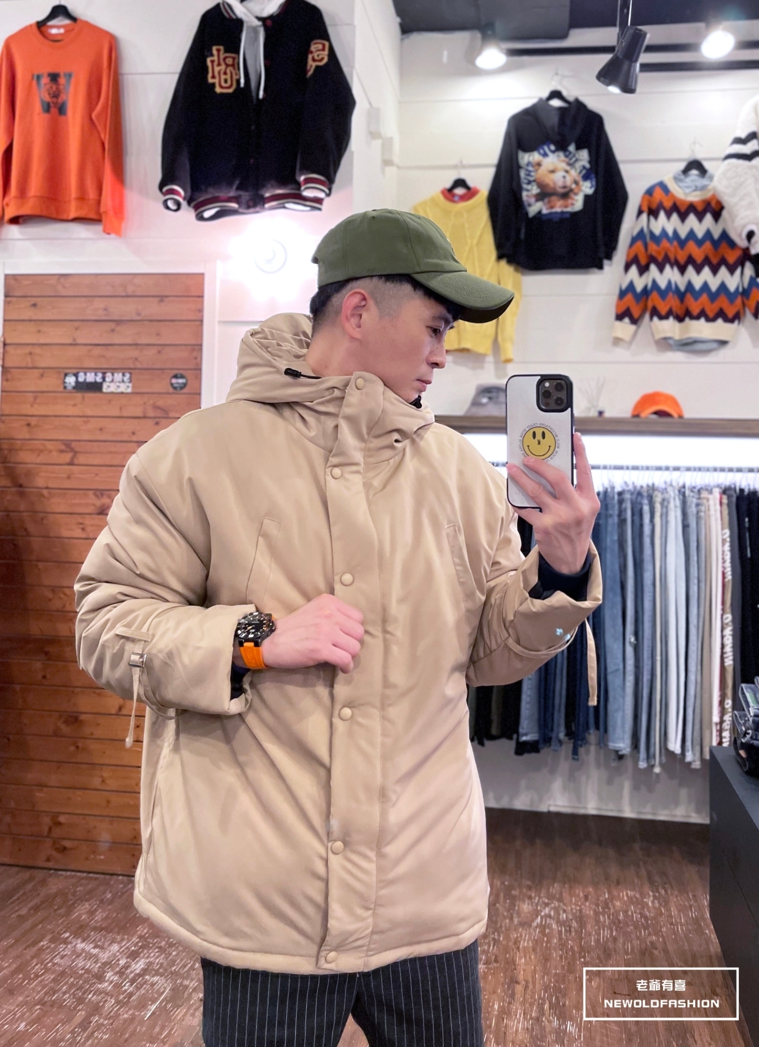 『新品上市』重磅手袖綁帶釘釦鋪棉外套-卡其