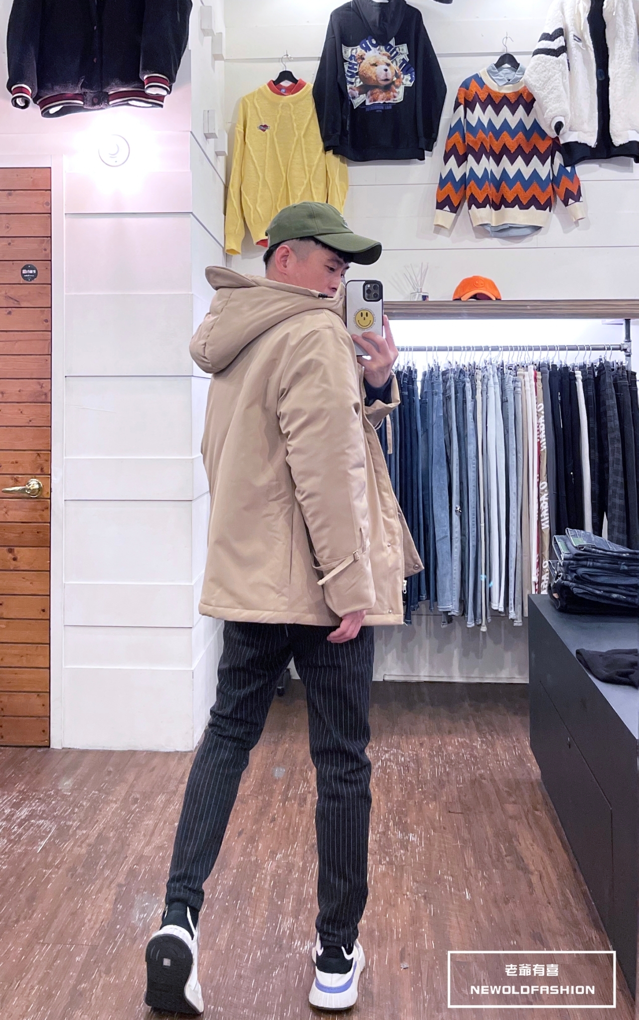 釘釦雙口袋造型、手袖綁帶造型可自行調整!