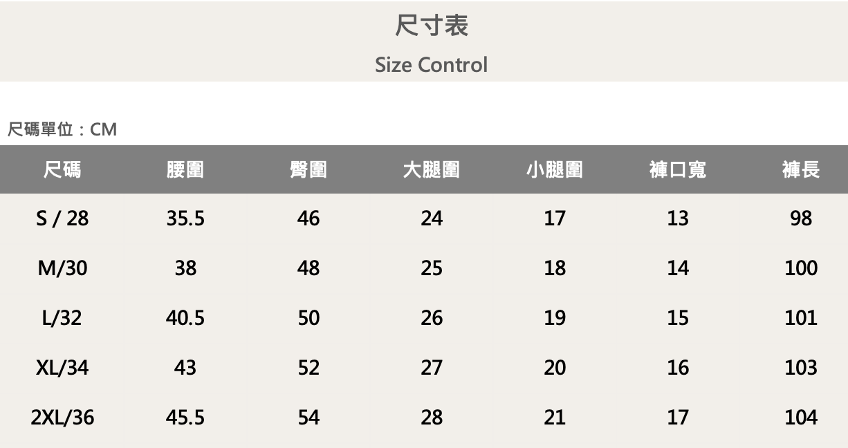 五個尺寸(S、M、L、XL、XXL)