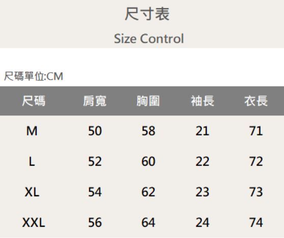 四個尺寸(M、L、XL、XXL)