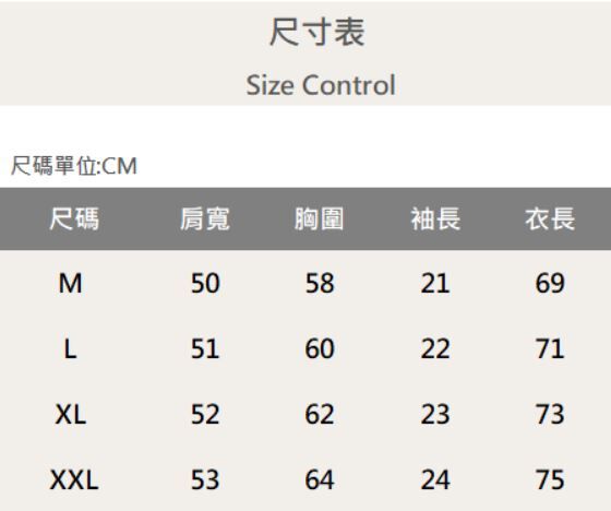 四個尺寸(M、L、XL、XXL)
